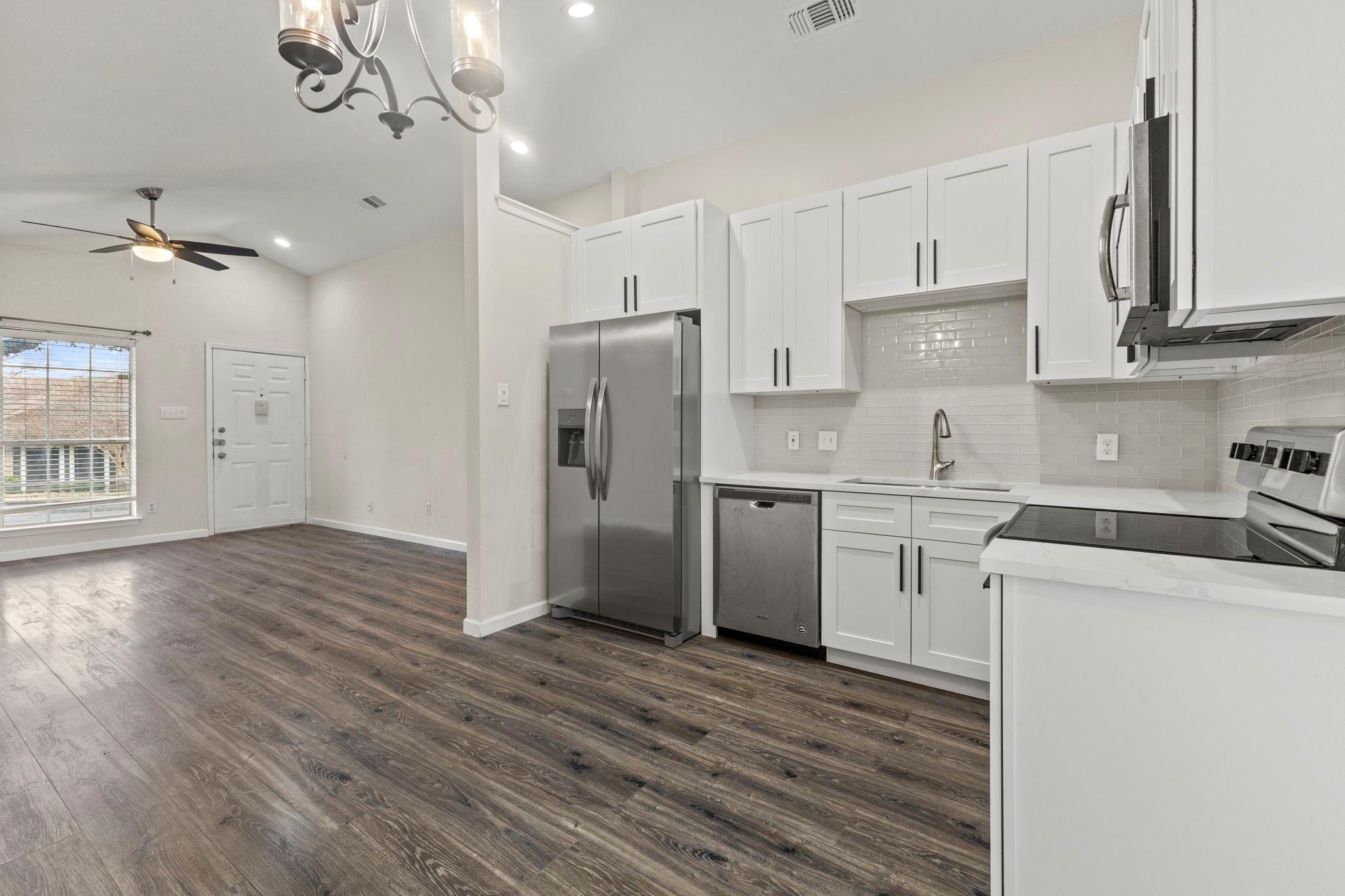 Step into luxury with a newly remodeled kitchen and two spacious bedrooms, each boasting dual closets. This condo offers modern comfort with thoughtful design, providing the perfect blend of style and functionality. This complex is amazing, it is so quiet, safe, and peaceful. Only one shared wall with neighboring unit. This unit acts and feels like a stand alone unit. Its a must see! Embrace the tranquility of your private backyard, surrounded by the charm of a large oak tree. Conveniently located near major food and stores, this is the epitome of refined living.