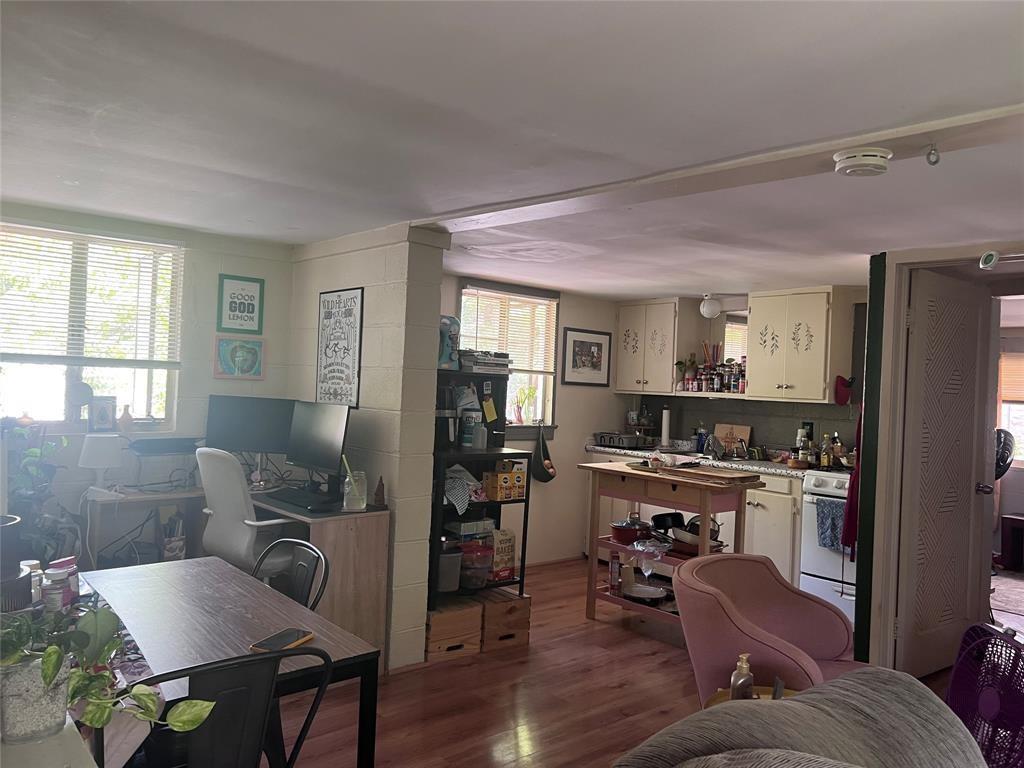 Private upstairs unit at the rear of the property. 2 blocks from Duval and Speedway bus routes. 1 bed 1 bath with covered carport parking. Landlord pays gas. Tenant pays 1/7th of water bill. Sqft is for whole complex per the tax records, sqft for individual unit not available.