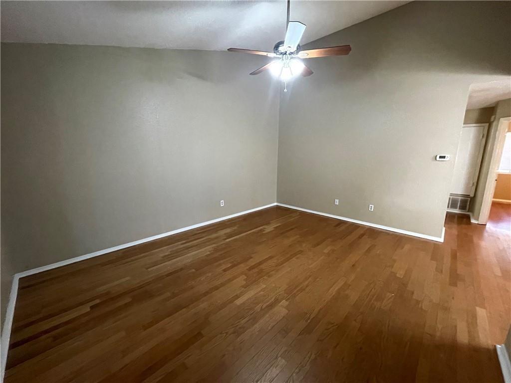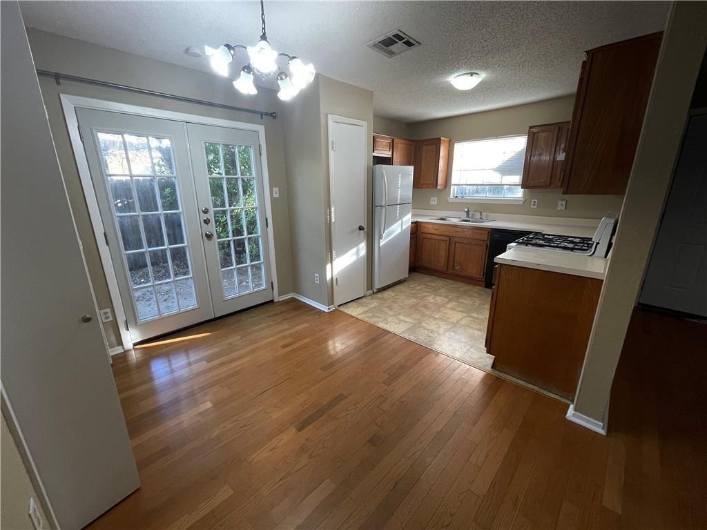 Great duplex that is close to tons of shopping, major highways and employers. Wood floors through out living, dining and bedrooms. Freshly painted. Vaulted ceiling in living area makes it feel spacious. Dining is open to living and kitchen; has good flow. Brand new French doors installed that lead to large backyard space. Come See Today!