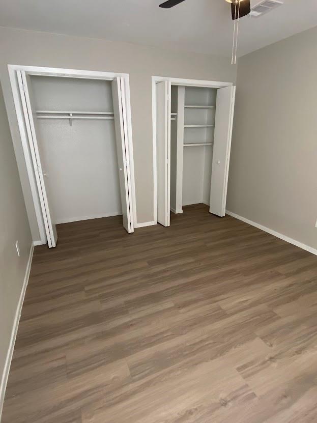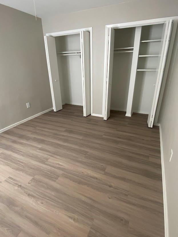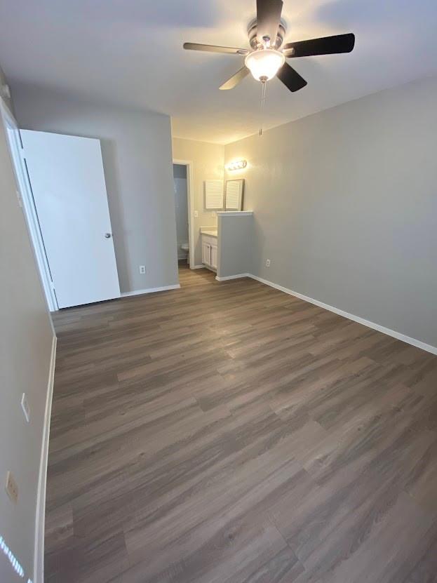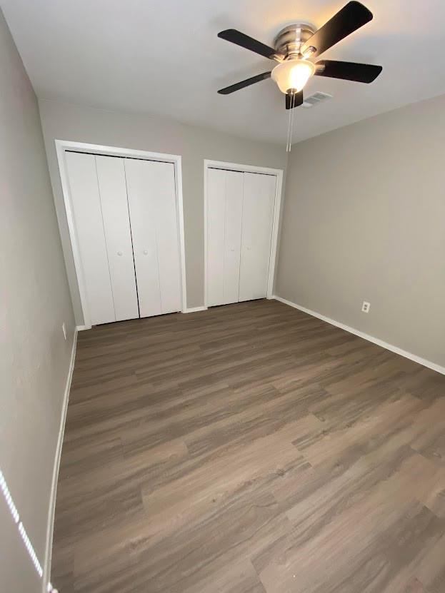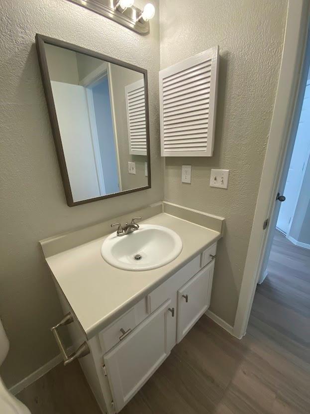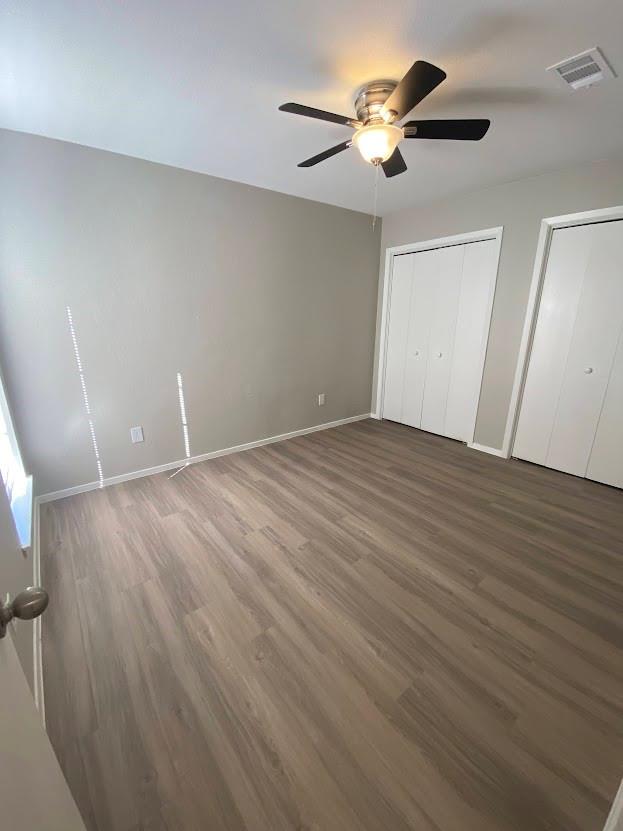 Great roommate-style floorplan 2 bed 2 bath with fresh and updated paint and cabinets! Vinyl flooring throughout, NO CARPET! Back yard faces a tree area. The garage has an extra storage area and a long driveway.