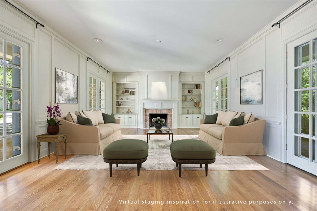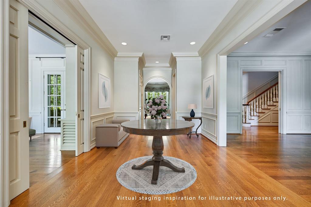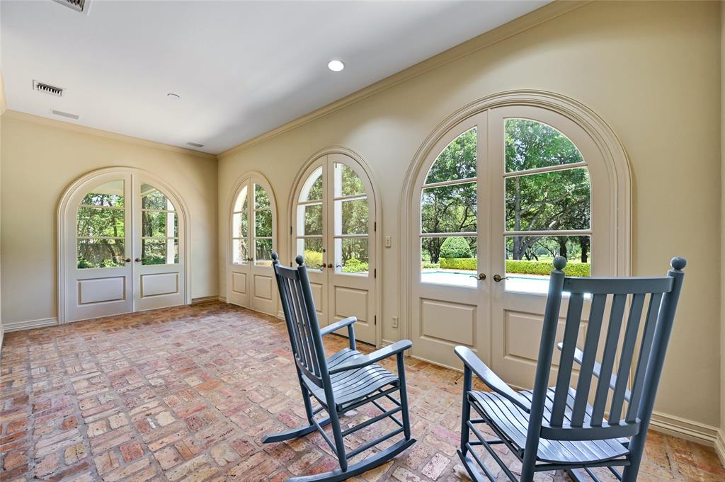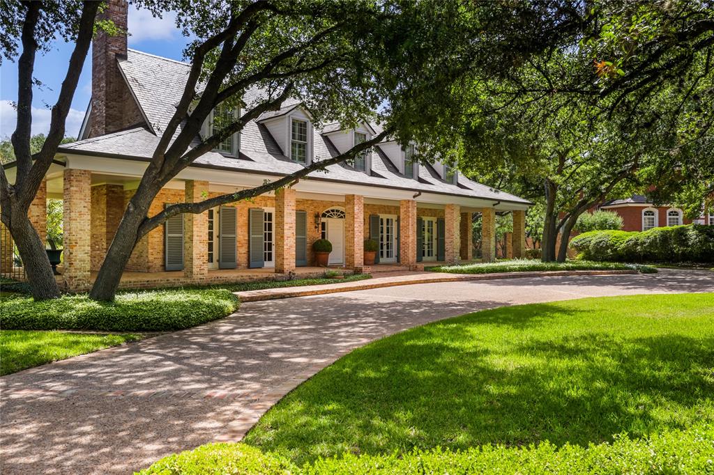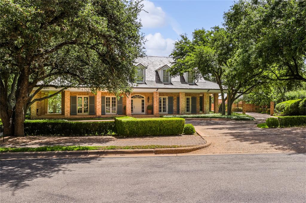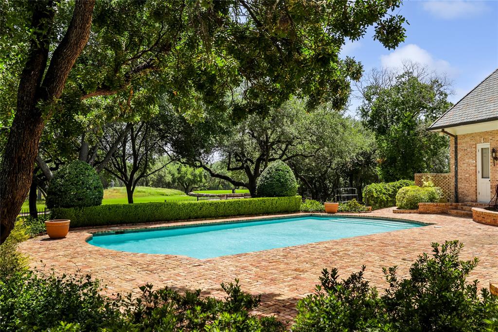 Situated along the golf course at Austin Country Club, this 5-bedroom, 6-full and 1-half bathroom residence is a palatial estate set on a .93-acre lot overlooking the 16th hole. This Georgian-style brick home warmly welcomes you with an impressive wrap-around covered porch to retreat in the shade on summer evenings. Four sets of French doors with charming blue shutters are just one of the timeless and welcoming features of the residence. Enjoy light-filled interiors with hardwood floors and sophisticated wainscoting throughout the main level. Flanking the entry foyer are two living rooms with fireplaces to gather and entertain. The oval-shaped dining room evokes another time with regal elegance. Cook a delicious meal in the chef’s kitchen that features three sets of arched doors to the backyard with a view of the private pool and golf course, ample countertop space and cabinetry, and high-end stainless-steel appliances. Refresh in the expansive primary suite with vaulted ceilings, access to a second-level terrace, a sitting room, and a primary bathroom with dual vanities, a soaking tub, and walk-in closet. Take a plunge into the refreshing pool or play in the fenced-in backyard that also features a stone patio to relax in the sun and look out at the golf course—the perfect, front-row spot to view Dell Match Play PGA Tour. Additional outdoor features include a detached shed, greenhouse and manicured landscaping shaded by mature trees. This home is within the highly-rated Eanes ISD with excellent academics and athletics. 24-Hour Advance Showing Notice.