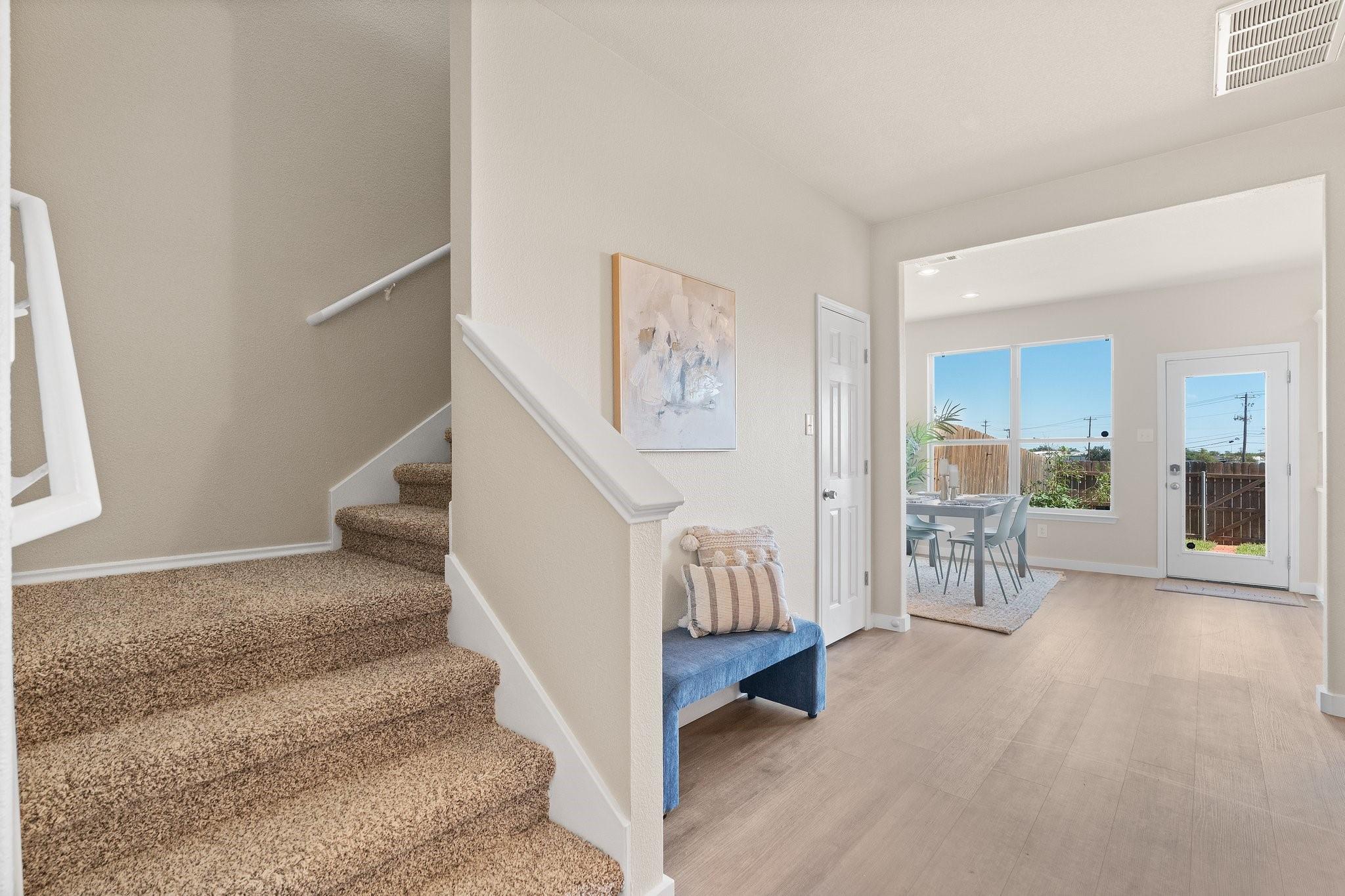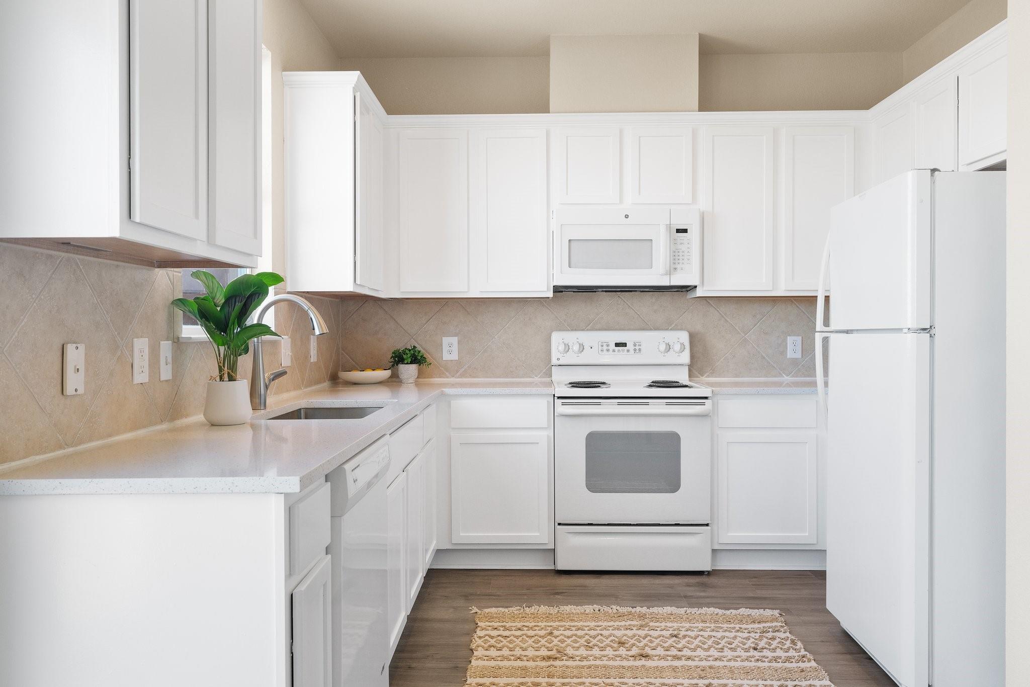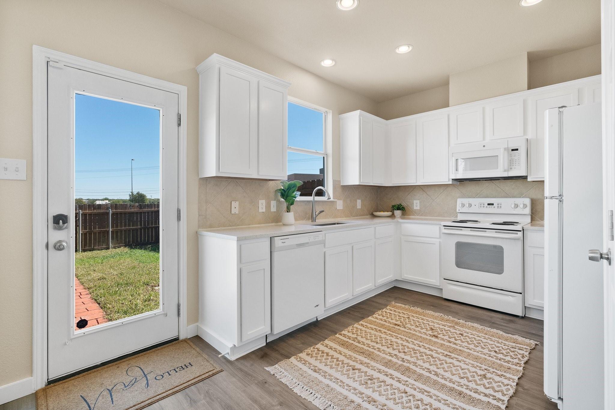Nestled within the gated Lakeline Ranch Townhomes, this renovated gem is a testament to modern townhome living. Beautifully manicured landscaping maintained by the HOA The recent floor-to-ceiling renovation shines with new vinyl flooring, plush carpeting, dazzling quartz countertops, & fresh paint. The connected living, kitchen, & dining areas create an ideal setting for entertaining guests. The living room's stunning corner fireplace, elegant mantel & expansive windows create a perfect space to relax. The kitchen is a modern delight, with white Shaker cabinets, quartz countertops, & recessed lighting. Enjoy views of the backyard while you dine. Upstairs, you'll find 2 bedrooms that provide privacy & comfort. The large, light-filled primary bedroom offers a walk-in closet & en-suite bathroom with quartz countertops, beautiful fixtures, & generous soaking tub. The 2nd bedroom is equally light-filled & boasts a spacious closet & nearby bathroom. Outside, you'll find a peaceful escape in the private, fenced backyard, complete with fresh sod & garden bed. Through the gate, green space abounds, offering a quick stroll to restaurants, businesses, & Leader High. within walking distance are the community pool, playgrounds, sports courts, volleyball court, disc golf course, & more. The community exudes a calming, idyllic atmosphere with shaded walking paths that wind through green spaces. Convenience is at your doorstep with Highway 183, Gateway Shopping Center, HEB, Costco, Cedar Park Regional Medical Center & more. Buyer to verify all information. IS A REQUIRED PART OF THE APPLICATION PROCESS FOR ALL APPLICANTS: A welcoming environment is paramount to all of our residents with or without pets as well as animals. To help ensure ALL of our residents understand our pet and animal-related policies, we use a third-party screening service and require EVERYONE to complete a profile.