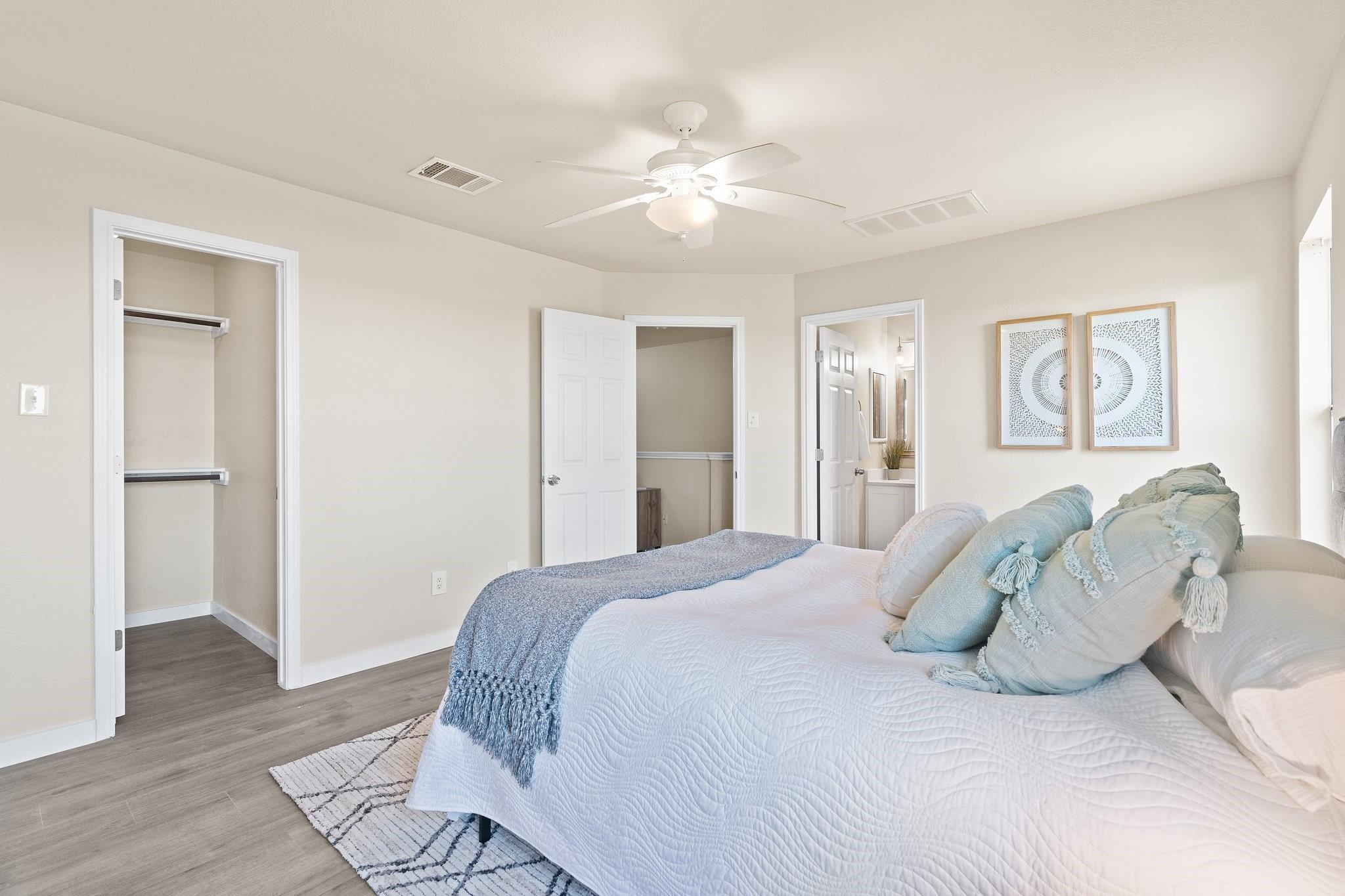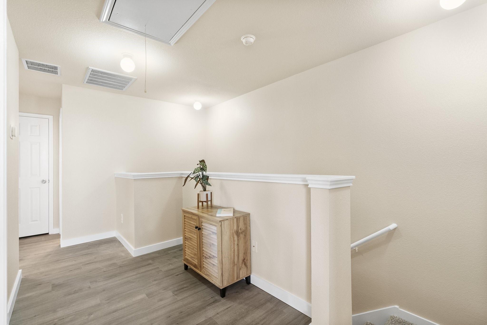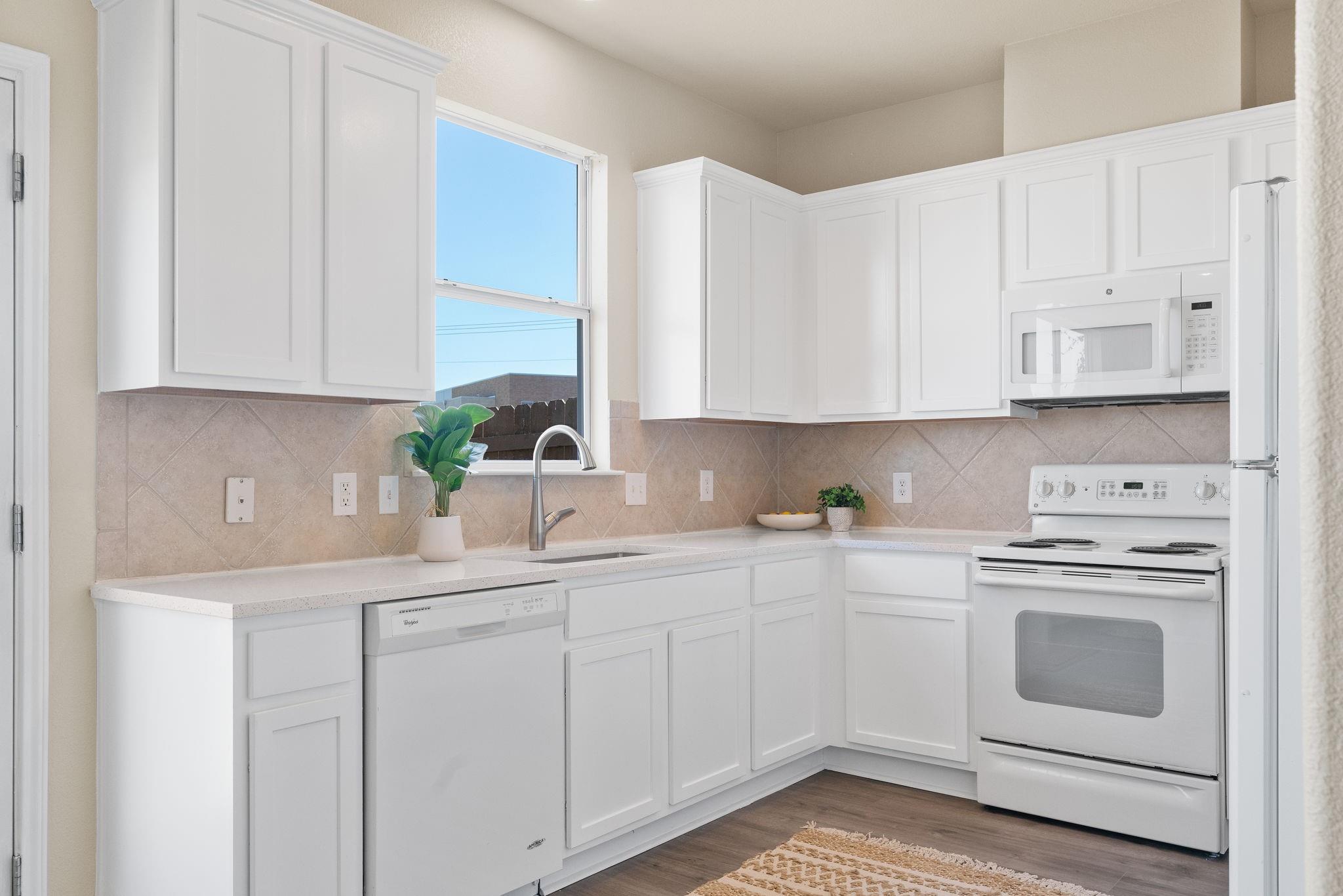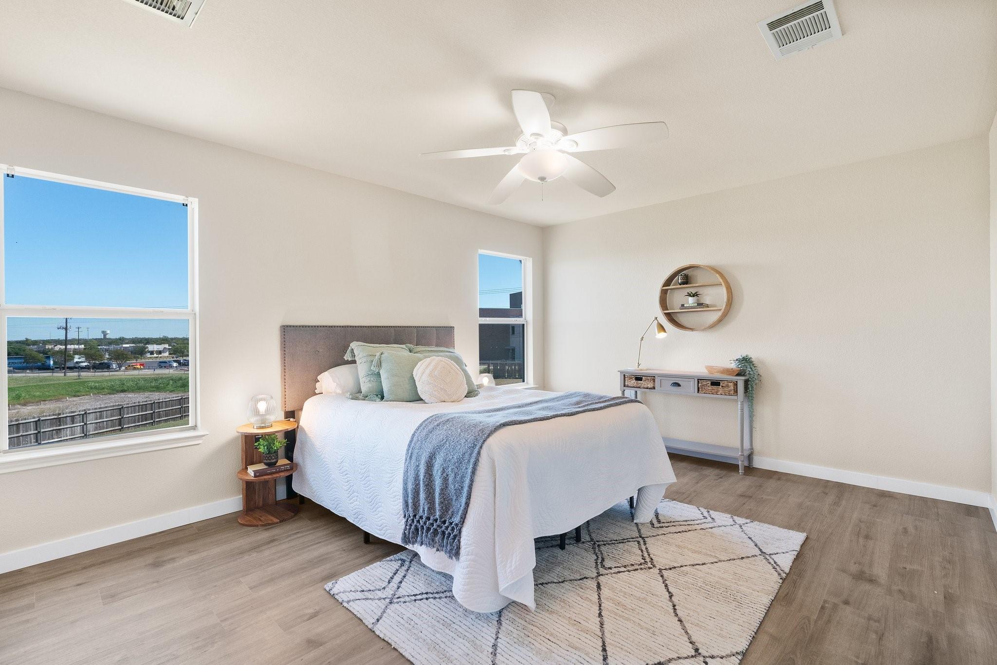 Nestled within the gated Lakeline Ranch Townhomes, this renovated gem is a testament to modern townhome living. Beautifully manicured landscaping maintained by the HOA The recent floor-to-ceiling renovation shines with new vinyl flooring, plush carpeting, dazzling quartz countertops, & fresh paint. The connected living, kitchen, & dining areas create an ideal setting for entertaining guests. The living room's stunning corner fireplace, elegant mantel & expansive windows create a perfect space to relax. The kitchen is a modern delight, with white Shaker cabinets, quartz countertops, & recessed lighting. Enjoy views of the backyard while you dine. Upstairs, you'll find 2 bedrooms that provide privacy & comfort. The large, light-filled primary bedroom offers a walk-in closet & en-suite bathroom with quartz countertops, beautiful fixtures, & generous soaking tub. The 2nd bedroom is equally light-filled & boasts a spacious closet & nearby bathroom. Outside, you'll find a peaceful escape in the private, fenced backyard, complete with fresh sod & garden bed. Through the gate, green space abounds, offering a quick stroll to restaurants, businesses, & Leader High. within walking distance are the community pool, playgrounds, sports courts, volleyball court, disc golf course, & more. The community exudes a calming, idyllic atmosphere with shaded walking paths that wind through green spaces. Convenience is at your doorstep with Highway 183, Gateway Shopping Center, HEB, Costco, Cedar Park Regional Medical Center & more. Buyer to verify all information. IS A REQUIRED PART OF THE APPLICATION PROCESS FOR ALL APPLICANTS: A welcoming environment is paramount to all of our residents with or without pets as well as animals. To help ensure ALL of our residents understand our pet and animal-related policies, we use a third-party screening service and require EVERYONE to complete a profile.