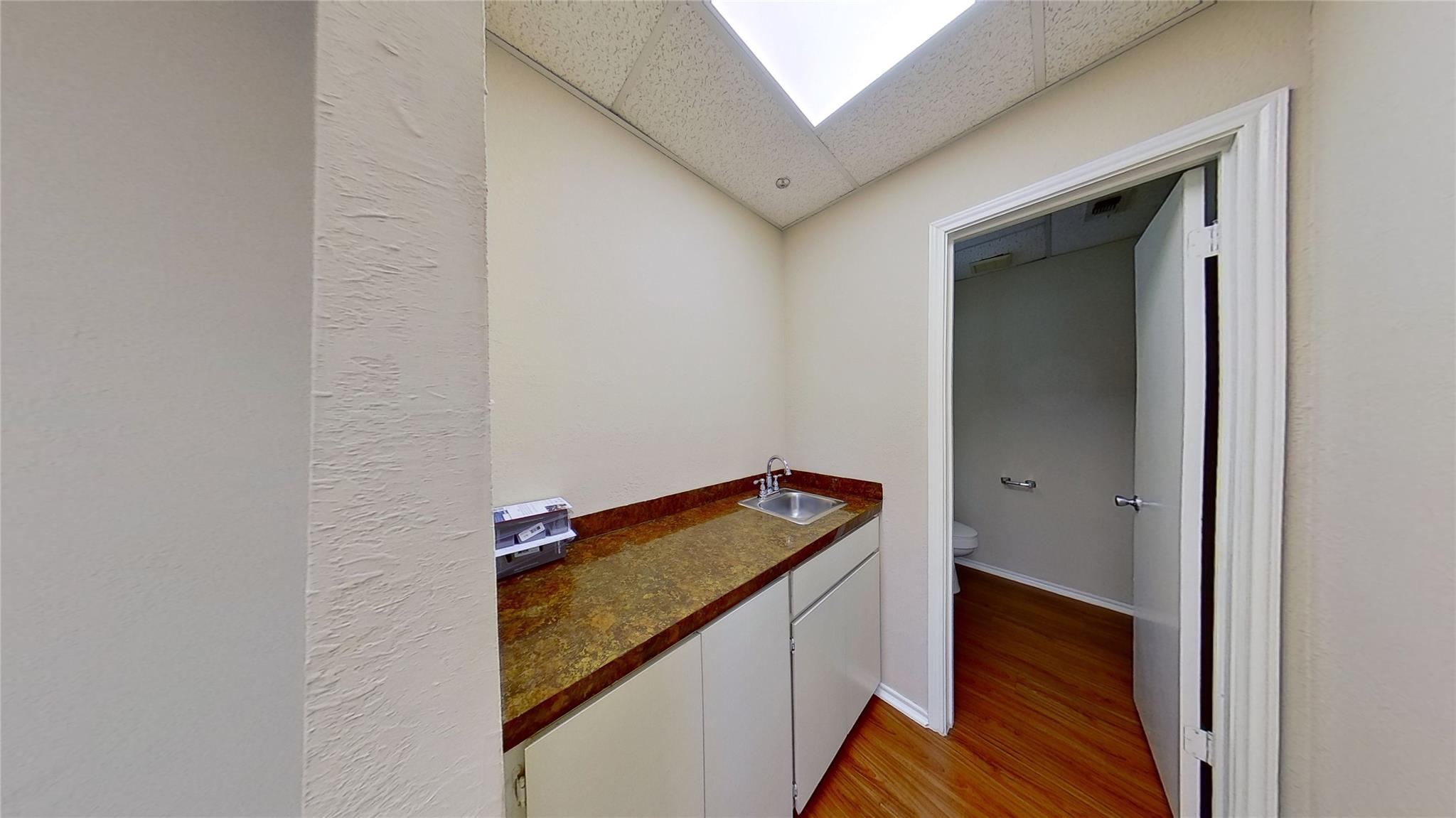 Great office space in Austin! Space includes a reception area, 1 office and 1 conference room (or 2 offices), a storage closet, coffee bar area with sink and restroom.