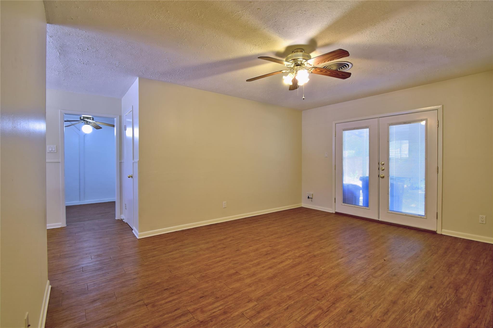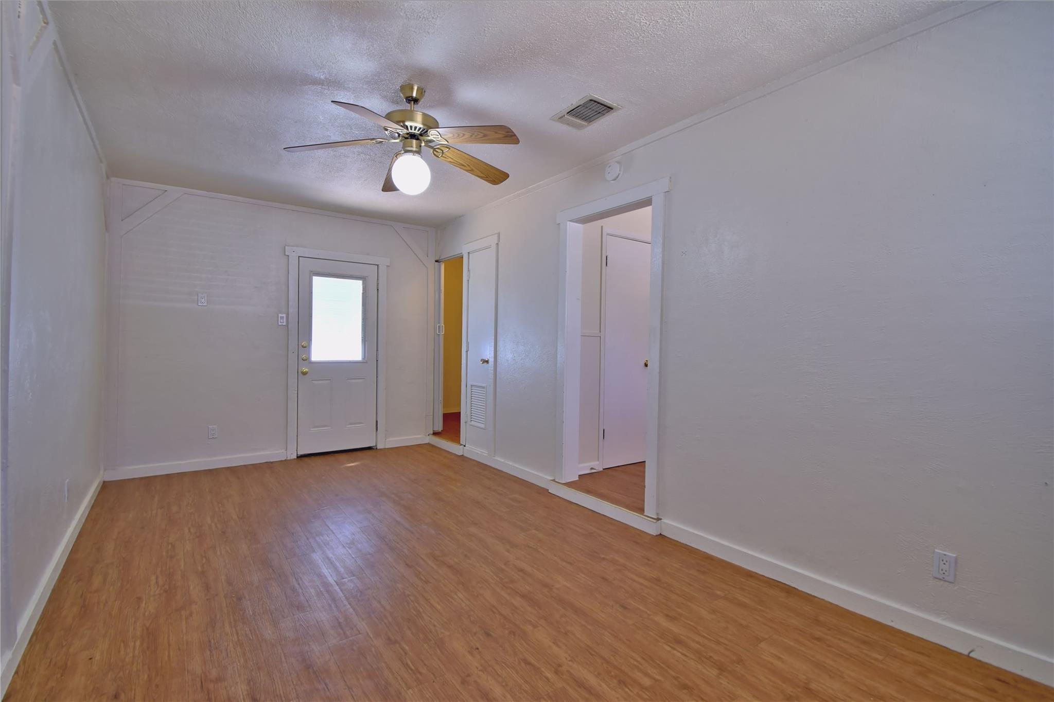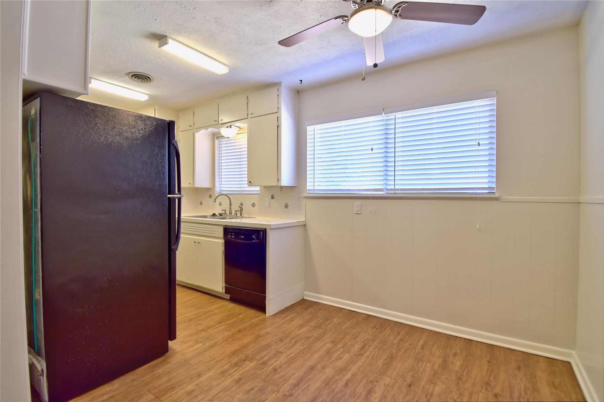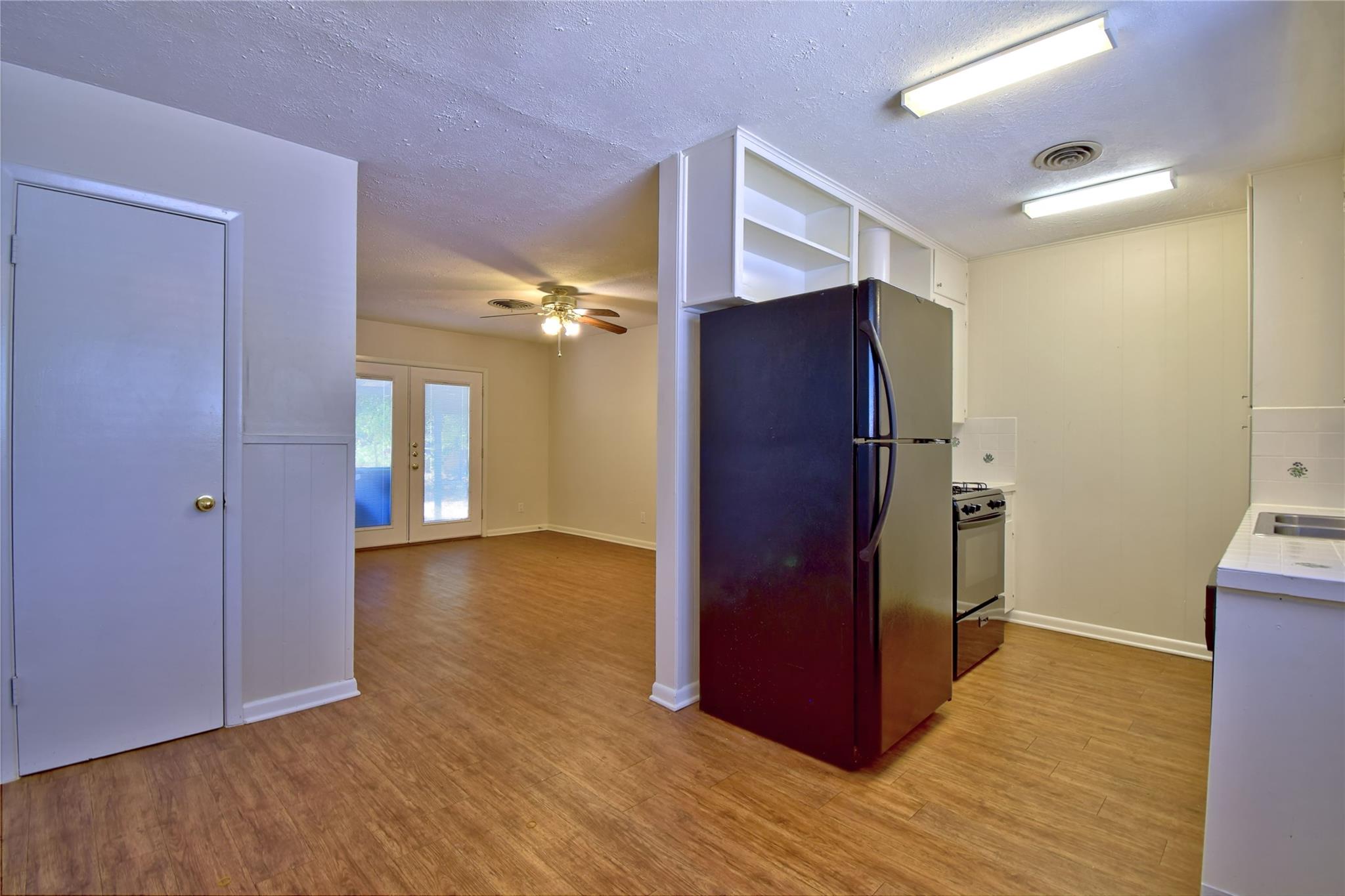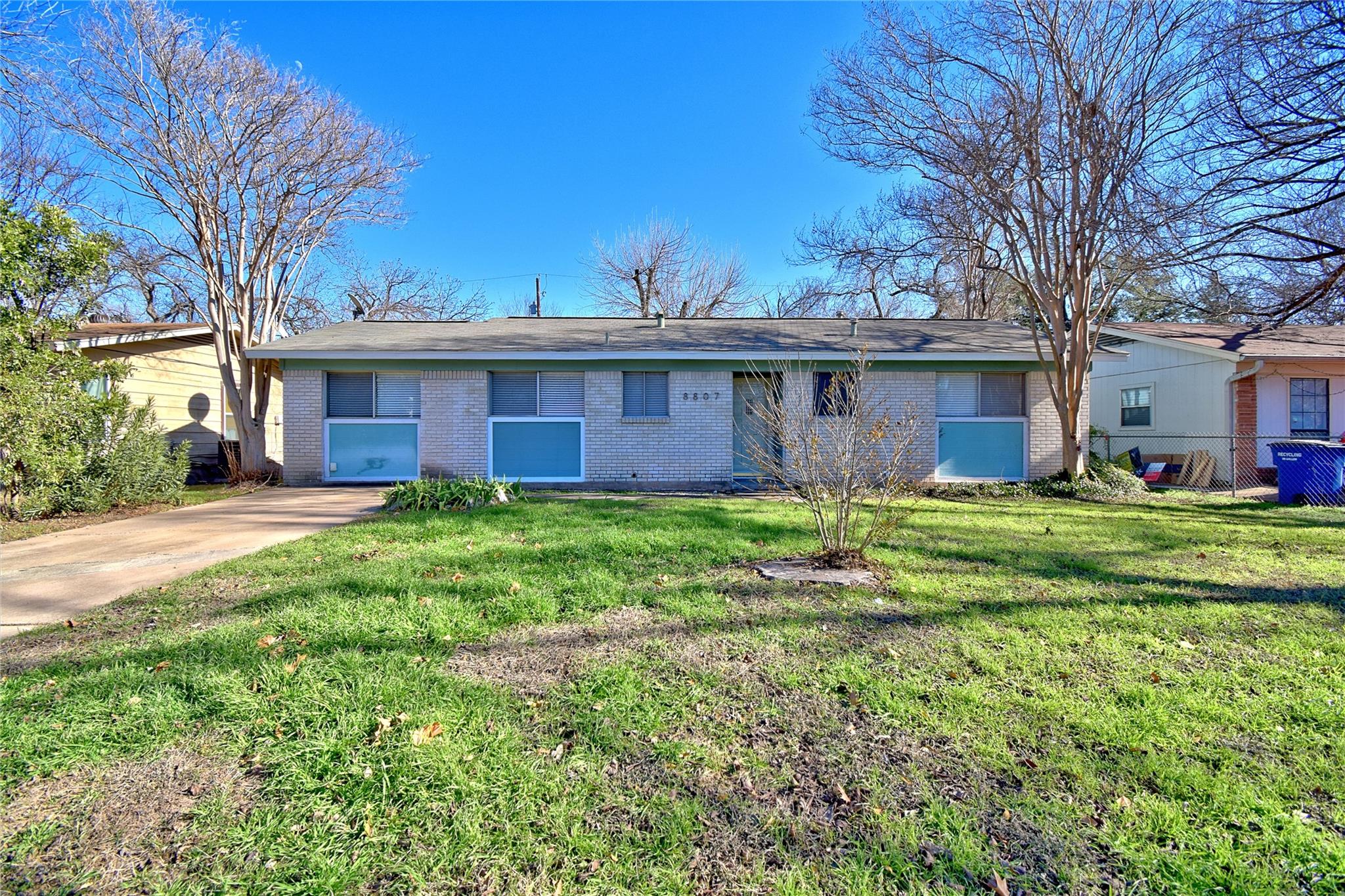 Centrally located established neighborhood. Three bedroom, one bath with converted garage as additional living area. Galley kitchen includes courtesy refrigerator, tile counter tops, dishwasher and pantry closet. Two inch blinds throughout & ceiling fans. Carpet in all three bedrooms, vinyl plank in other areas. large shaded fenced yard with storage building. Covered and open patio areas. Easy access to N Lamar or IH35, near bus route, shopping areas & restaurants