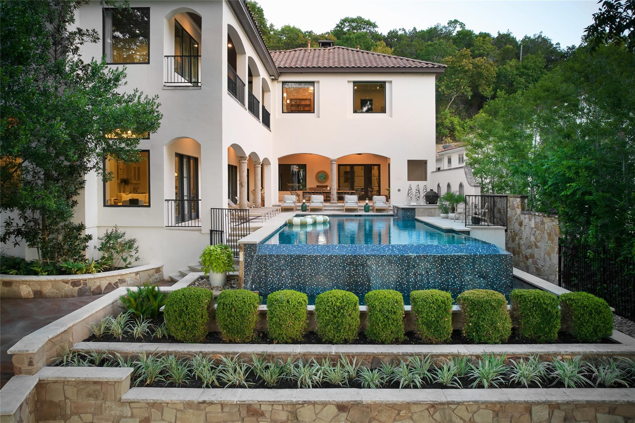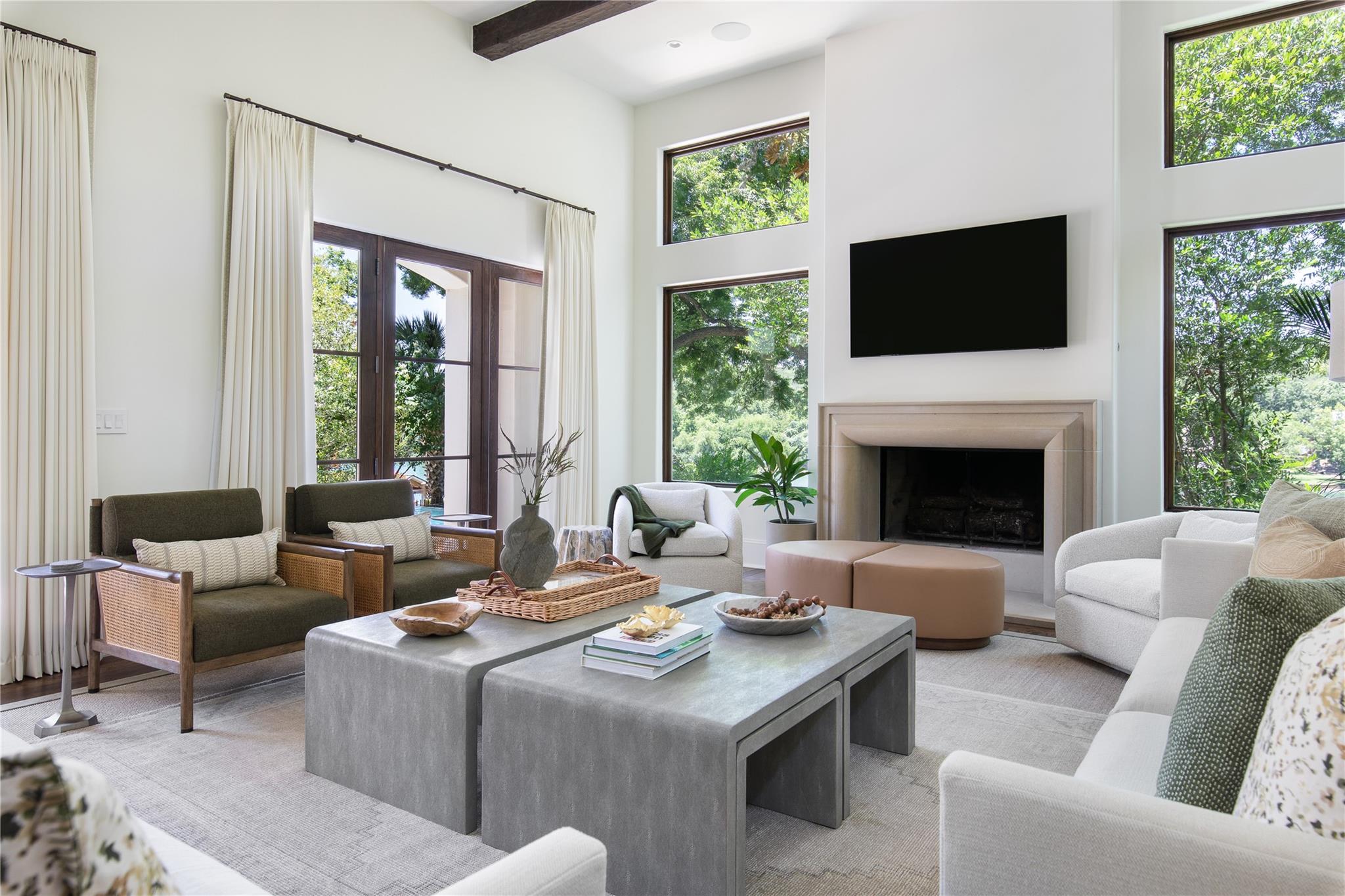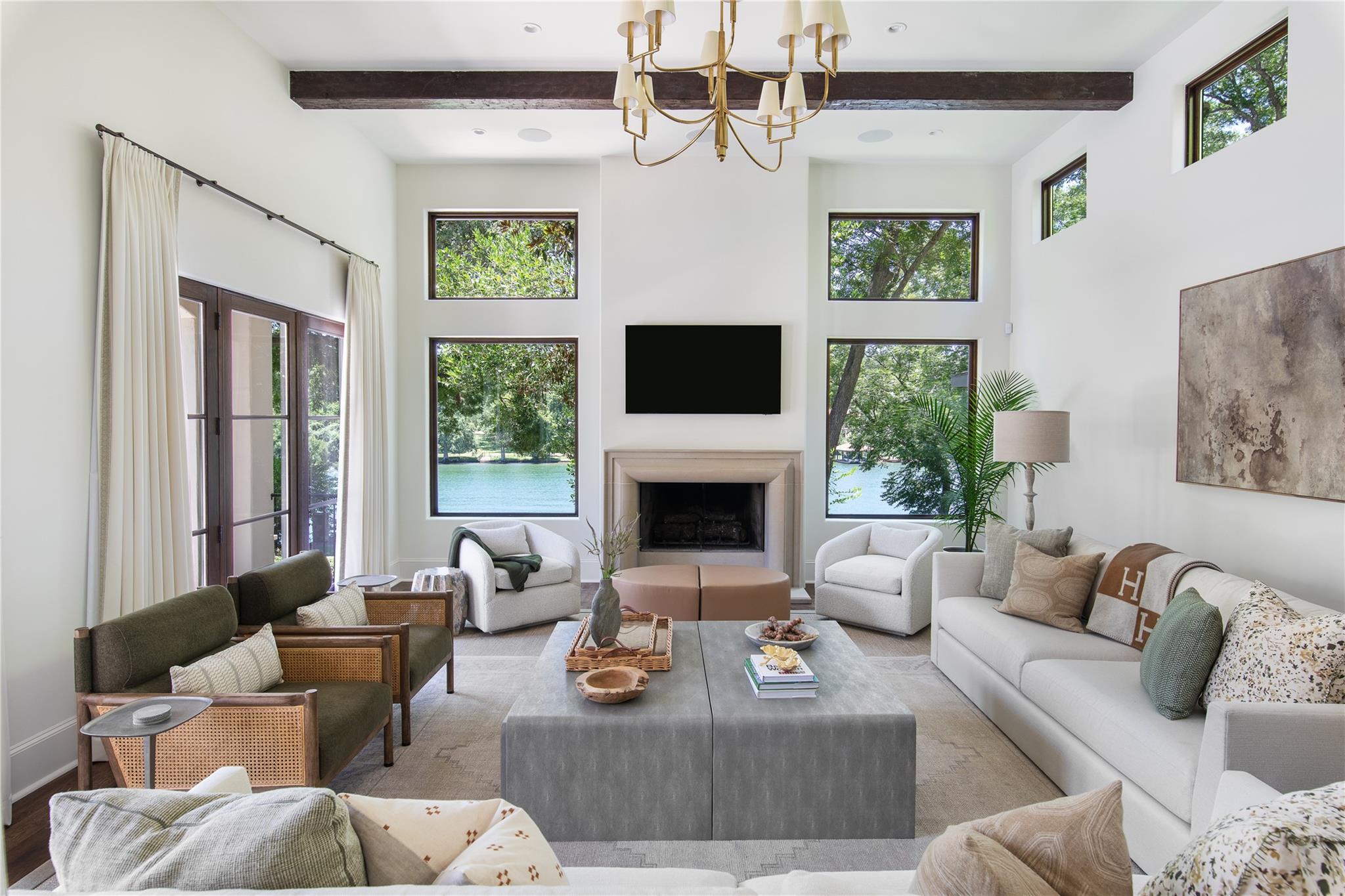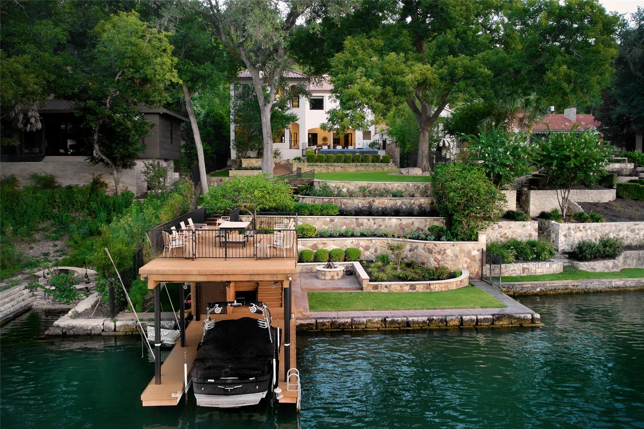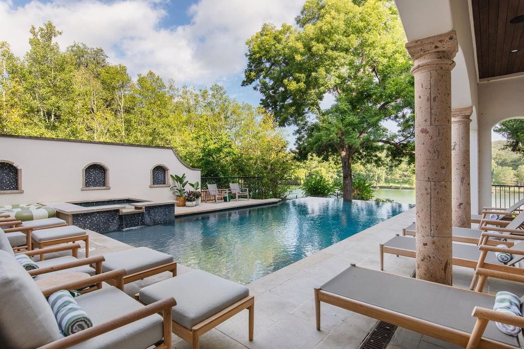 It is my pleasure to introduce “The Lake Como House of Austin”. The epitome of elegant, Lake Austin waterfront living. From the lush exterior to the beautifully curated interior, you will find a sanctuary of nature, relaxation & privacy. The home has been completely renovated with the whole design philosophy centered around the stunning lake views. Located on an excellent stretch of Lake Austin & within the highly sought after Eanes School District. Situated at the end of Bruton Springs, a long, private driveway provides a beautiful approach to the home along w/ ample parking for guests. The front entry rotunda features a commissioned ceramic installation w/ over 400 pieces of white ceramic replica of natural specimens gathered from the property. Open concept kitchen, dining & living. Custom White Oak cabinets, quartzite countertops, oversized Wolf range, double dishwashers, double oven, walk-in pantry. Custom lounge w/ bar counter, bold plastered walls, custom banquettes & a double-sided fireplace. The opposite side of the fireplace flows into a large game room w/ a shuffleboard, pool table, & windows overlooking the pool and lake. Outside, the infinity-edge swimming pool becomes one w/ the lake. A covered porch hosts a large outdoor dining table w/ kitchenette. Terracing down to the water, the lot features towering trees and extensive landscaping. There is a large, flat, grassed yard space. The two story boat dock is home to a huge party deck. Primary Bedroom offers sweeping windows w/ a large balcony overlooking the pool & lake. Natural light fills the space from all sides. Beautiful marble counters w/ a standalone bathtub is the highlight in the primary bathroom, along with the expansive walk-in closet with custom built-ins and high-tech features. Speaking of technology, this home features a wired sound system, robust security system w/ cameras, whole house generator and much more! The home is being sold fully-furnished, inquire w/ agent to see what is included.
