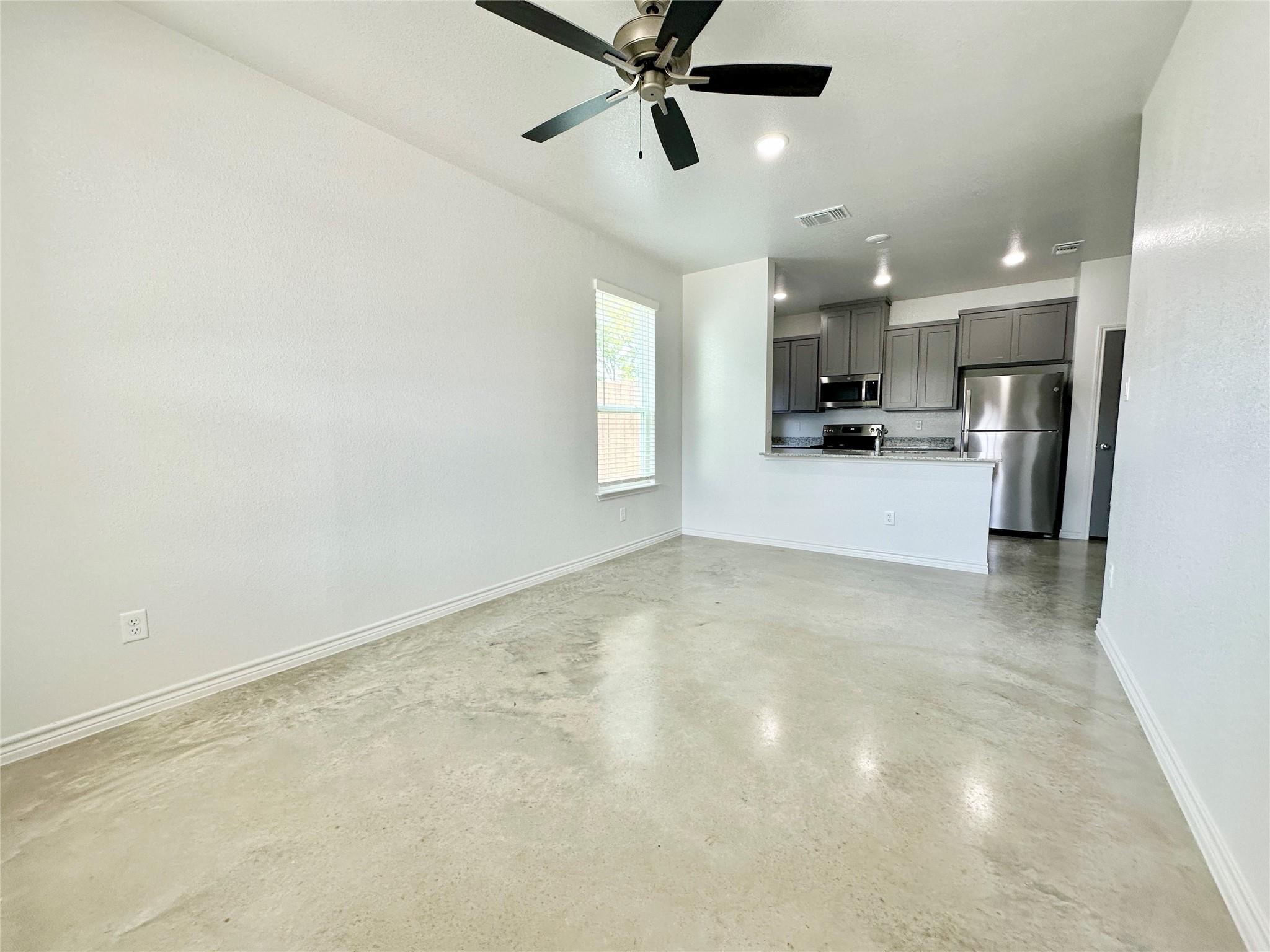 This spacious duplex offers over 1,300 square feet of living space, with 3 bedrooms and 2 bathrooms. Each unit includes a large living room and dining area, perfect for entertaining. The kitchen is well-equipped with stainless steel appliances, such as a refrigerator, dishwasher, microwave, and electric range. For added convenience, a washer and dryer are also provided. Additional amenities include custom cabinets, a 6-foot privacy fence, a full-yard sprinkler system, and a garage door opener.