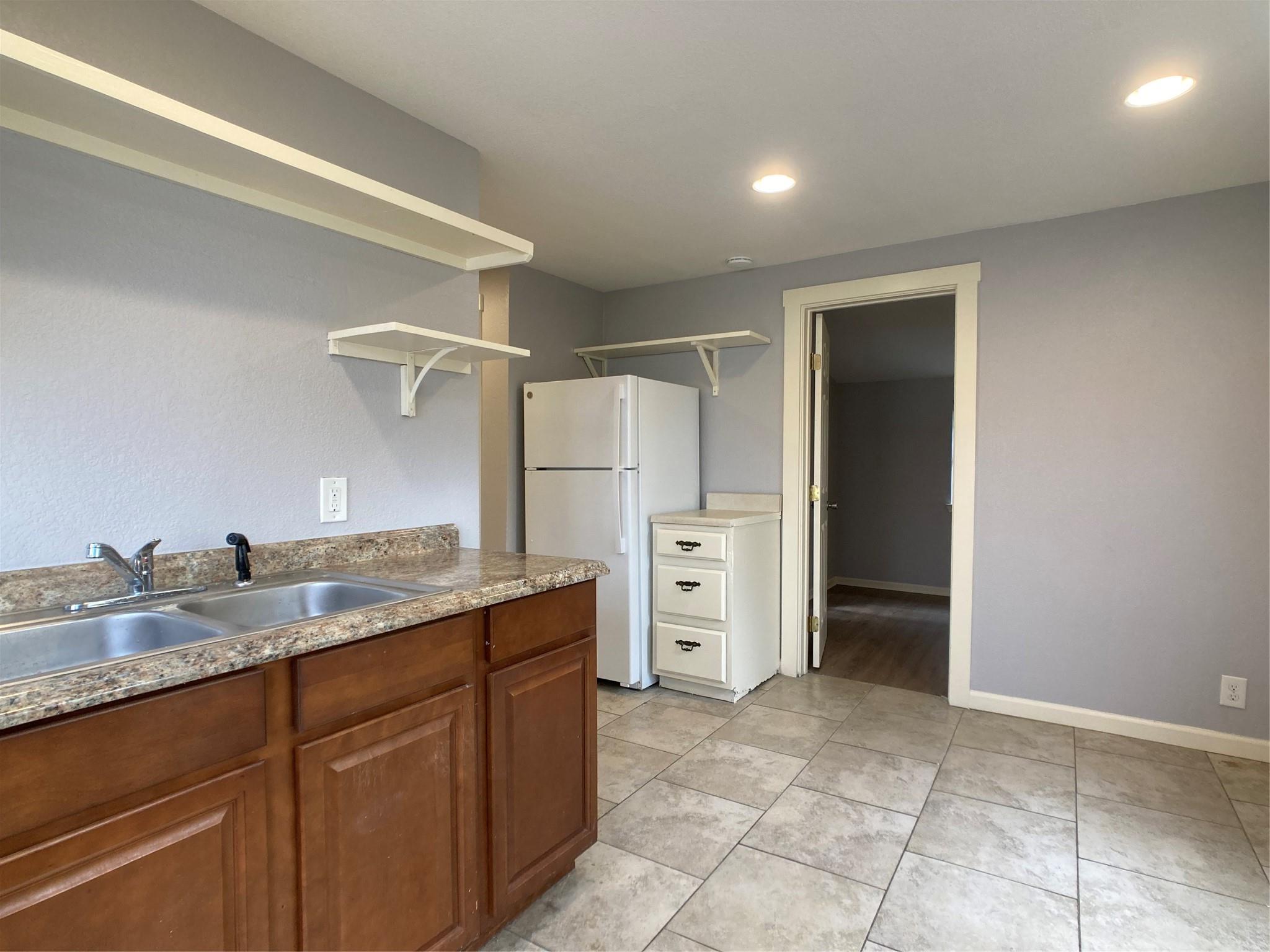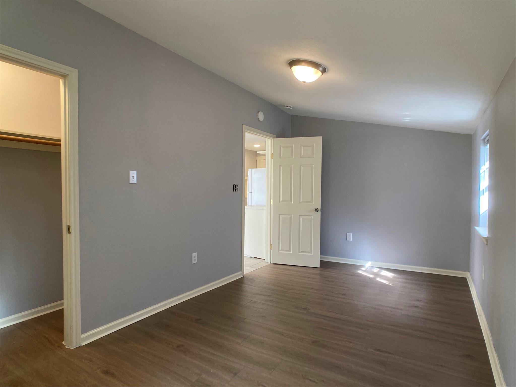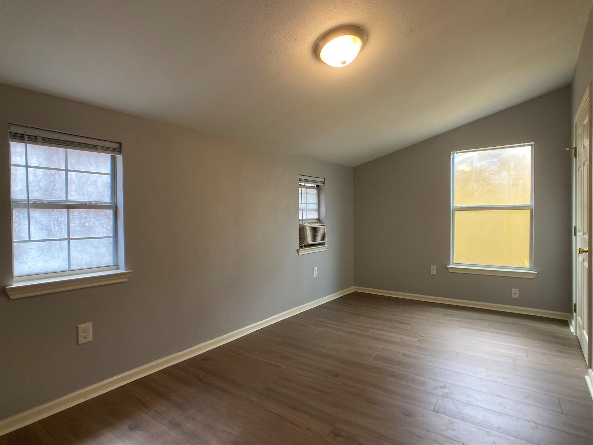 Unit B of 4-plex. Fresh paint and new bedroom flooring, no carpet. Flat rate utility charge of 120/month. laundry room on site. on street parking. No dogs. Cat only. Very close to bus route, shopping, dining.