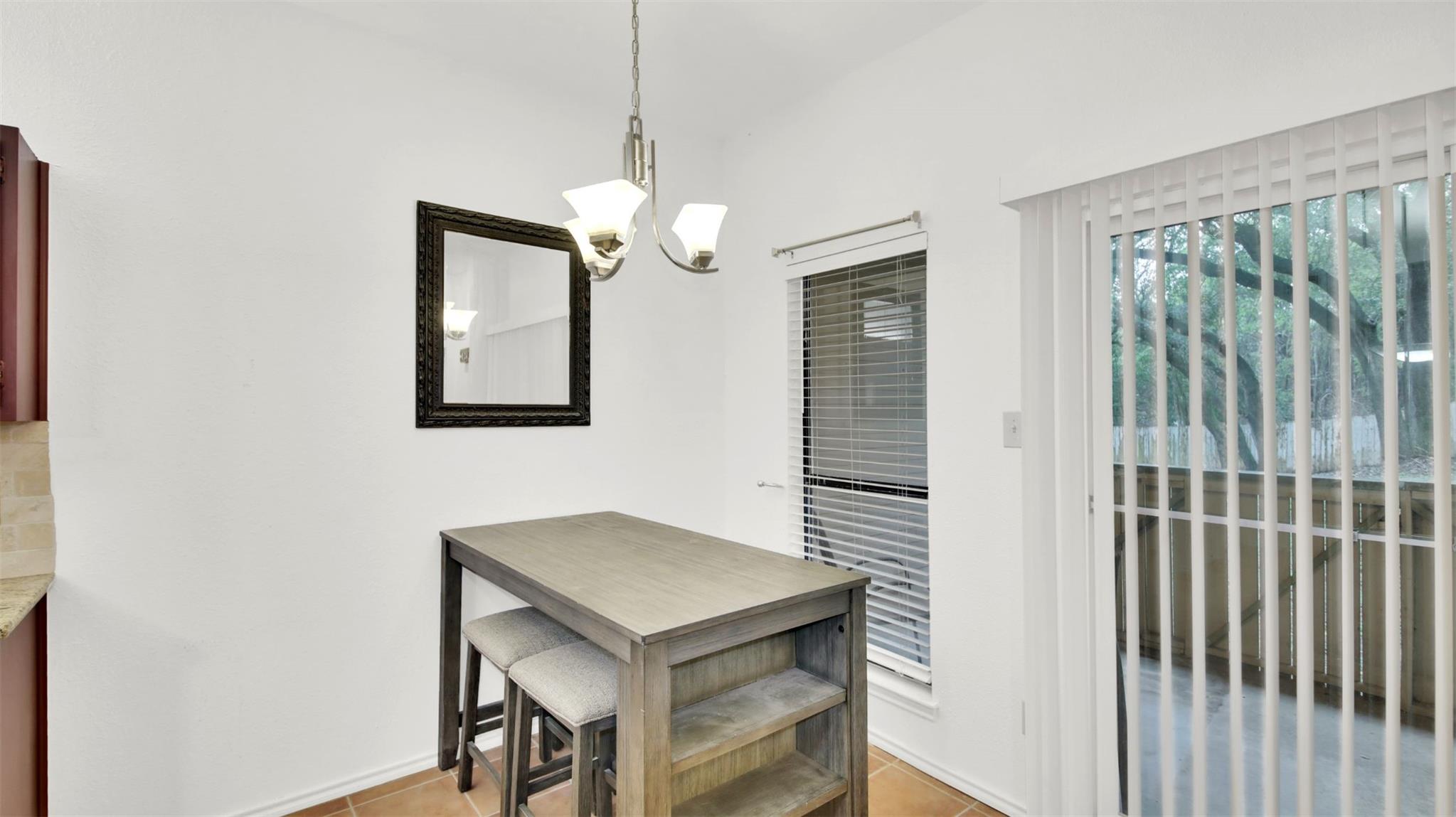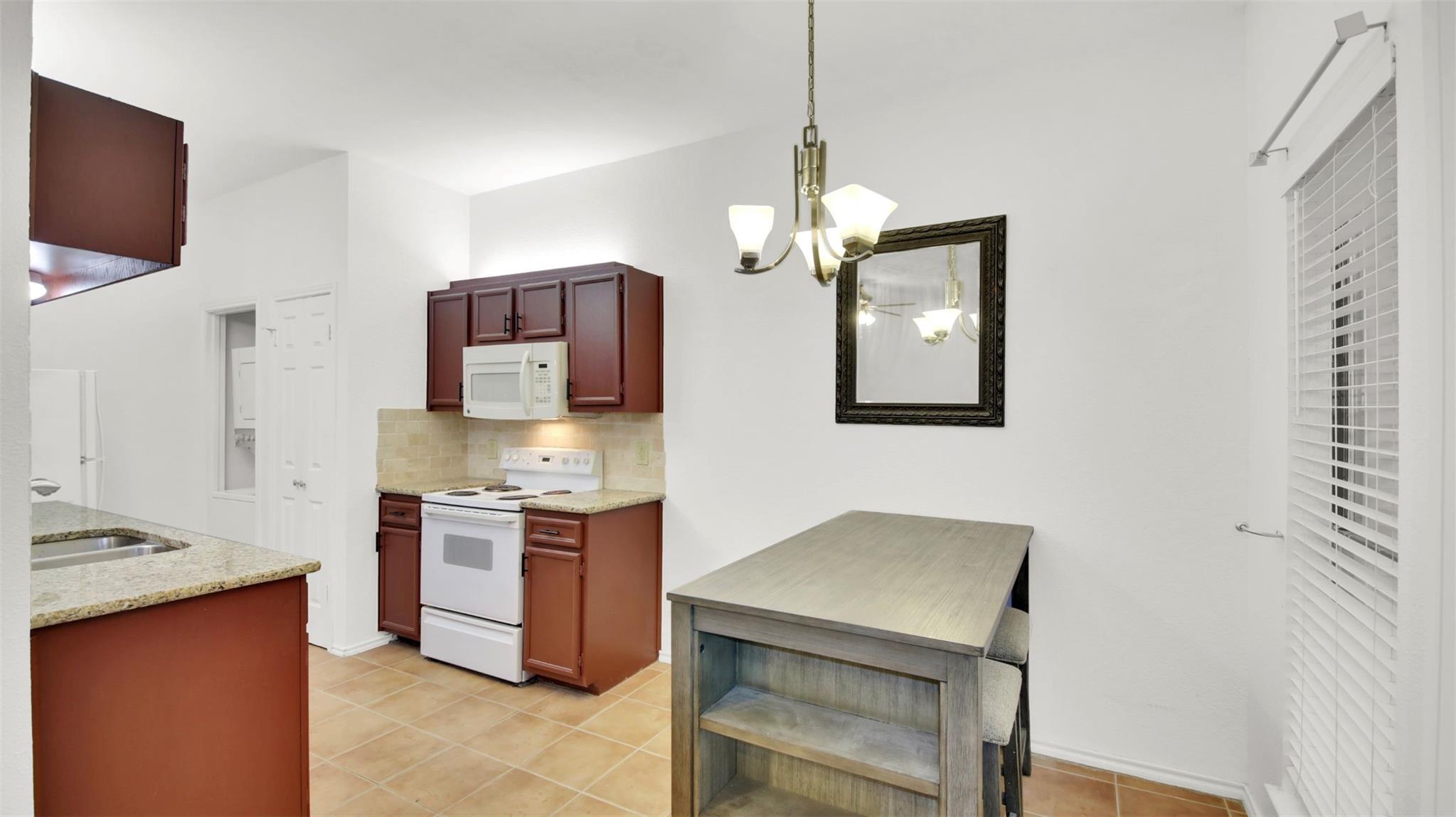 Beautiful 1 bedroom, 1 bath condo with stackable washer and dryer, located on the 1st floor. Open floorplan, fireplace, bar area, granite counter tops, tile floors, covered back patio leads to open backyard(shared area), lots of trees, move in ready. Near shopping, restaurants, grocery stores, just a few minutes to the Domain.