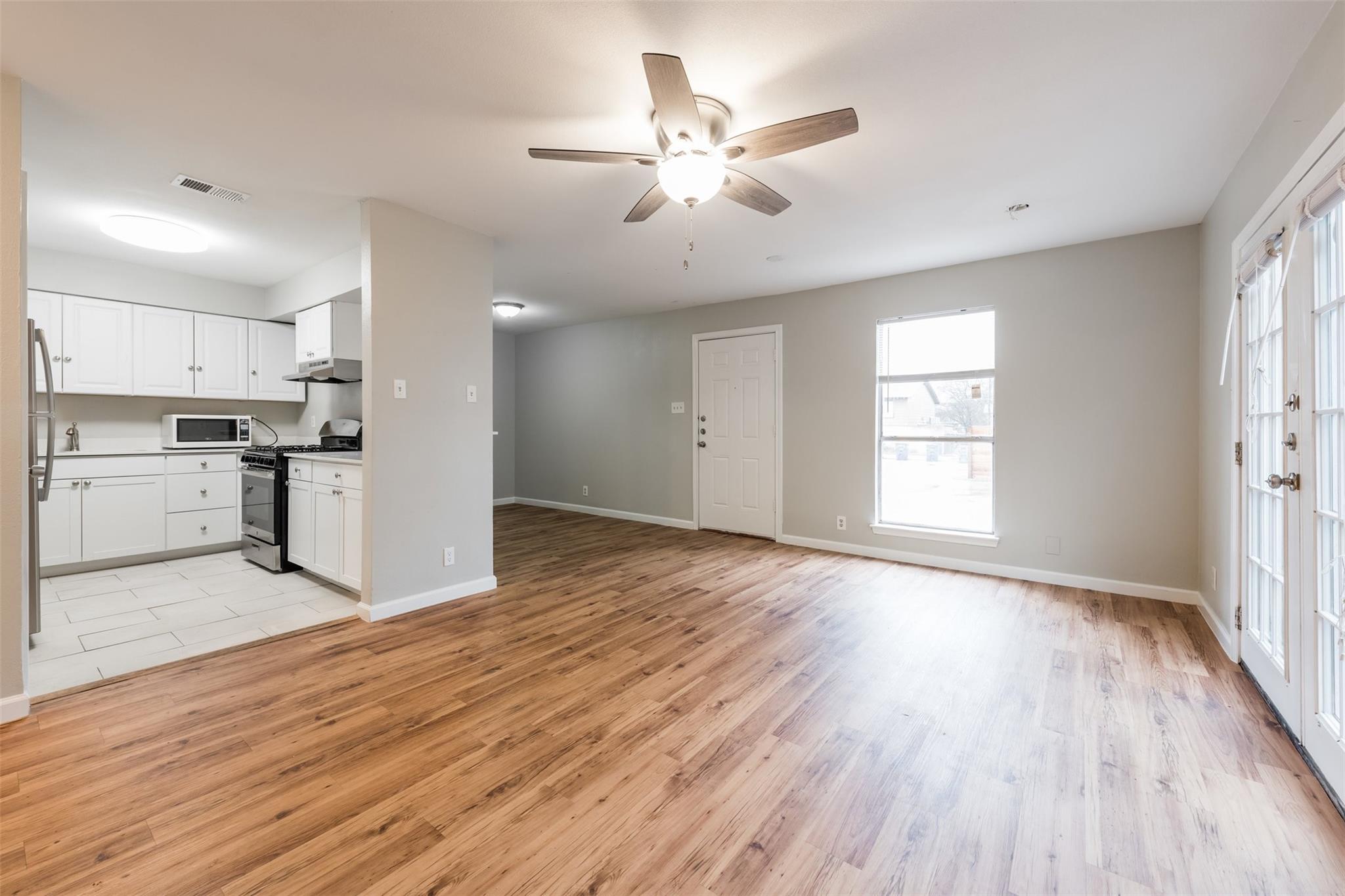 Available May 19. Updated South Austin four-plex unit in excellent condition. Open plan with living room, dining room, open counter to kitchen, and French doors to side yard. Includes keyless entry, stainless appliances, pantry, tile and vinyl plank floors, storage, laundry room with hookups, fenced yard and off-street parking. Excellent location just off Westgate Blvd, close to 290, Menchaca, Stassney, Brodie and William Cannon.