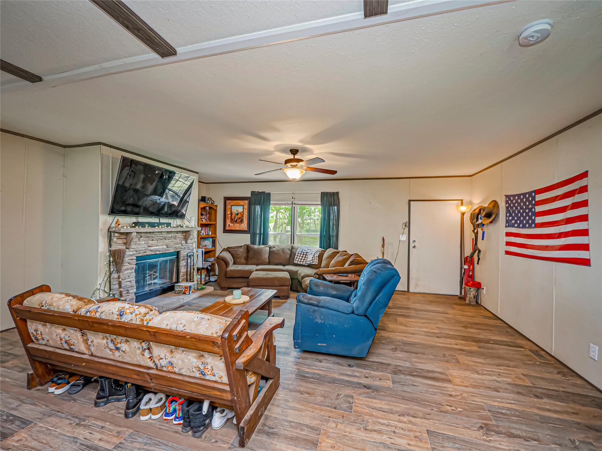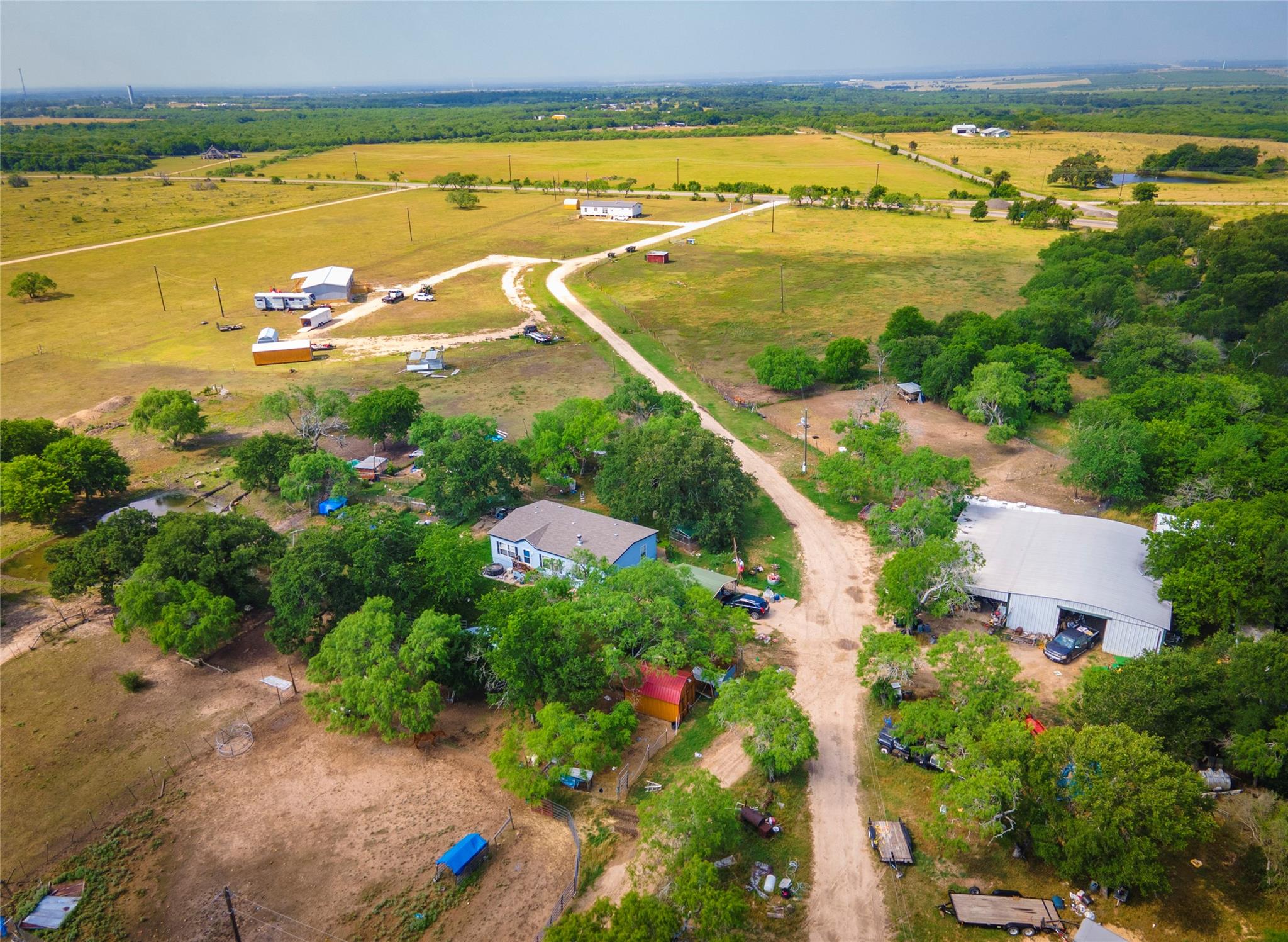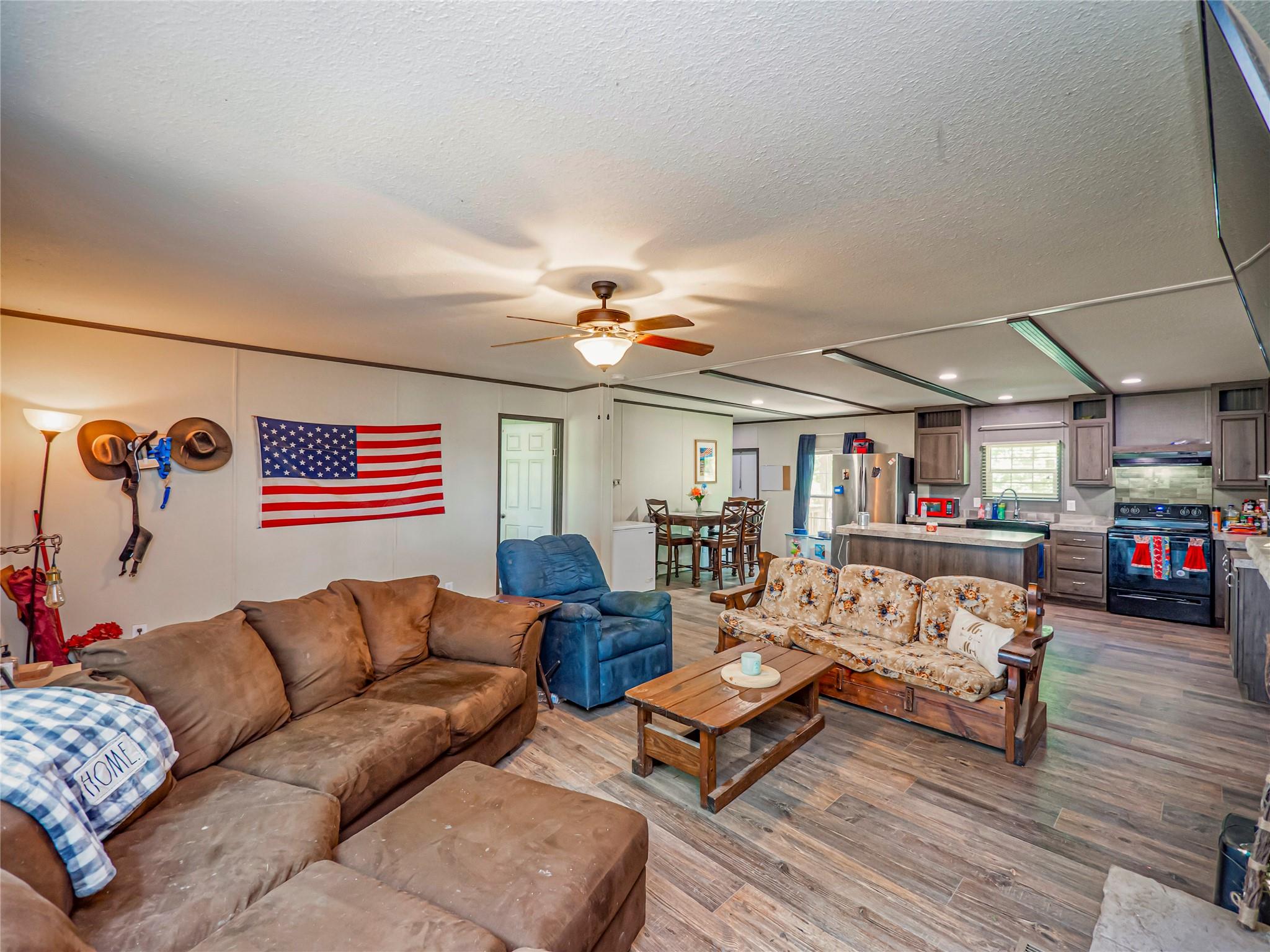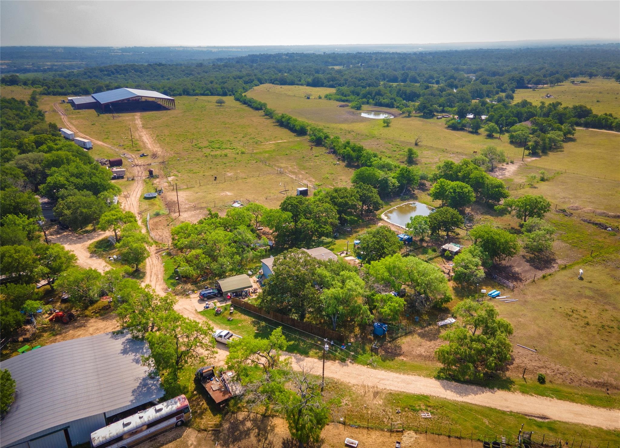 Situated on a vast 98.62 acres of breathtaking land, this unique property features not one, but TWO beautifully designed 3 bed/2 bath manufactured homes. With identical open floor plans, these homes offer the perfect combination of modern convenience and cozy comfort. The spacious island kitchen comes complete with a breakfast bar, ample workspace, and storage. The laminate flooring throughout the main living areas and baths adds a touch of timeless elegance, while the plush carpeting in the bedrooms creates a cozy retreat. Each home has its own septic in place. But this property is not just about the homes. Prepare to be wowed by the impressive 60x60 shop, complete with electric and water. With two sliding doors, this space is perfect for storing your RV, bus, or even an 18 wheeler. With two stocked ponds, you can fish at your leisure or simply relax by the water and take in the peaceful ambiance. And if you're a hunting enthusiast, you'll be delighted to know that this property is unrestricted, allowing for endless hunting adventures. This property boasts a fully covered PBR certified rodeo arena, complete with a dance hall and concession stand. Imagine the excitement of hosting your own events or simply watching the action unfold from the comfort of your own home. This is entertainment at its finest.
