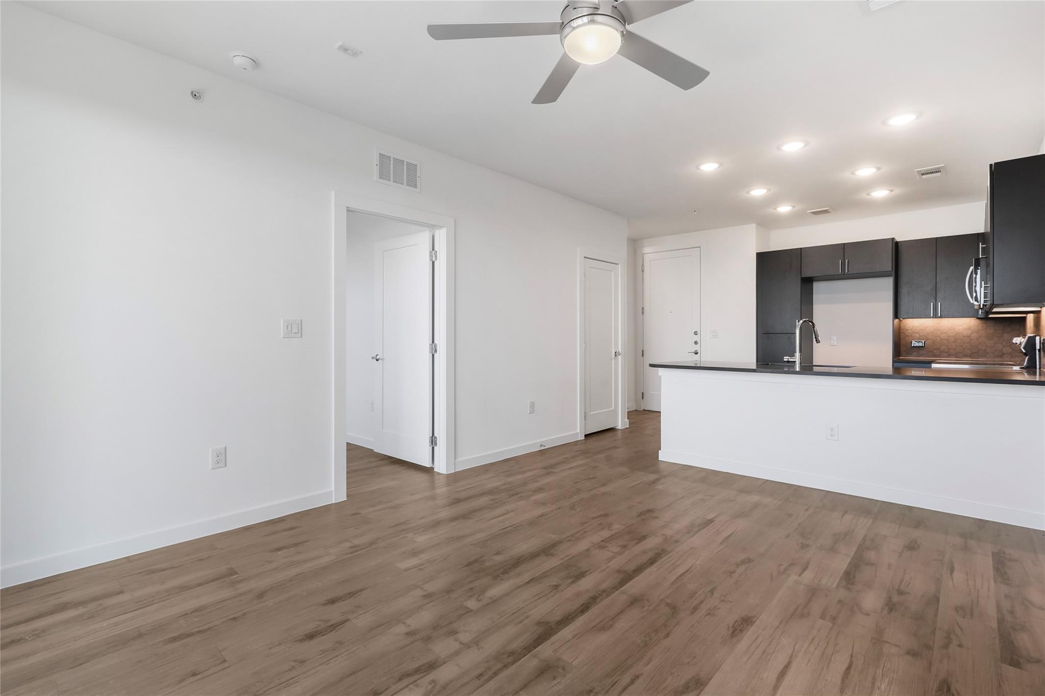 **Top Floor Corner Unit - Refrigerator, Washer/Dryer, Window Blinds, and one covered parking space included** Welcome to Gravity ATX - East Austin’s BRAND NEW community. Located just a few minutes east of the Mueller neighborhood on the popular Springdale Road, Gravity ATX has great proximity to restaurants, coffee shops, retail, HEB (grocery store), parks, food trucks, and weekly farmer's market. There is also great access to major roadways for the commuter to easily get around Austin if needed. The community itself takes security seriously with all building access doors being equipped with access terminals with video so that all guests arriving at the building are monitored. Lobby features mailboxes and locked package delivery boxes. The adjoining building from the unit has a rooftop patio for a great view. When its time to enjoy some fresh air - the community built a large fenced wooded park with paths under the trees for a place to get your exercise or play with your dog! The unit itself faces south allowing sunlight through the large sliding glass windows overlooking your spacious balcony, the courtyard, pool, grill area, and community seating area with outdoor fireplace. This large, modern, top floor, one bedroom unit in a brand new community is now ready for someone to call it home. Schedule a tour today! Virtual, In person, or FaceTime tours are available. See gravityatx.com for more info.