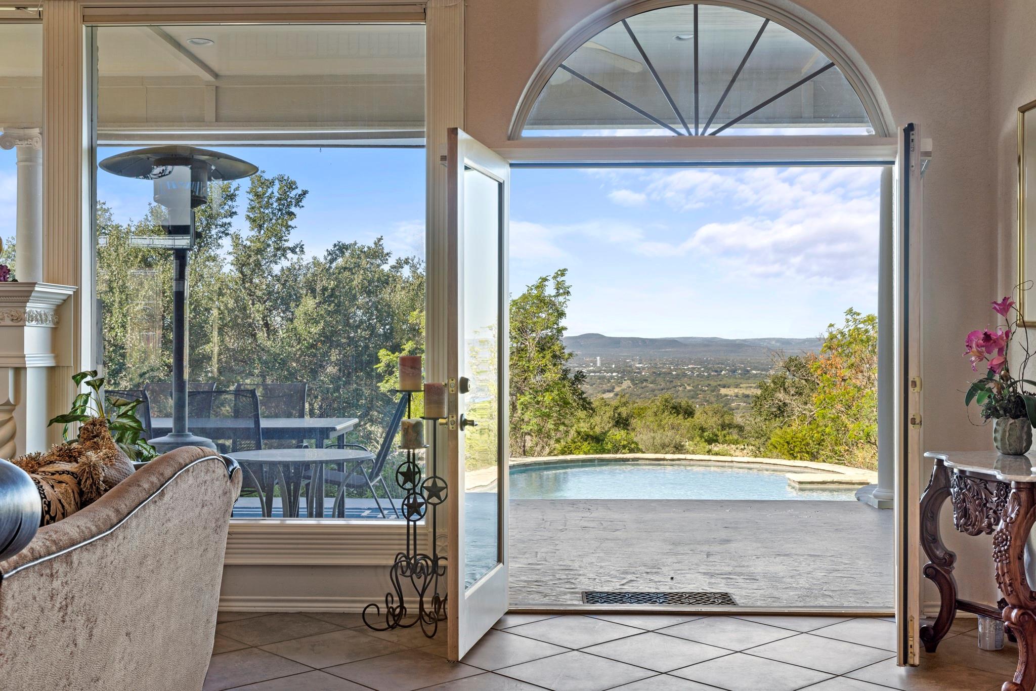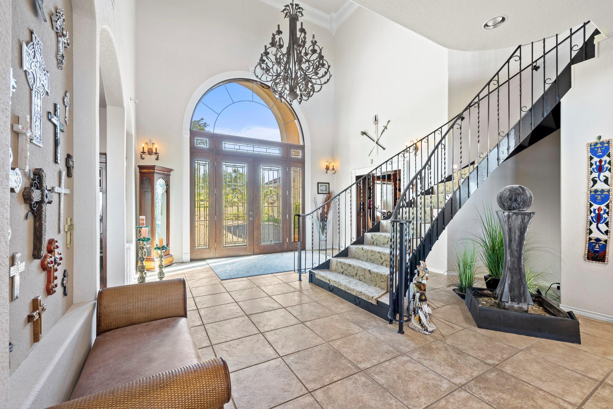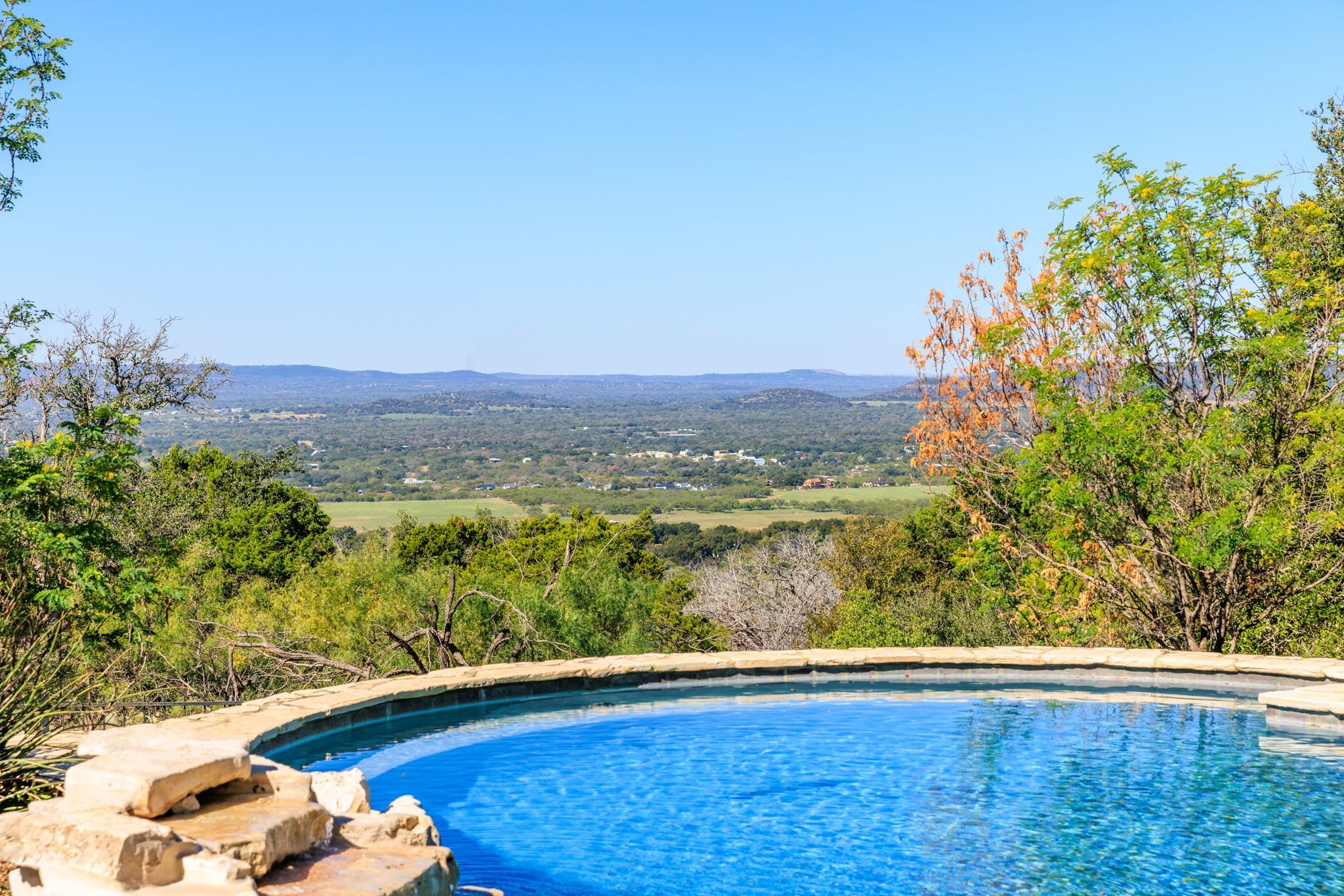 Welcome to the breathtaking 268-acre ranch nestled in the heart of the hill country. This remarkable property offers an extraordinary opportunity for those seeking unparalleled natural beauty, and a multitude of possibilities. Perched atop a mountain, the custom-designed 7500 sq ft home commands awe-inspiring panoramic views of the surrounding hill country and three stunning lakes. The vistas from this vantage point are truly awe-inspiring, providing a constant reminder of the wonders of nature. One of the standout features of this ranch is the live water sourced from roaring springs. The melodious sound of the water cascading through the property adds to the tranquility and charm of this idyllic setting.Dotted throughout the expansive landscape are majestic oaks, providing shade and adding to the overall allure of the property. The elevation at the summit reaches an impressive 1260 ft, providing an excellent vantage point for absorbing the breathtaking scenery. Wildlife enthusiasts will be delighted by the abundance of wildlife that calls this ranch home. Nature lovers will revel in the opportunity to observe native animals in their natural habitat, creating a unique and unforgettable experience and over 100 native plants.The vastness of the property presents numerous possibilities for its use. With approximately 2,687 ft of road frontage on FM 2342, this ranch offers exceptional development opportunities. The size and natural beauty of the land make it a prime location for a wine venue.