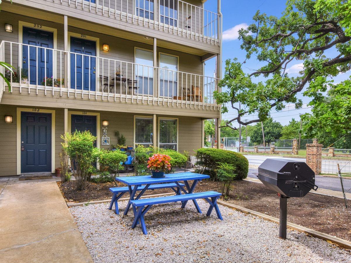1st floor condo in a great location - walking distance to shopping, dining, transportation, and UT! Shipe Park across the street includes tennis & community pool! Condo boasts many interior upgrades including bathrooms, granite and marble counter tops, recent cabinets, recent lighting fixtures, 6-panel doors, and more! Private study/office & dining area located next to kitchen. 1 designated parking spot & visitor parking.