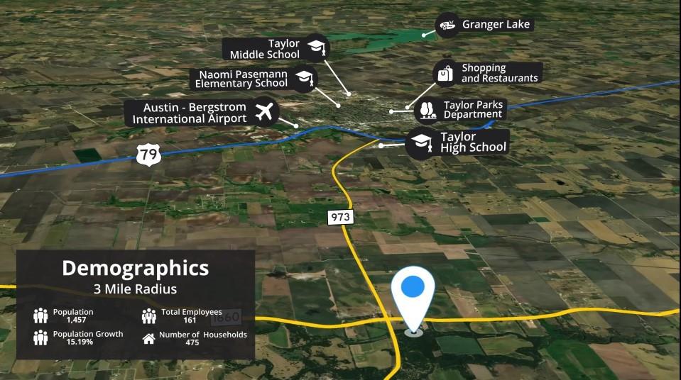 This 64.09 acres lot, 36.42 acres lot and 1.72 acres lot totaling 102.23 acres are being sold together for $12,000.000 or separately...the North 64.09 acres lot for $7,800.000 and the South 36.42 & 1.72 acres lots for $4,500,000. The South lots are only being sold together. Located in the Taylor ETJ is right down the street from the new Samsung facility being built! Ideal county property just outside of city limits with NO ZONING land! Roughly four miles from the Samsung location under construction, and just 30 miles from Austin. Don't miss out on your chance to get in early for this growing area!