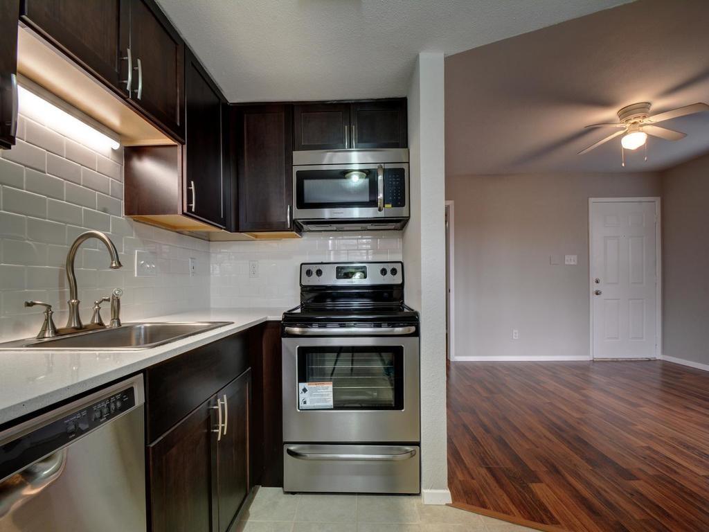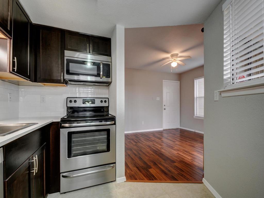 Amazing Condo in a gated community less than 3 miles from downtown Austin and walking distance to the Oracle Riverside Campus. Fully Updated 1 bedroom 1 bath with laminate wood floors and private patio. Enjoy the convenience of Zilker Park, Barton Springs, Lady Bird Lake Hike-and-Bike Trail, SoCo and ABIA Airport. Community well kept, pet friendly, community pool & located in desirable East Riverside Area. Remodeled kitchen cabinets, quartz countertops, stainless steel appliances, *Fridge, Washer & Dryer included* Google Fiber available. Some photos may be of different unit.