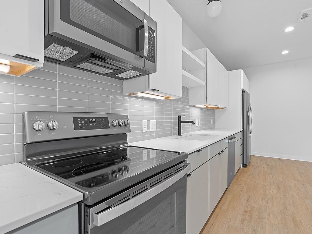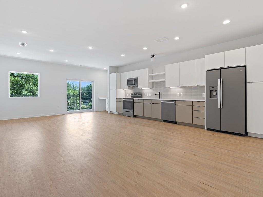 Stunning new construction on South Congress with Fun and Nature outside the front door. Ultra Rare 1 Bedroom 1 Bath floor plan that has great finishes and the perfect floor plan. Outdoor amenities include a community “back yard” with entertaining kitchen, grill, fire pit, games, dog park, and a walking trail w/ large heritage oak trees. The second floor features an elevated deck with lounge seating and community garden planters overlooking the field and tree-lined creek.