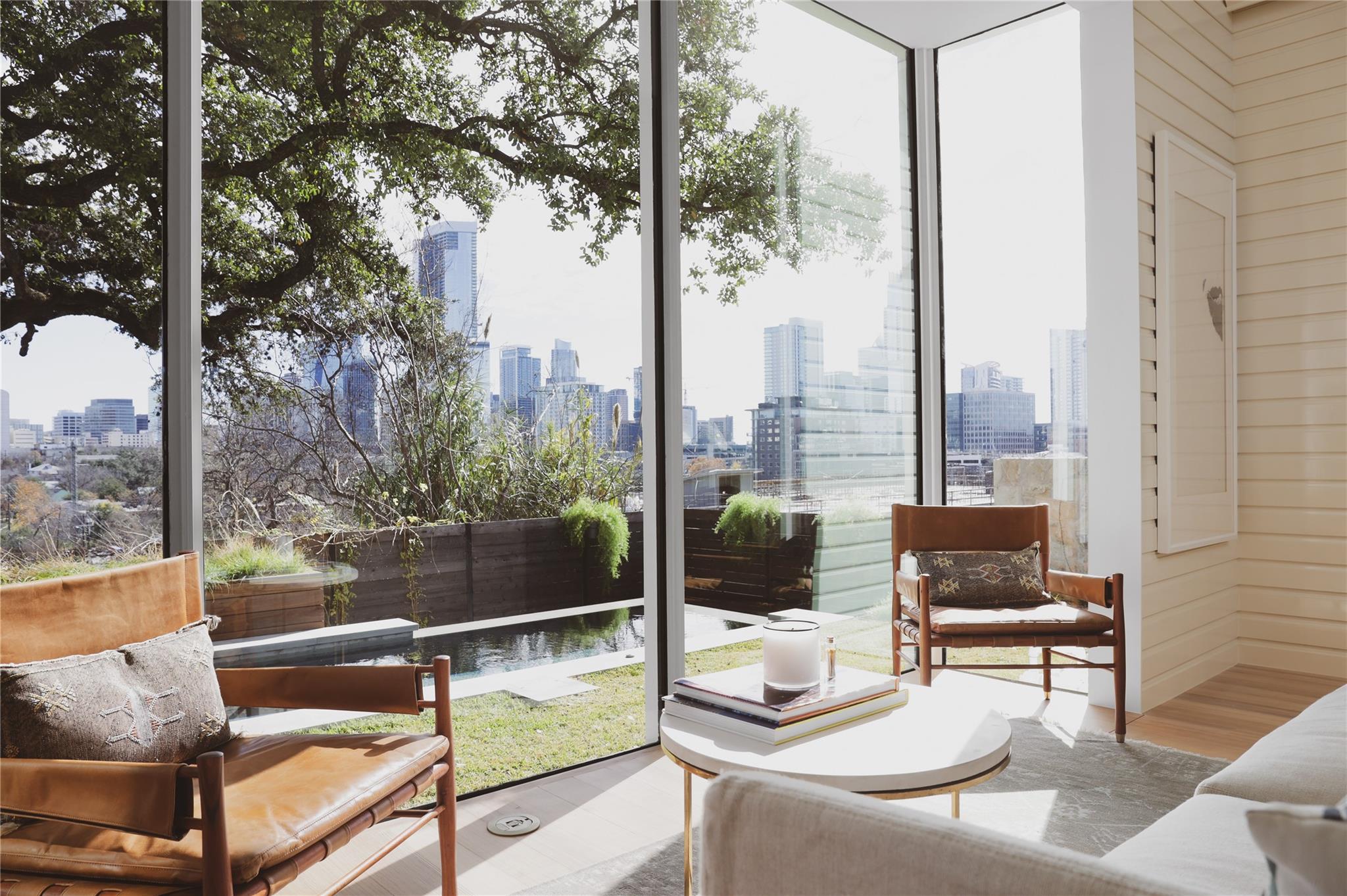 Nestled in the heart of Clarksville, stands a stunning residence that redefines luxury living while maintaining that charm. Allow us to introduce the Cottage at the Castle. The Cottage, thoughtfully reimagined by the acclaimed Hugh Jefferson Randolph Architects and brought to life by one of Austin’s finest luxury builders, Urban Constructors. The property, designed across three levels, features Venetian plaster walls complemented by reclaimed pine floors, hand-stained terracotta tile, and bold marble selections that evoke a timeless charm. The chef’s kitchen and bathrooms add a touch of elegance, while charming wainscoting and interior stone walls enhance the character throughout the interiors. The stunning rooftop terrace boasts unparalleled 360-degree views of Austin's evolving skyline. Its gated exterior, complete with elegant landscaping, a plunge pool, and multiple outdoor living spaces, is a testament to the pinnacle of refined urban living, all with picturesque views of Clarksville and the Austin skyline. The upper floor is reserved for an exquisite owner's suite, a sanctuary that extends onto an expansive deck with views of downtown. This private retreat features an expansive walk-in closet and spa-like bath. The thoughtfully designed interior is an entertainer's dream, with the lower level consisting of two ensuite bedrooms, a media room, and a chic bar/lounge area. On the main floor, you will find an additional bedroom suite seamlessly integrated with a designer kitchen and living room. The design of this area meticulously blends both luxury and functionality, making it ideal for hosting gatherings or enjoying quiet, cozy nights in. Whether it's unwinding in the pool, hosting a dinner party on the terrace, or nurturing the garden, this residence redefines the art of city living. Perfectly situated between downtown, Shoal Creek, and Lady Bird Lake, this Clarksville home epitomizes the crossroads of sophistication and convenience.