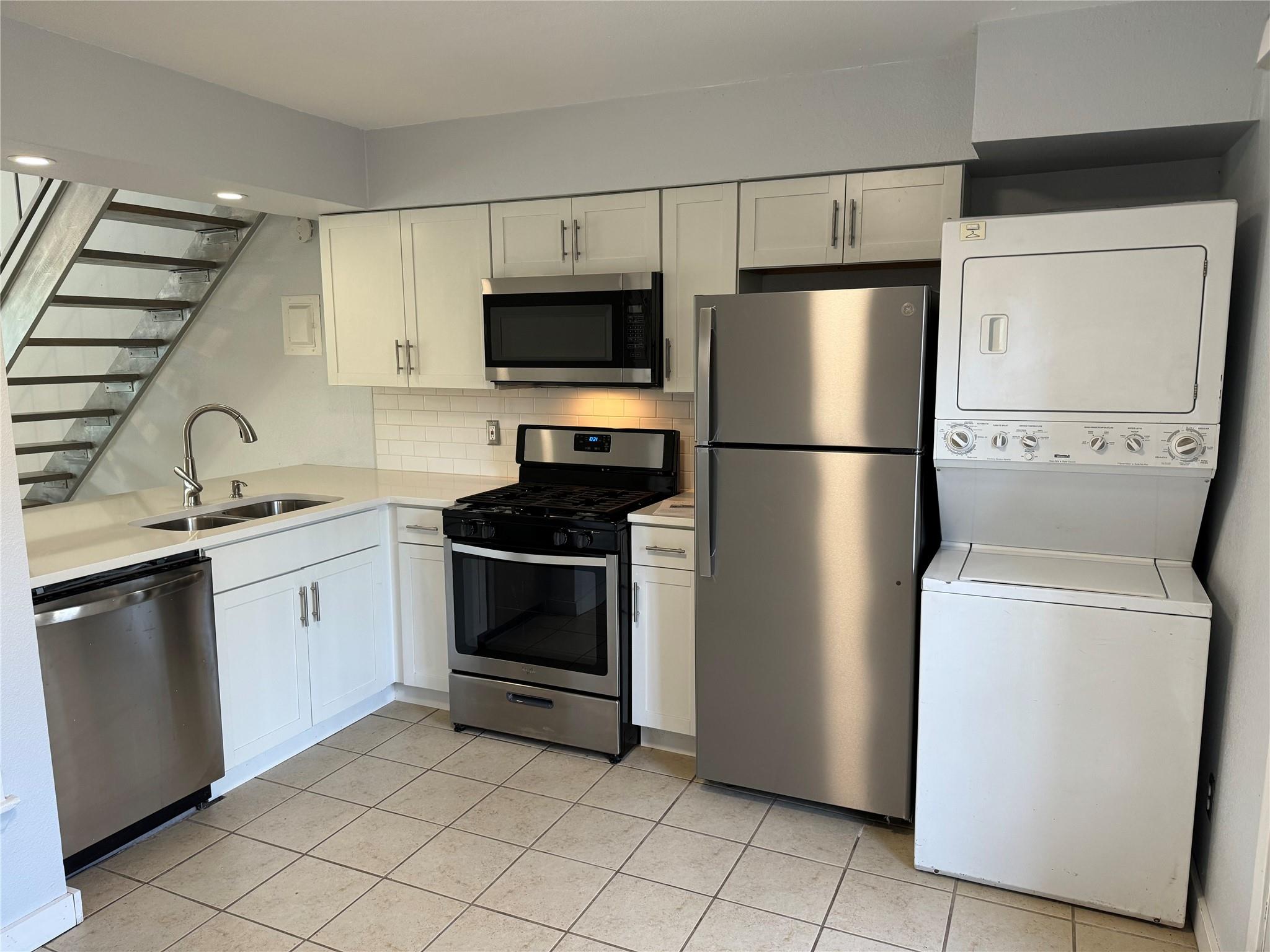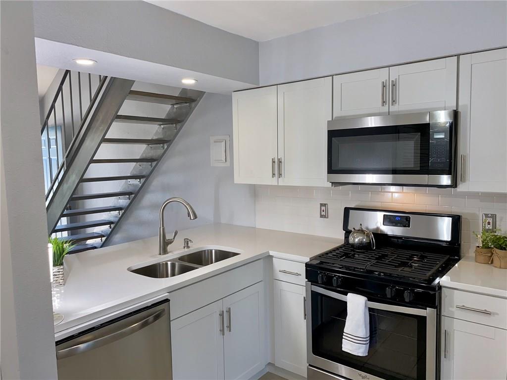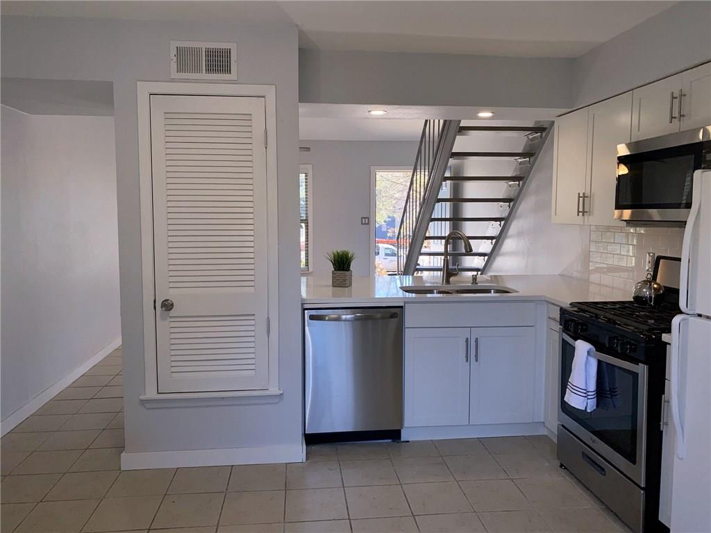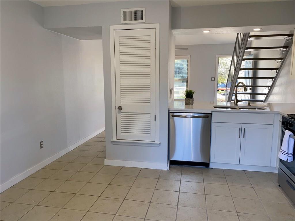 VACANT & READY...¡wOw! lots of recently updates include cabinets and countertops...stack washer and dryer in kitchen...large eat-in silestone kitchen also has breakfast bar open to vaulted living ...french doors from kitchen/dining open to fenced private patio with large shared yard beyond...upstairs loft style bedroom has updated bathroom and walk-in closet...EZ parking right in front...A#1 location with great access to South Congress and downtown. no cat please. dog is ok. Agent: please see MLS attached for instruction how to submit the app and payment, include the ID & financial document for faster process.