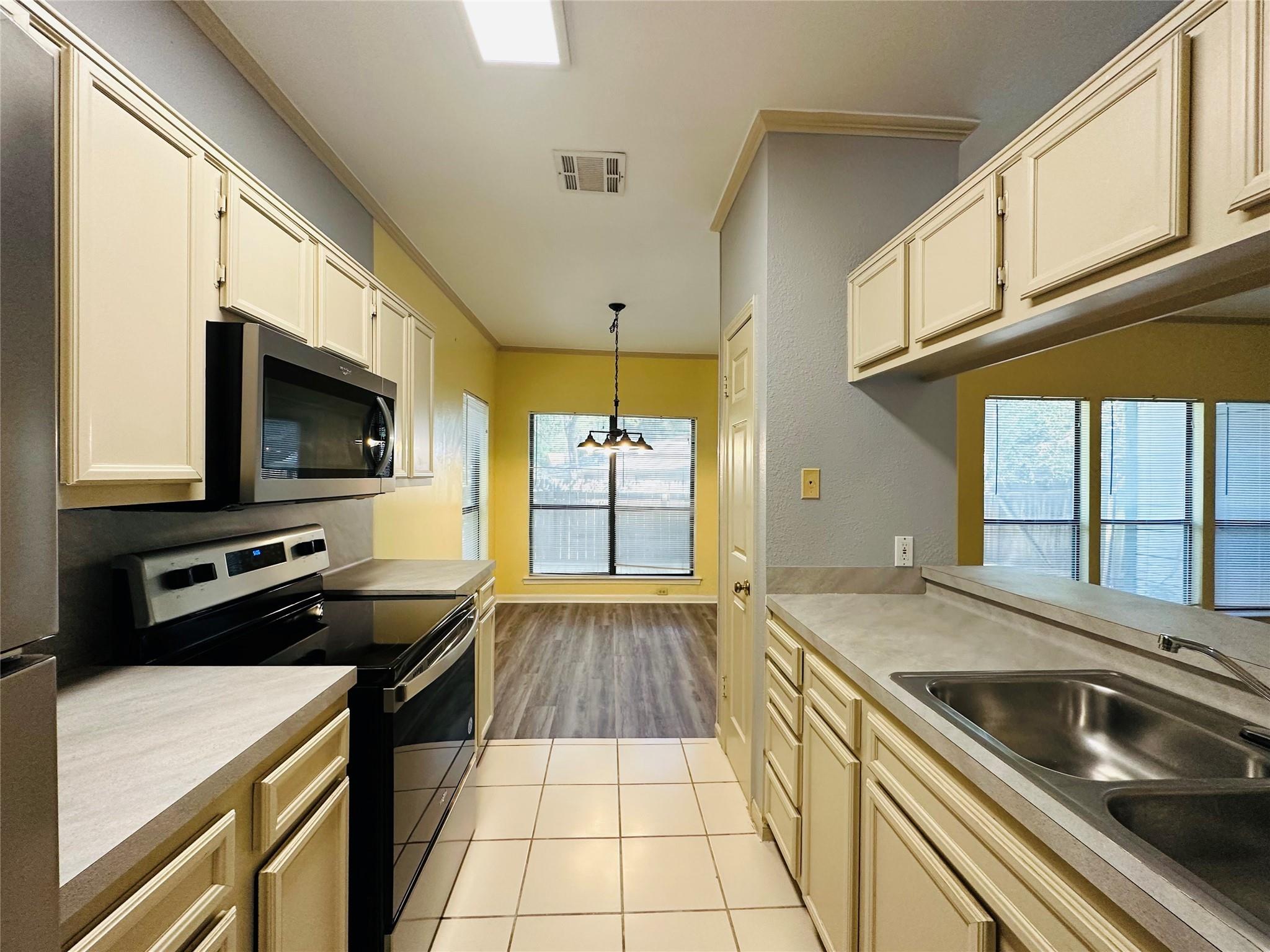 | Appliances | Dishwasher, Disposal, Electric Range, Microwave, Plumbed For Ice Maker, Free-Standing Electric Range, RNGHD, Refrigerator, Stainless Steel Appliance(s), Electric Water Heater | |