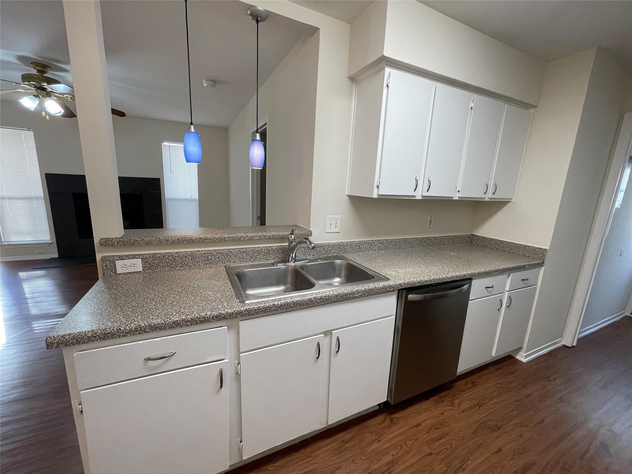 Great updated and very clean single-story duplex on a Cul-De-Sac! Open MIL floorplan! No Carpet throughout! Remodeled kitchen with stainless steel appliances, including a Fridge! Very spacious living room with a fireplace! Large secondary bedrooms w/ ceiling fans! Attached garage, and a very large Fenced-in Backyard! RRISD! Great location, close to shopping, dining, parks, major roads & employers!