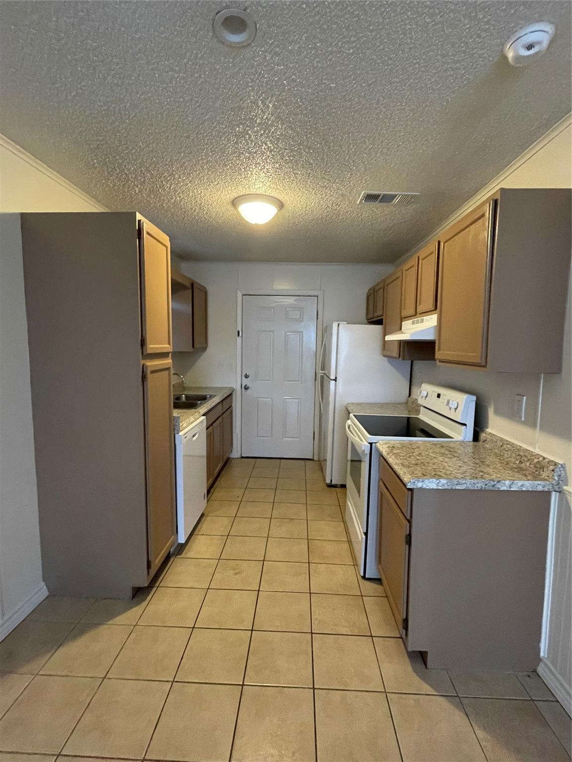 This quaint 2 bedroom 2 bathroom duplex features tile flooring through out, laminate counter tops in the kitchen, has stackable washer & dryer hook ups located in the secondary bathroom, the primary bedroom features a en suite bathroom with a walk in shower and also features a sliding glass door into the private backyard.