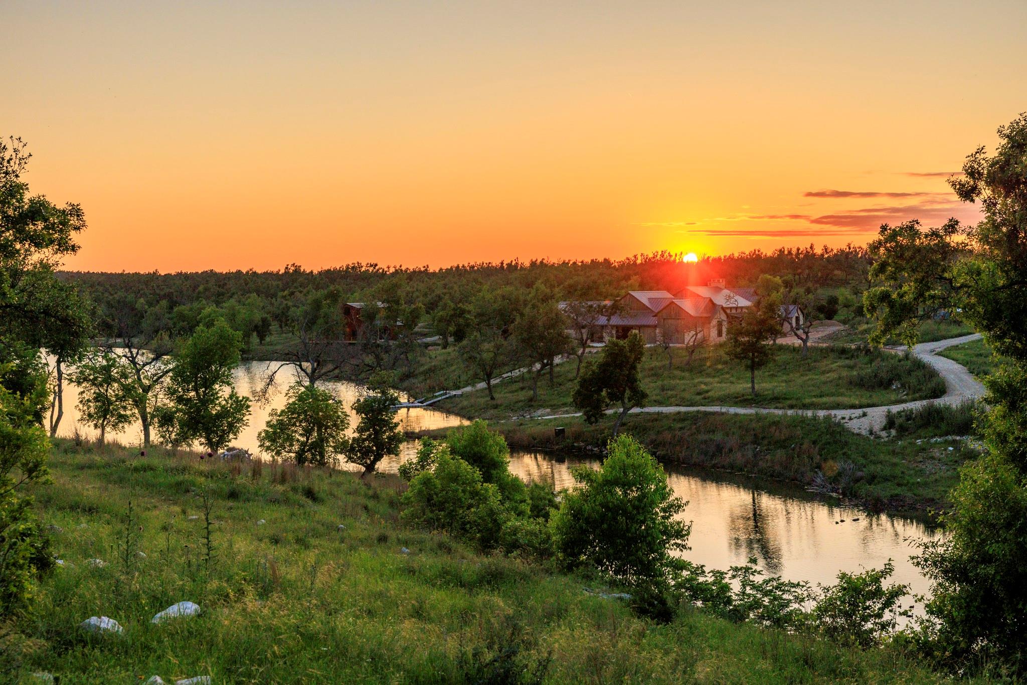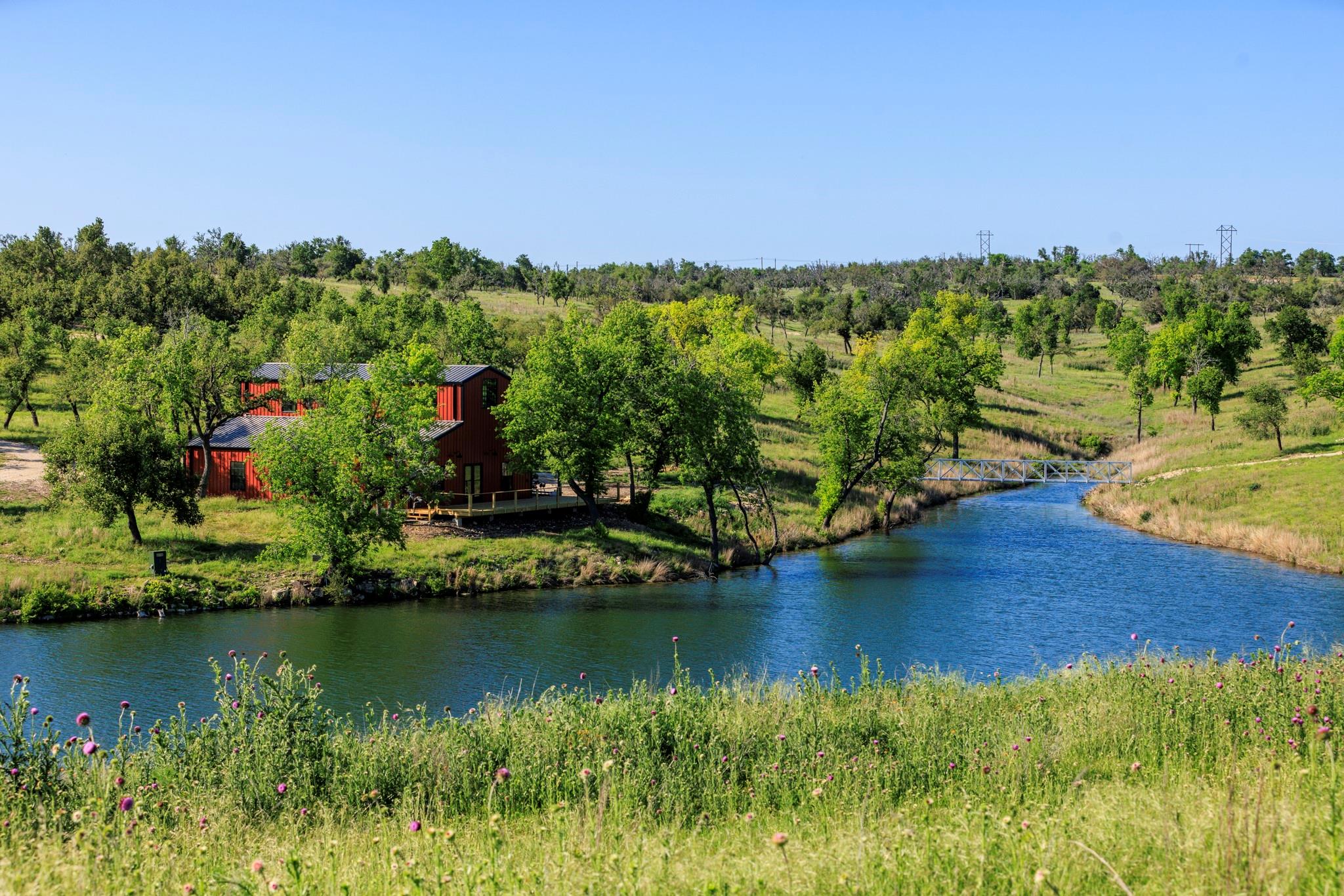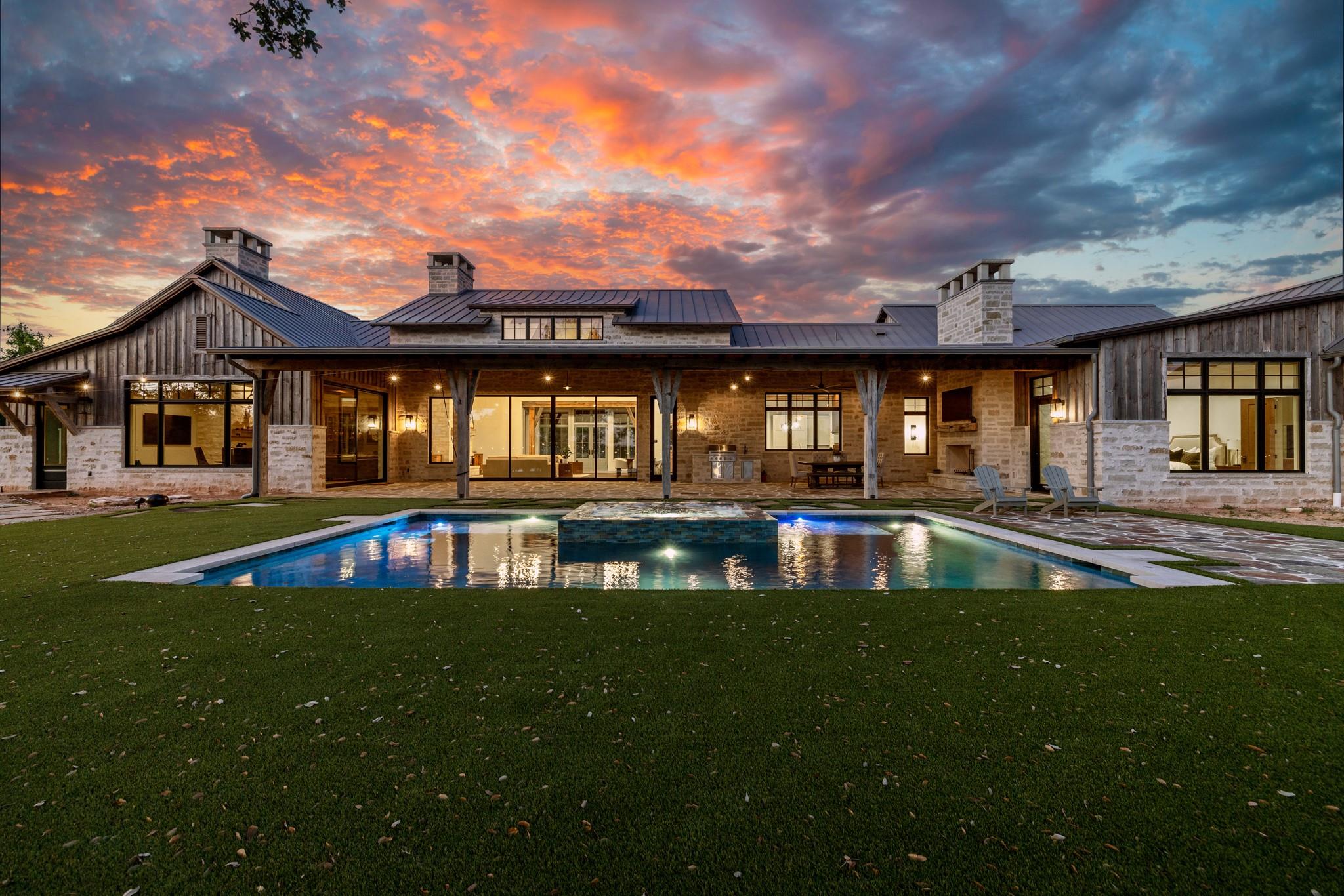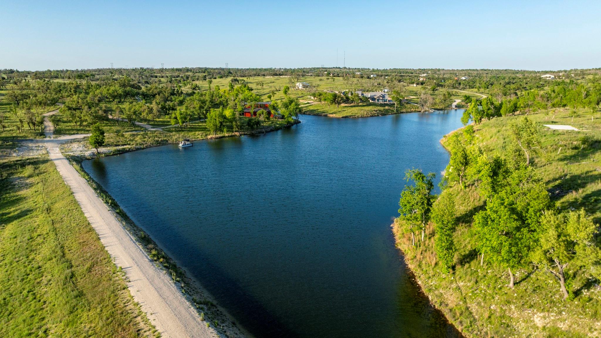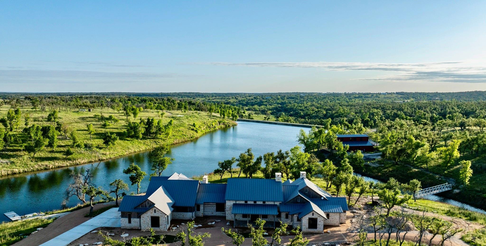 Conveniently positioned ±5 miles north of Fredericksburg with ±3820’ along Hwy 87 N, Low Key Lake Ranch enjoys proximity to many local attractions and has a central location to major metros and airports. The land comprises 146 acres of native grasses, Oak Trees, and, a private ±9.5-acre, ±44’ deep lake teeming with fish. Enjoy this private lake by boat slipped at the floating dock. The lake is fed by multiple springs and watershed. The ranch is fully low-fenced. The main home, completed in 05/2024, spans ±9650 sqft under roof with ±6500 sqft of living space crafted from limestone, timber beams, and aged barn wood siding. The master suite boasts automatic shades, a fireplace, gym/sauna access, and lake views. The kitchen, a culinary haven, features top-of-the-line appliances, custom cabinetry, and a wine room. The west wing has 3 luxury guest bed/baths as well as entertainment areas, including a media lounge and custom bar. Outdoors, enjoy a covered porch with kitchen, pool, and spa. Smart home technology ensures convenience and security. The ±3600 sqft party barn, completed in 06/2024, is ready for large gatherings or events. A full-scale kitchen, bar area, and indoor fireplace set the stage, leading to a lakeside porch. The open floor plan downstairs includes a full bath and laundry room. Upstairs, guests find an additional bed/bath with stunning lake views. Also, there is a charming ±500 sqft cabin with another bed, kitchen, and living area. It is accessed by a separate driveway and boasts panoramic lake and sunset vistas. For storage, there’s a 1800 sqft equipment barn with a half bath, covered awning and walk-in freezer. Utilities include three solar-powered wells, a 20k gallon holding tank, aerobic septic systems, backup generators, and high-speed internet. The lake has been professionally managed for largemouth bass. Other native species flourish here, especially dove, turkey, and waterfowl. Carrying costs from taxes are reduced by an AG Wildlife Exemption.