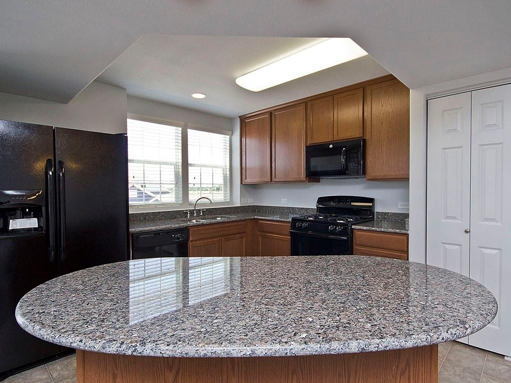 The kitchen features top-of-the-line appliances, plenty of storage space, beautiful countertops, and a center island to prepare delicious meals!