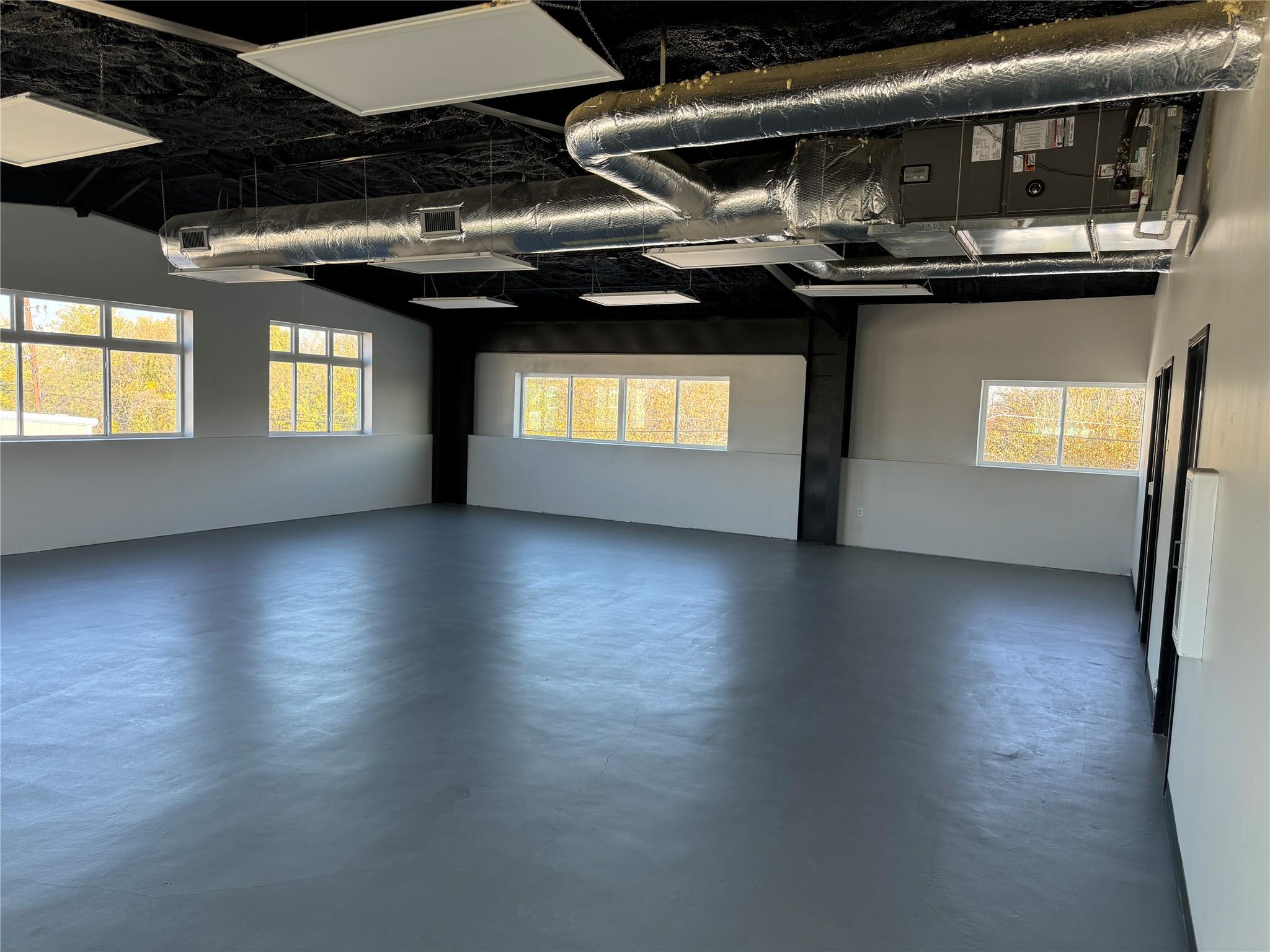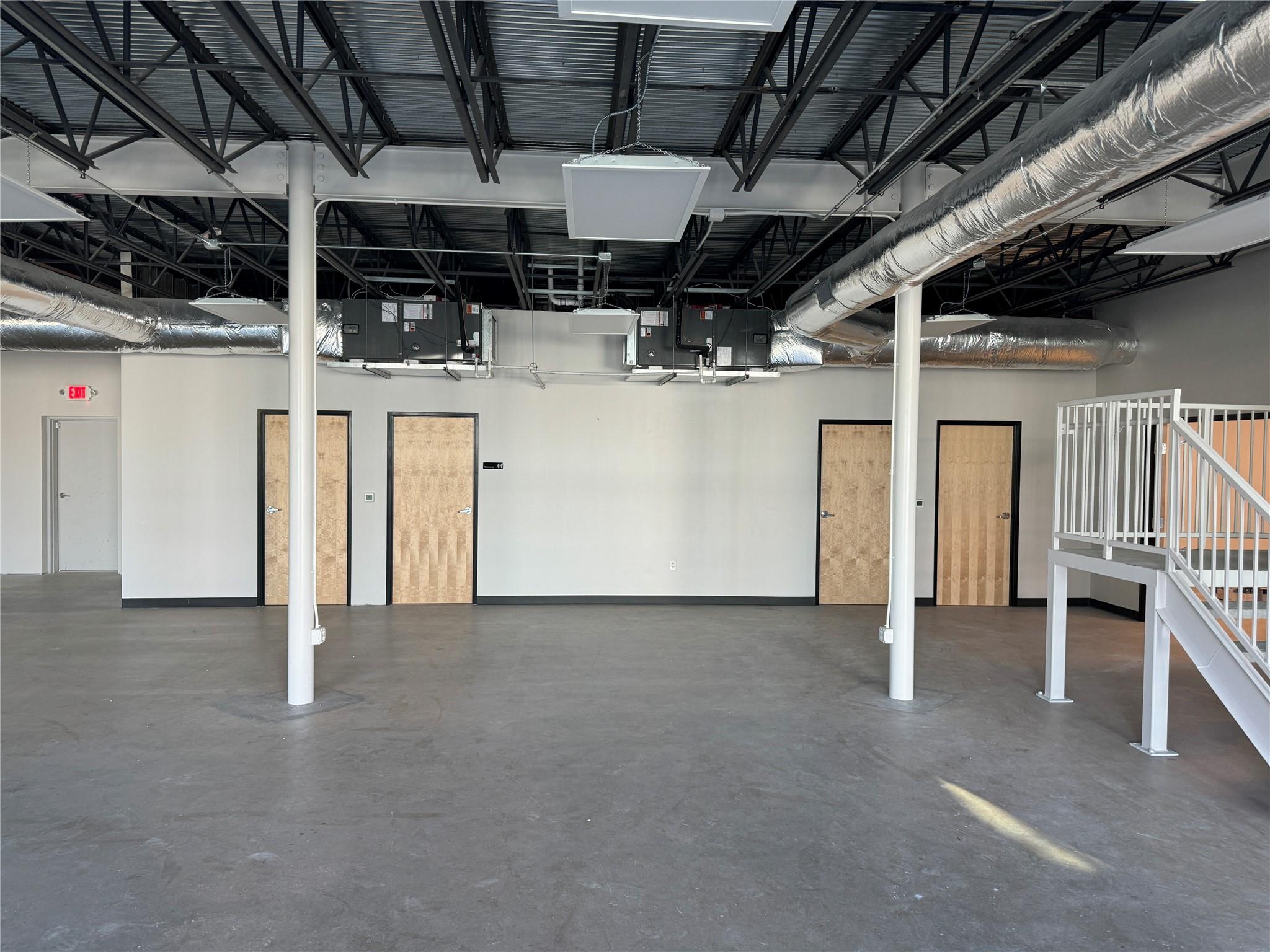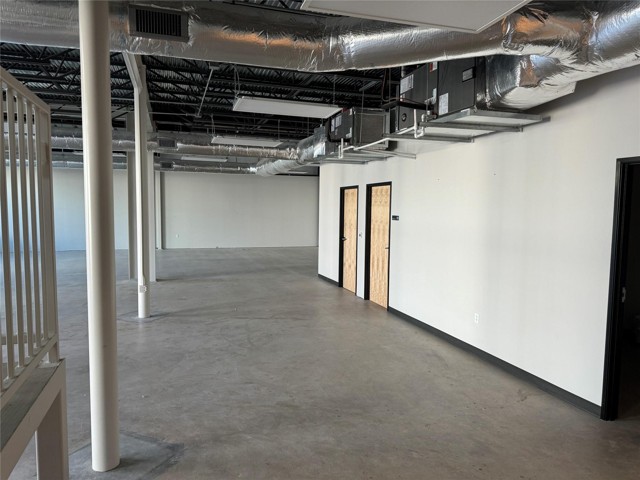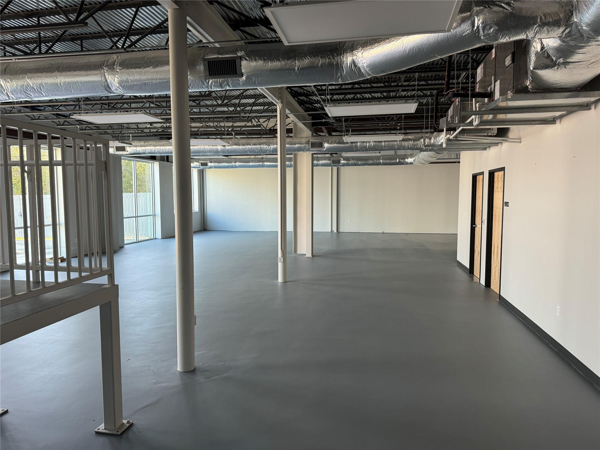 OPen and Spacious Creative industrial Flex property for lease.. Approximately 4,000 SF downstairs and 1,800 SF upstairs. The space is built to spec with HVAC, restrooms, offices and conference rooms in place. One 10X12 roll-up door. 7 parking spaces included. 3-Phase Power. Great location with easy I-35 Access too!