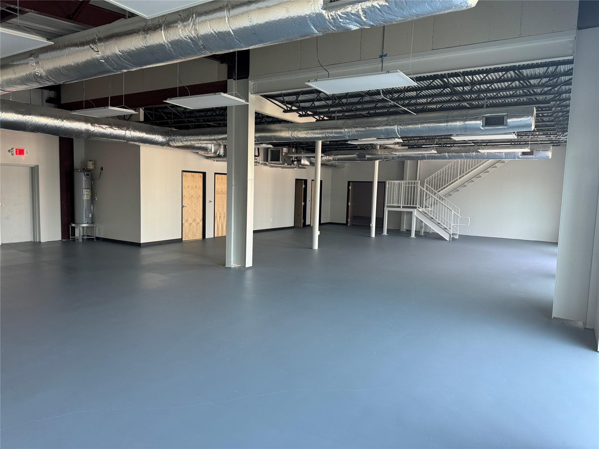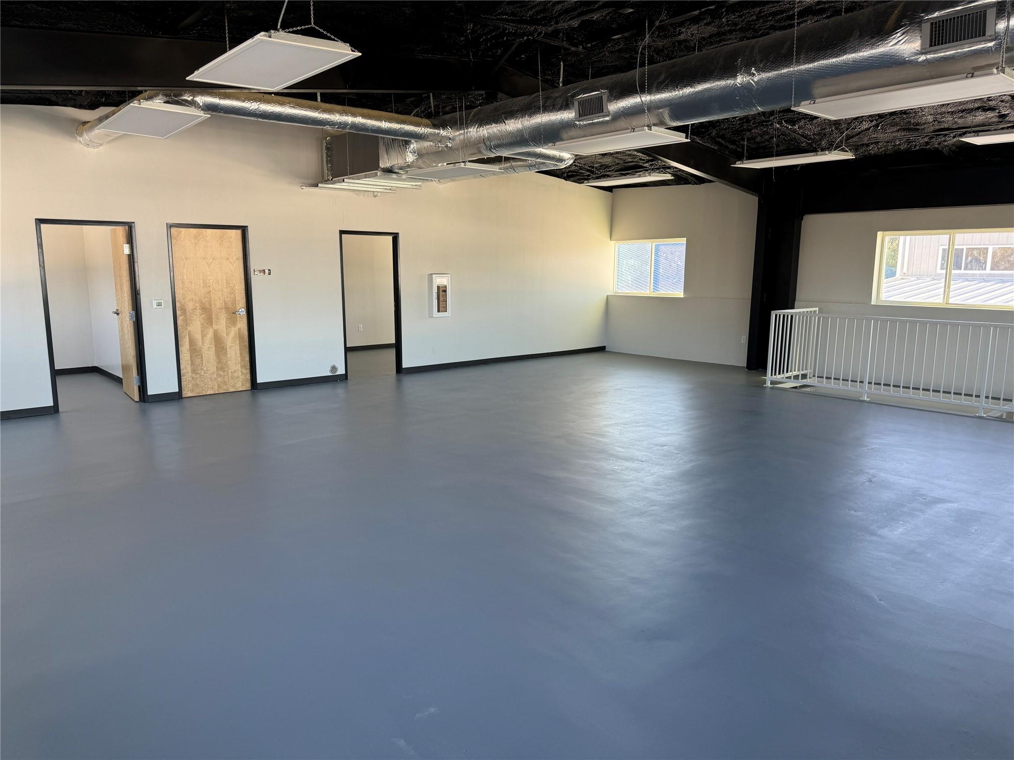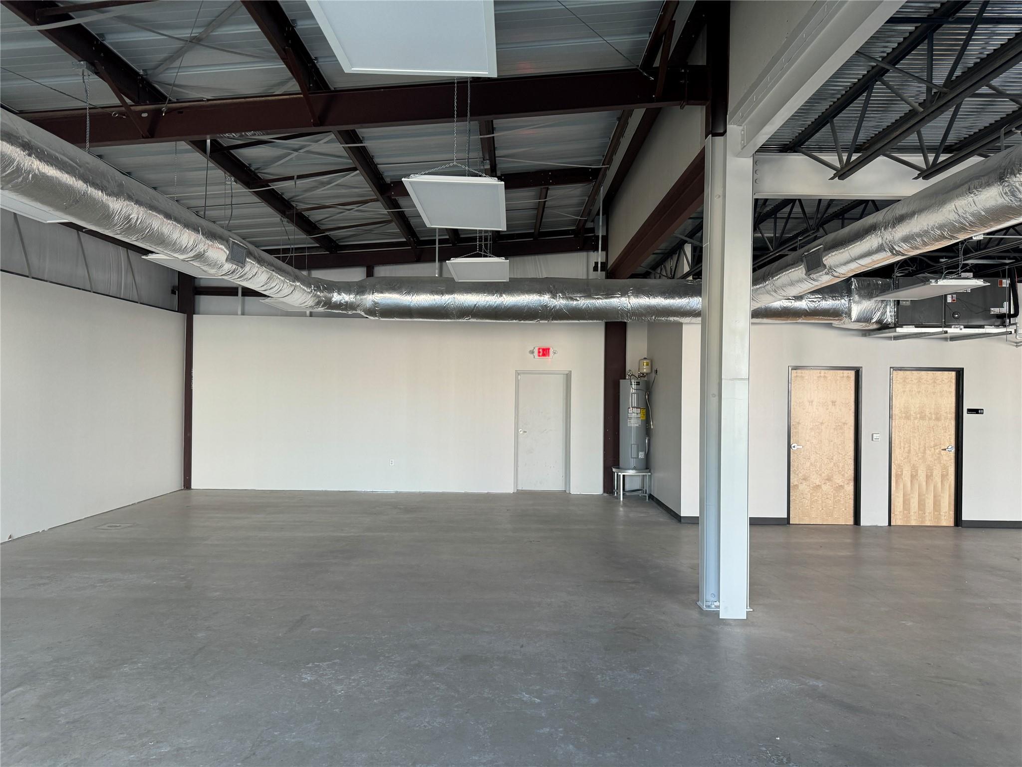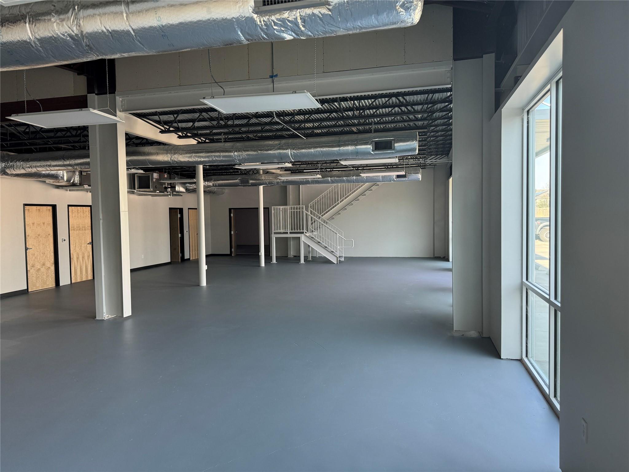 OPen and Spacious Creative industrial Flex property for lease.. Approximately 4,000 SF downstairs and 1,800 SF upstairs. The space is built to spec with HVAC, restrooms, offices and conference rooms in place. One 10X12 roll-up door. 7 parking spaces included. 3-Phase Power. Great location with easy I-35 Access too!