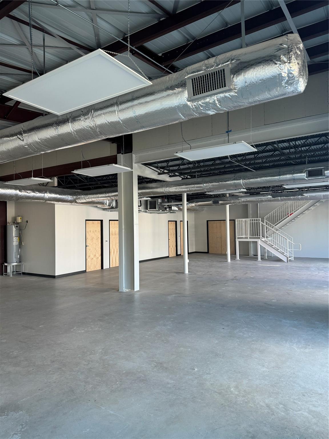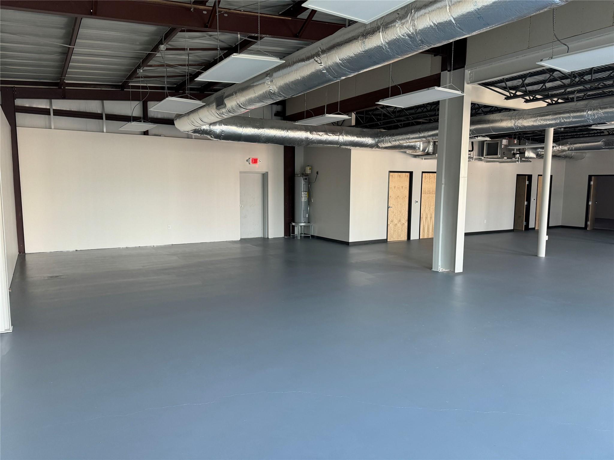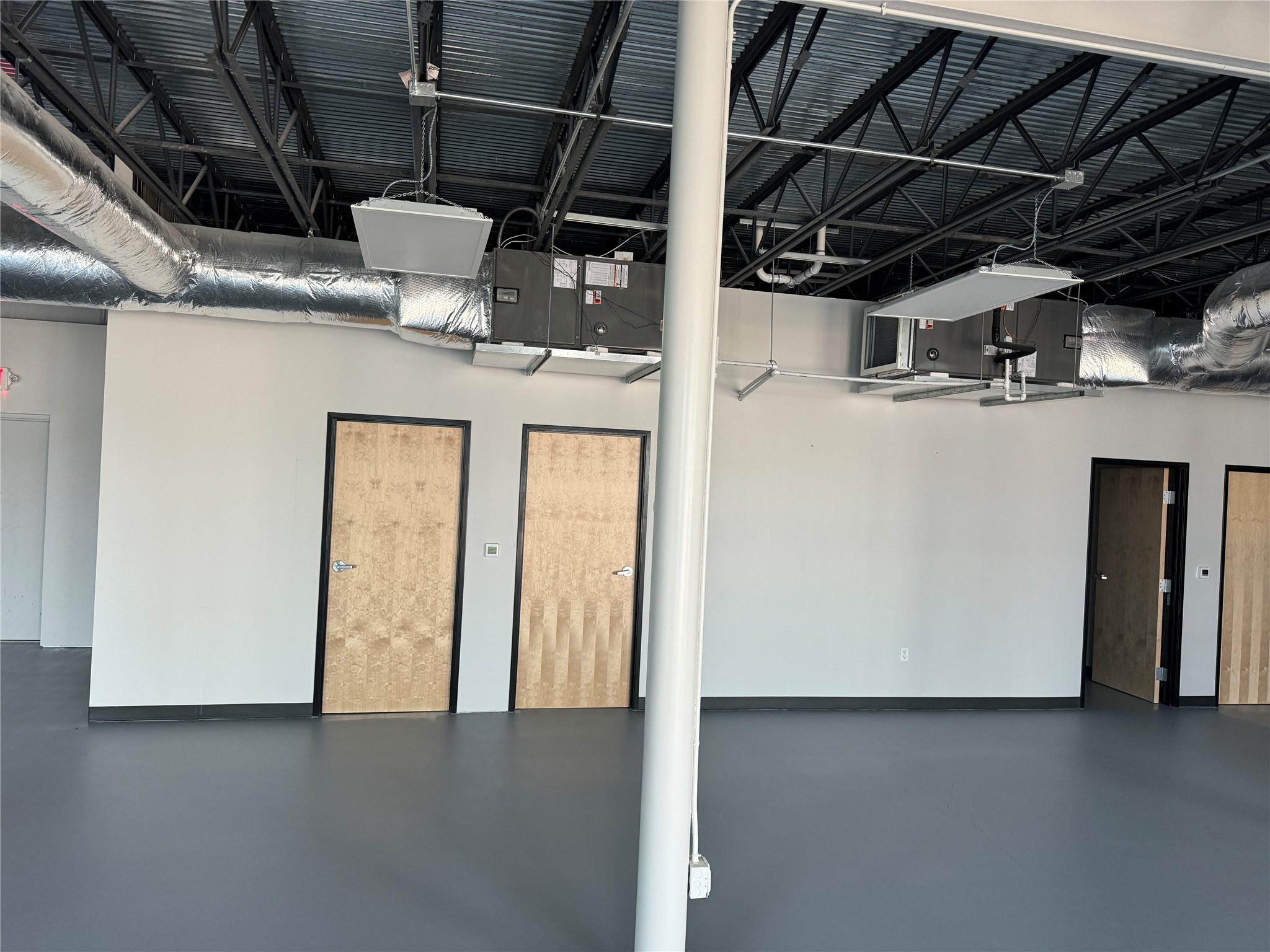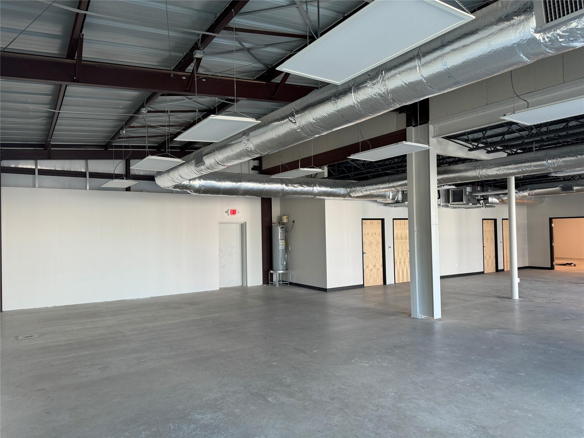 OPen and Spacious Creative industrial Flex property for lease.. Approximately 4,000 SF downstairs and 1,800 SF upstairs. The space is built to spec with HVAC, restrooms, offices and conference rooms in place. One 10X12 roll-up door. 7 parking spaces included. 3-Phase Power. Great location with easy I-35 Access too!