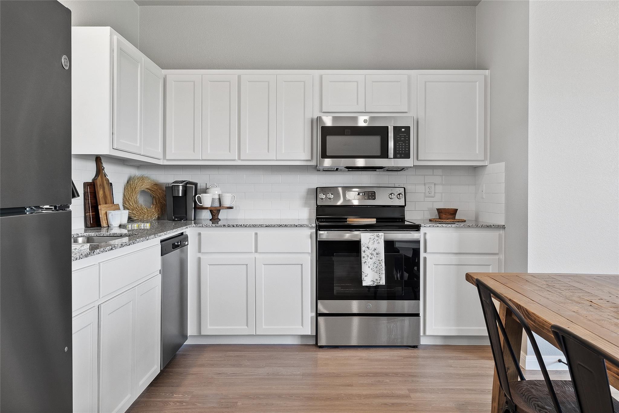 | Appliances | Dishwasher, Electric Range, Microwave, Refrigerator | |