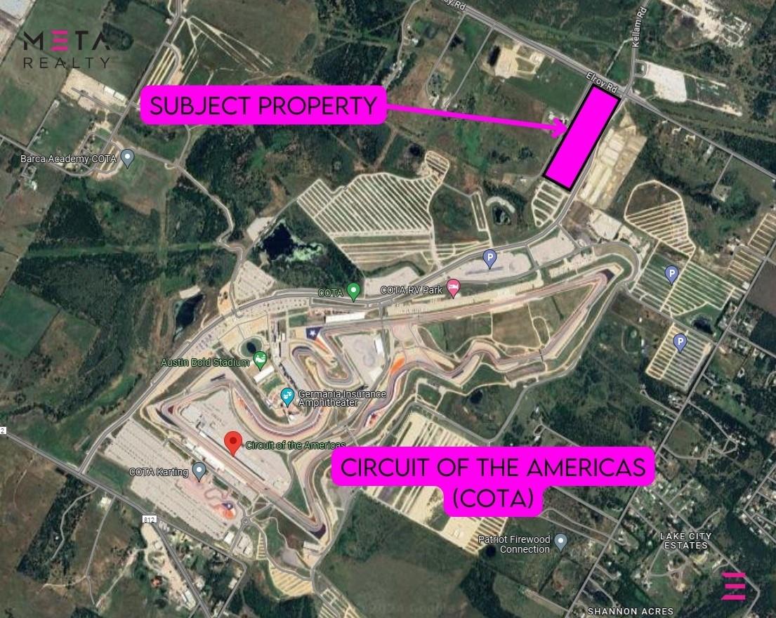 High value property for development. The only hard corner entrance adjacent to the Circuit of the Americas. Additionally, the property is located in an Opportunity Zone. Owner would like to stay up to 6 months to transition off. Highest value is development. Possibly hotel, multi family, shopping/retail, or other services complementary to the race track and its amenities and culture. Utilities are all available and ready. Buy and develop or buy and hold. No better opportunity in this area. None of this property is located in the flood plain.