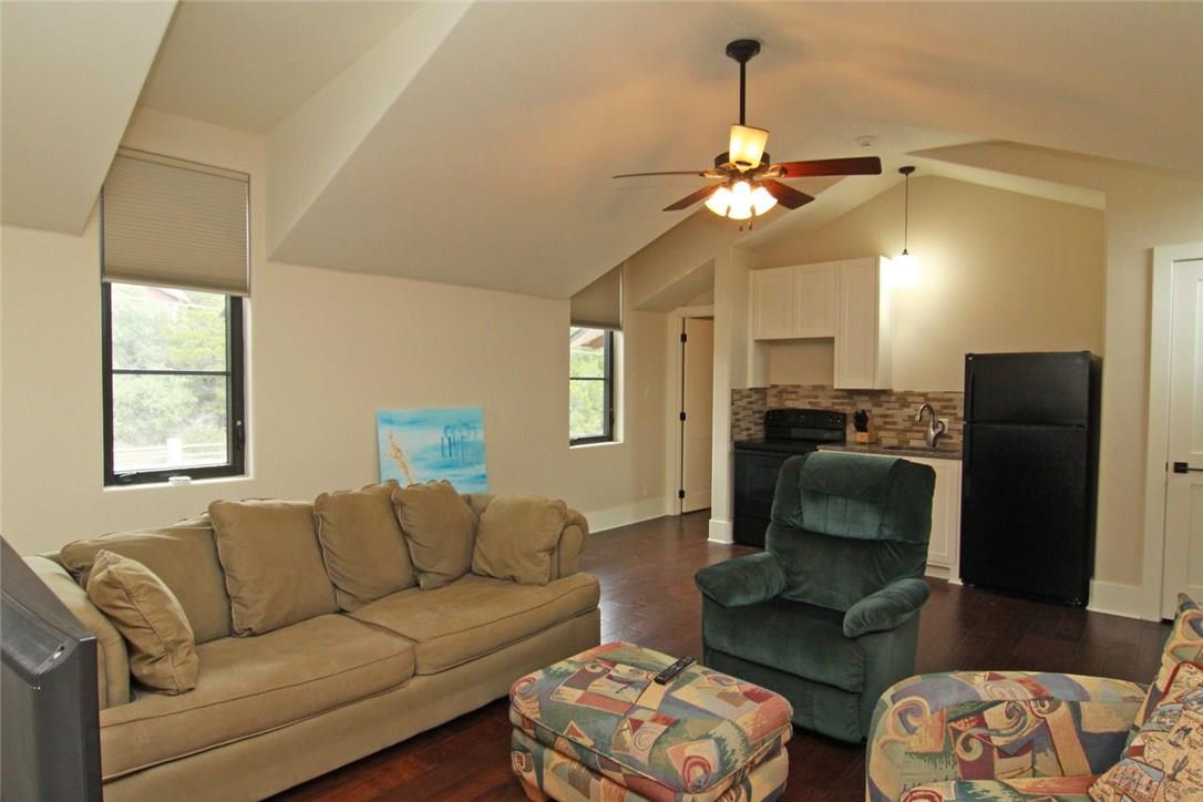 Beautiful garage apartment attached to a luxury waterfront home. Access to Lake Travis, nice living area, and a nearby park great for outdoor activities! Separate entrance, security system. Wood floors, travertine in Bath/Shower/Closet. Granite counter tops. Solar shades and remote control ceiling fans. Two parking spaces. Unlike any other in the area. Tenant to pay $200 for bills, utilities are in owners name. No pets allowed. Move-in date could be flexible. Inquire with listing agent.
