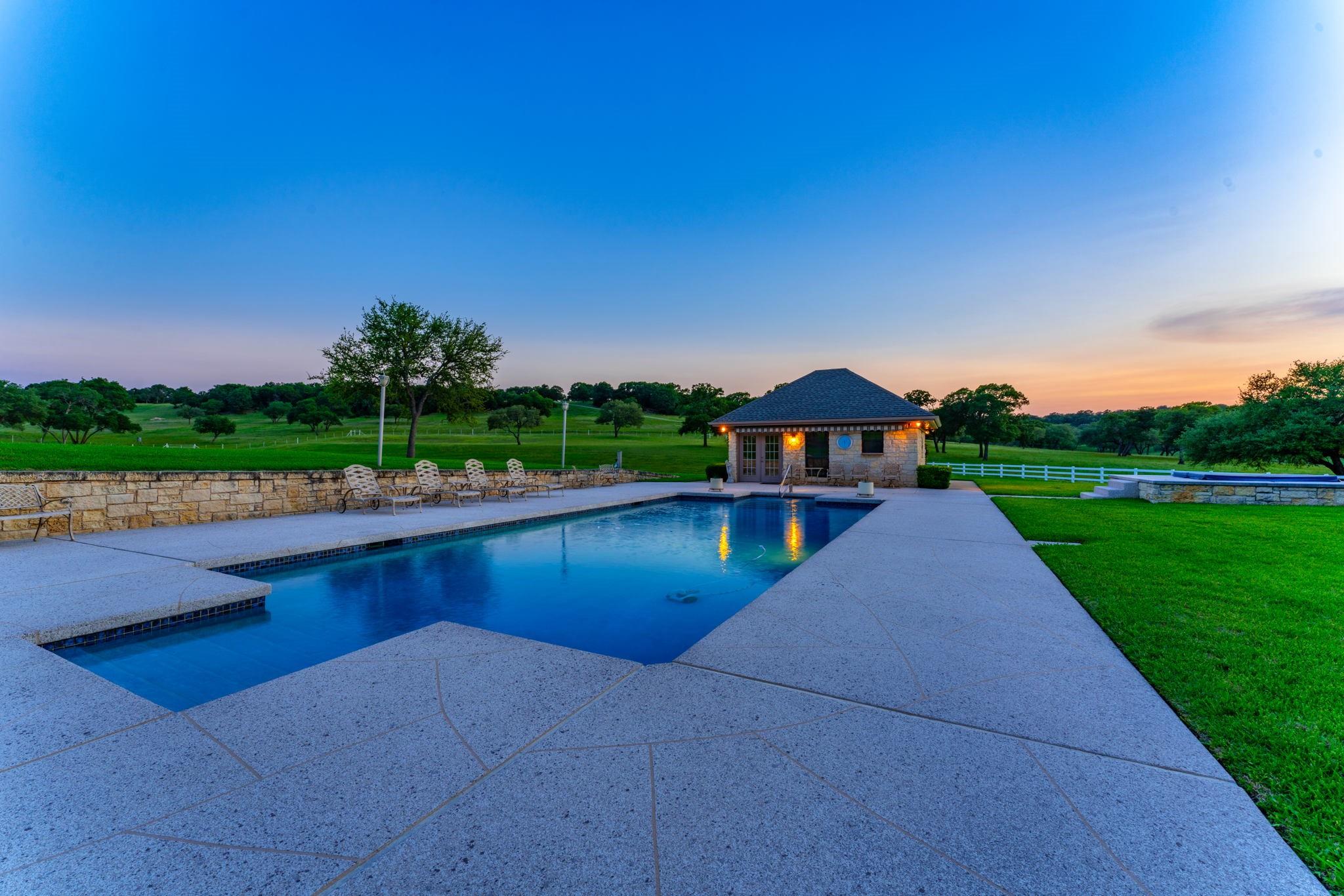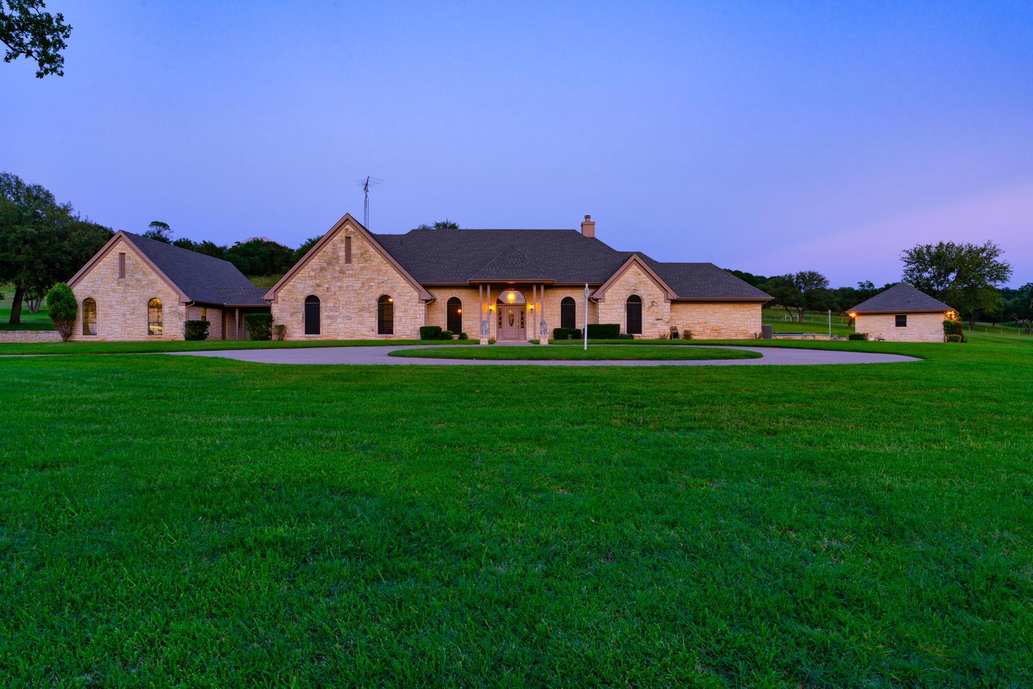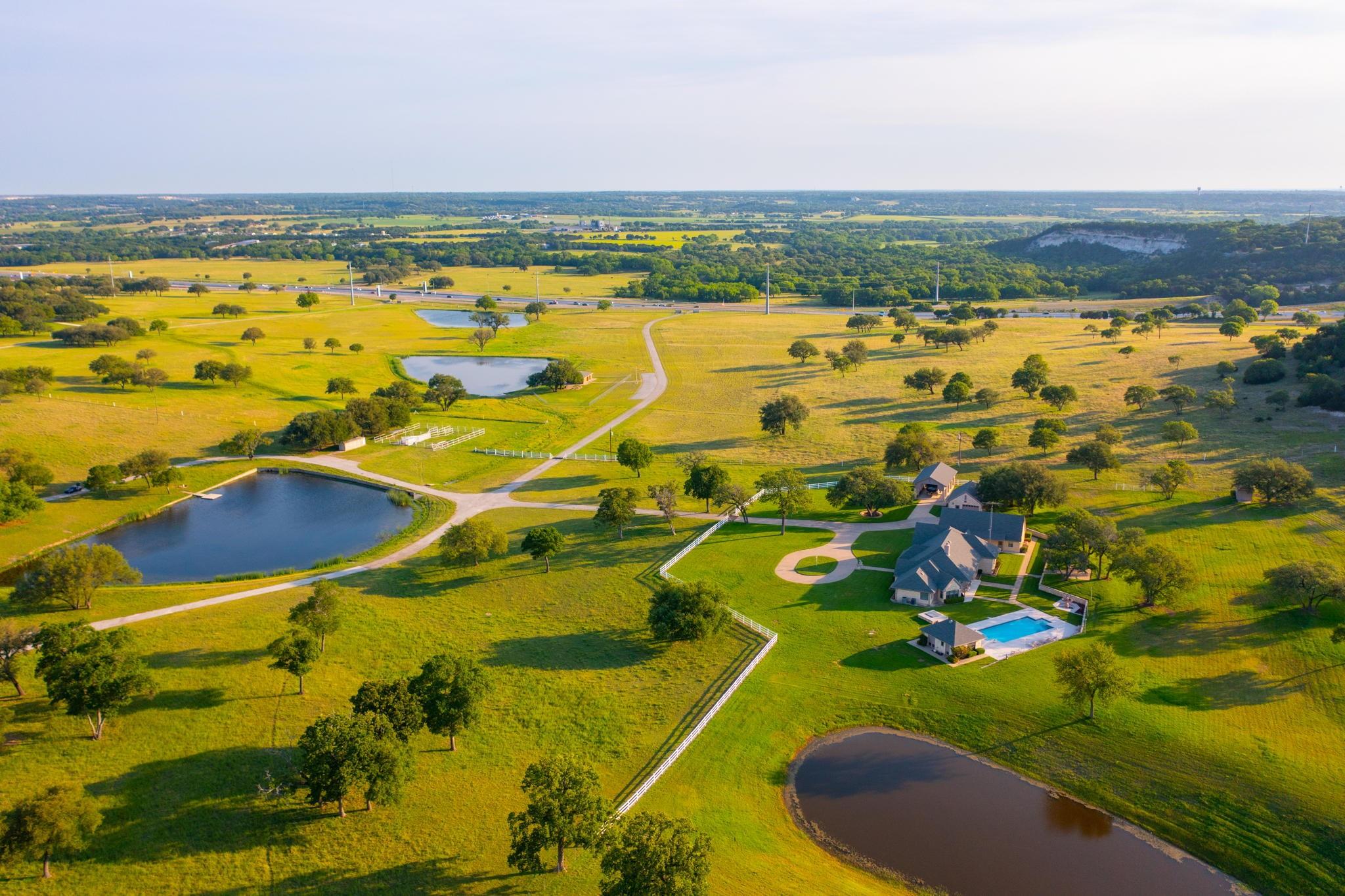 Majestic Ranch with Breathtaking Views for Miles. The High-Country Split Oak Ranch set in the Heart of Texas is 293 Acres of Pure Country Perfection that promises to sweep you off your feet from the moment you enter the front gate. Between the Serene Setting, the Incredible Old Oaks scattered throughout the Meticulously Cleared Land, the Beautiful Varieties of Wildlife, and the Unbelievable Views for Miles, this Longtime Family Estate wins your heart before even exploring up the paved roads. Spread over the acreage you will find Two Beautifully Built Custom Homes, a Waterside Party Pavilion, a RV Carport & Storage, Multiple Garages and an Industrial Workshop plus amazing amenities-a Fabulous Pool made especially for Volleyball and Pool House with a commercial griddle for that perfect burger poolside, Guest Quarters with a Walk-In Sauna, a Thoughtfully Constructed Dog Run for your fur babies, and a Garage/Workshop just to name a few. An Amazing Gravity Fed Underground Valve Controlled Chain of Livestock Tanks helps paint the perfect Ranch Setting. A Livestock Pen, a Hidden Water Spring, and an “Old West” Stagecoach Trail bordering the property are just a few of the bonuses you will find out on your adventures. With Endless Possibilities, The High-Country Split Oak Ranch is the closest to Texas Paradise as you will ever find.