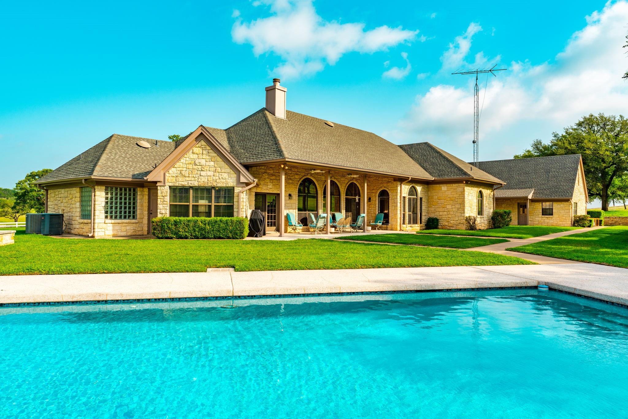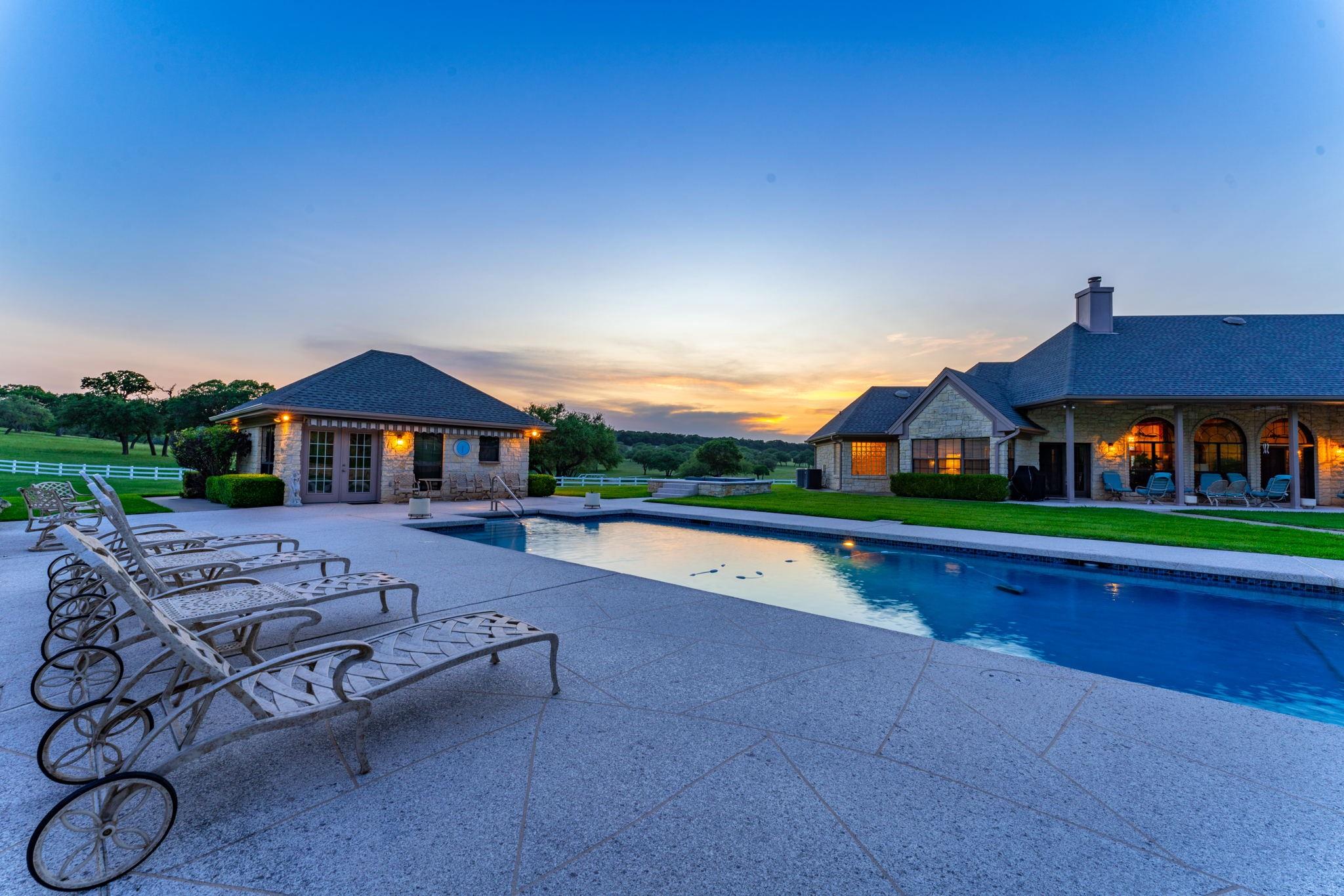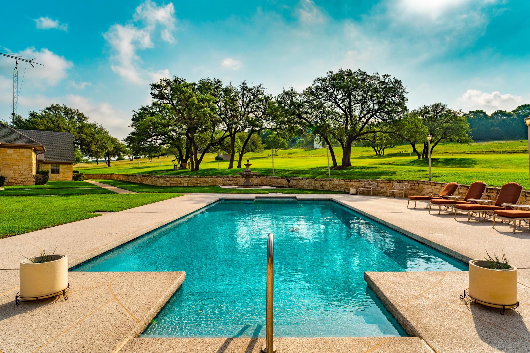 Majestic Ranch with Breathtaking Views for Miles. The High-Country Split Oak Ranch set in the Heart of Texas is 293 Acres of Pure Country Perfection that promises to sweep you off your feet from the moment you enter the front gate. Between the Serene Setting, the Incredible Old Oaks scattered throughout the Meticulously Cleared Land, the Beautiful Varieties of Wildlife, and the Unbelievable Views for Miles, this Longtime Family Estate wins your heart before even exploring up the paved roads. Spread over the acreage you will find Two Beautifully Built Custom Homes, a Waterside Party Pavilion, a RV Carport & Storage, Multiple Garages and an Industrial Workshop plus amazing amenities-a Fabulous Pool made especially for Volleyball and Pool House with a commercial griddle for that perfect burger poolside, Guest Quarters with a Walk-In Sauna, a Thoughtfully Constructed Dog Run for your fur babies, and a Garage/Workshop just to name a few. An Amazing Gravity Fed Underground Valve Controlled Chain of Livestock Tanks helps paint the perfect Ranch Setting. A Livestock Pen, a Hidden Water Spring, and an “Old West” Stagecoach Trail bordering the property are just a few of the bonuses you will find out on your adventures. With Endless Possibilities, The High-Country Split Oak Ranch is the closest to Texas Paradise as you will ever find.