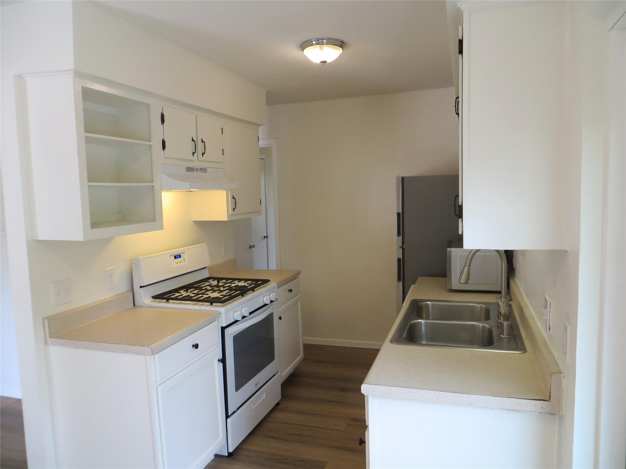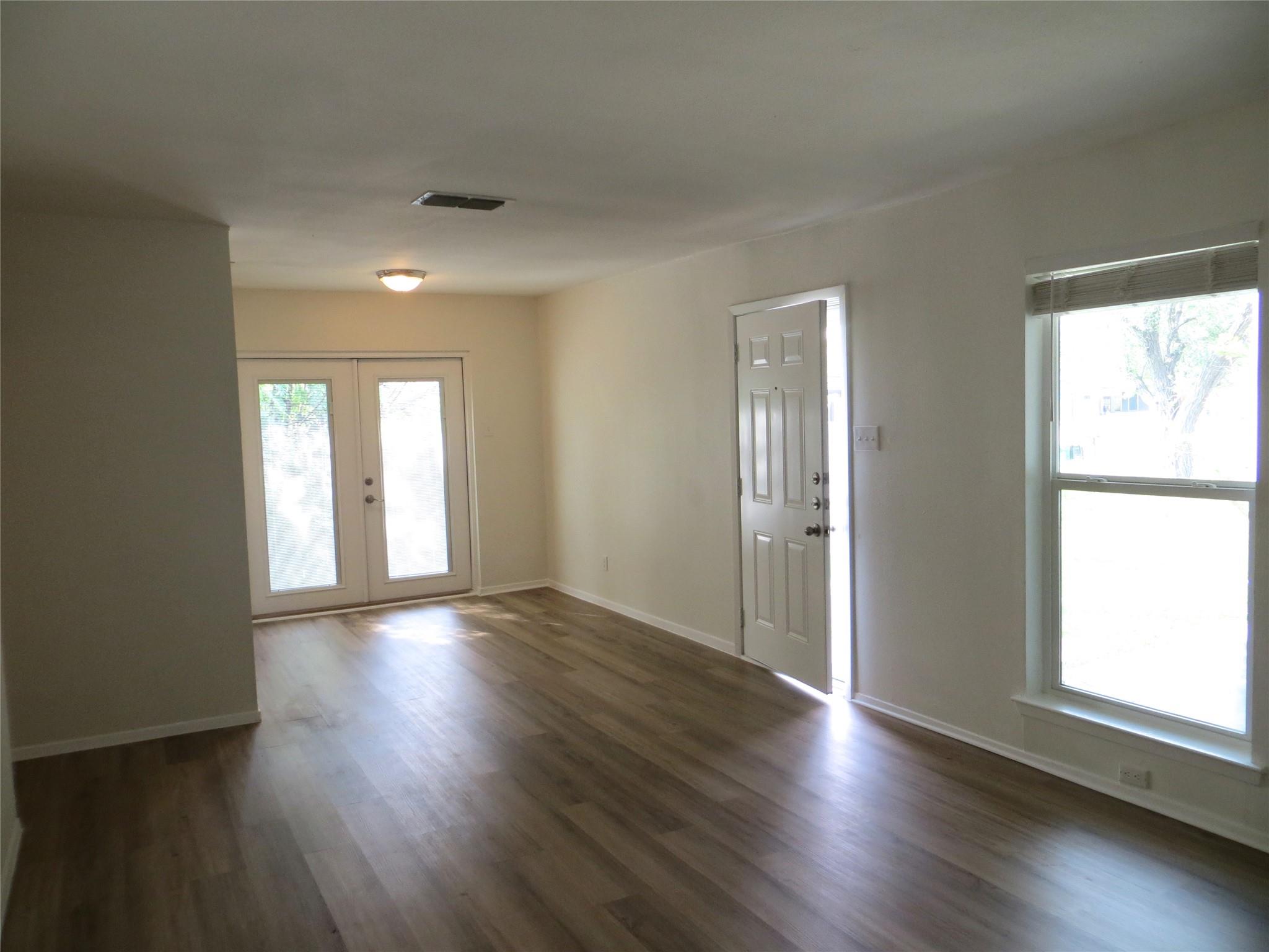 Two bedrooms, one bathroom, minutes from The Domain and the new Q2 Stadium! Recent updates include popcorn removal, interior paint, luxury vinyl flooring throughout, gas range, vent hood. Refrigerator in unit, Washer & Dryer hookups inside the unit.