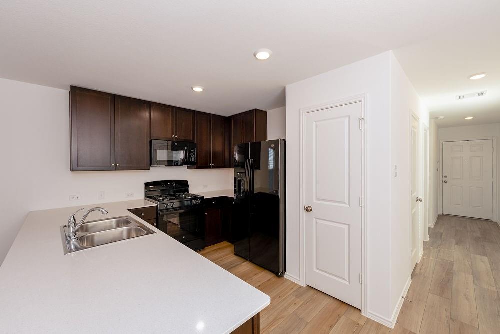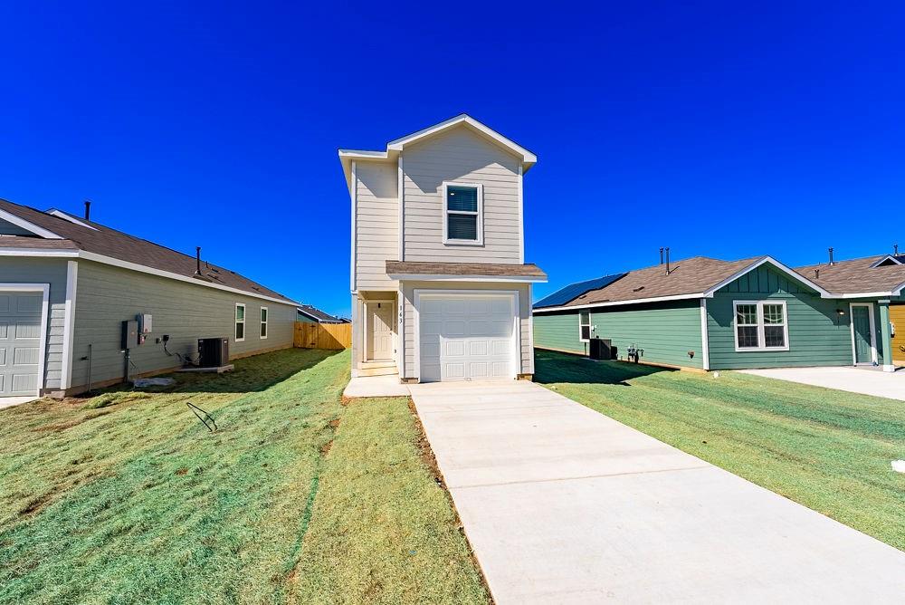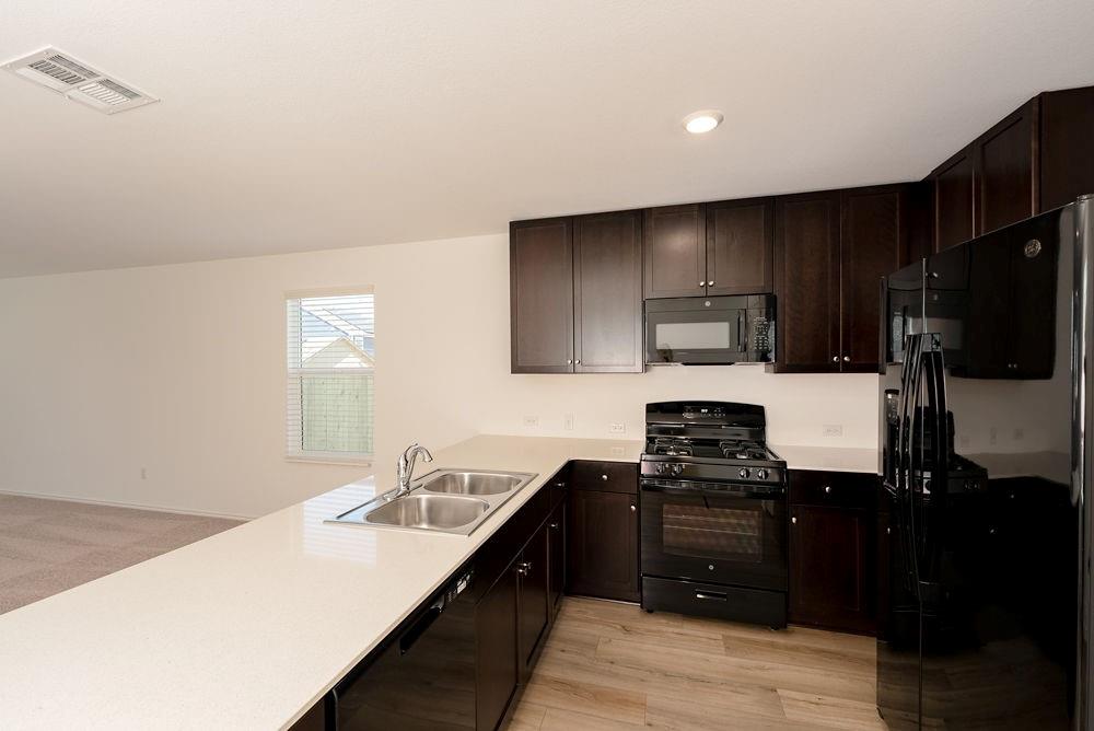 Step into luxury with this exquisite 4-bedroom, 2.5-bathroom haven nestled in the sought-after city of San Marcos, TX. Upon entering, be captivated by soaring ceilings and an expansive open floorplan that effortlessly creates an inviting and spacious environment. The kitchen is a culinary dream, featuring a stylish breakfast bar, ideal for both casual dining and entertaining your guests in style. Discover ample storage solutions in the well-appointed pantry, ensuring your kitchen stays organized and clutter-free.