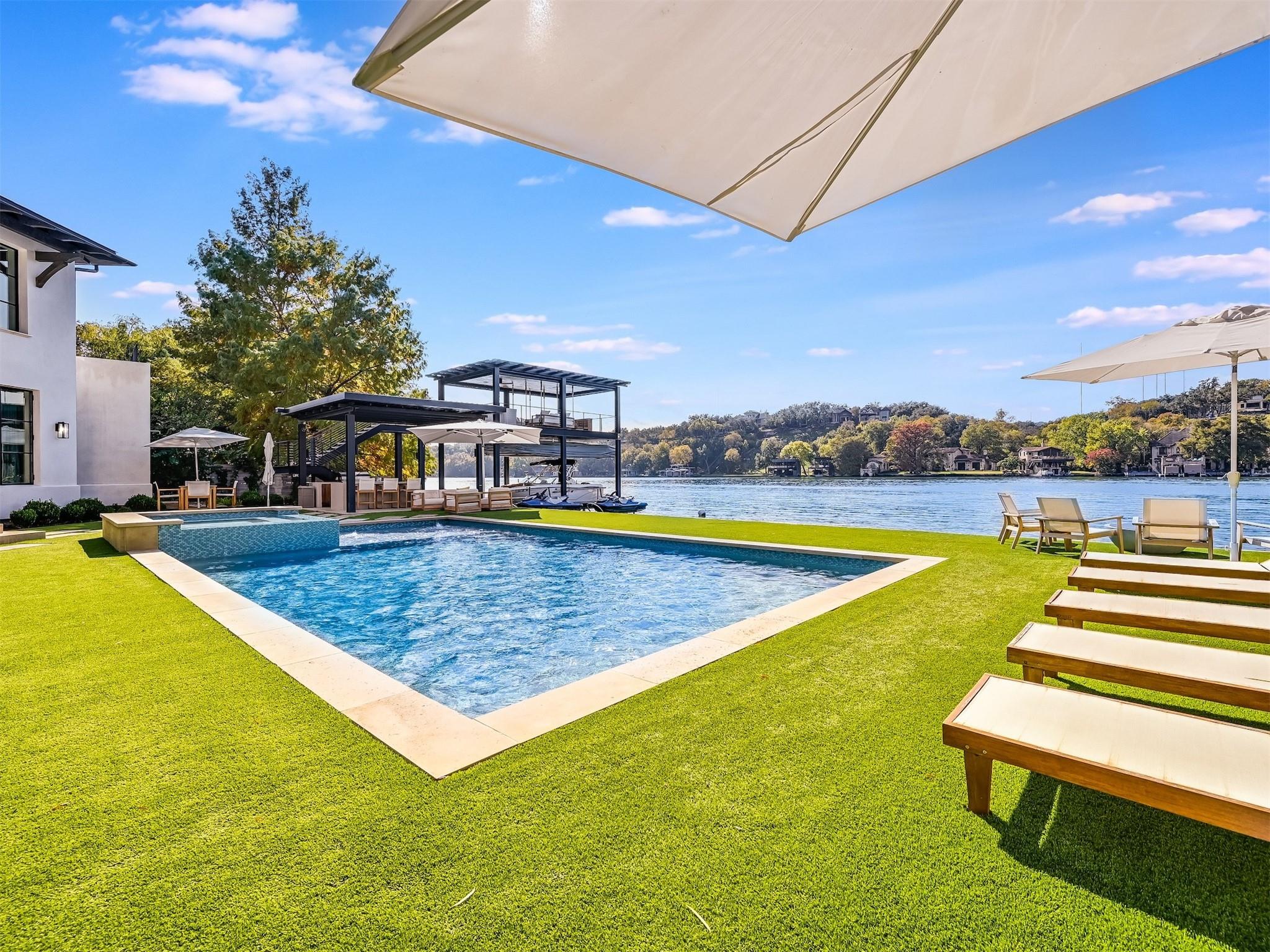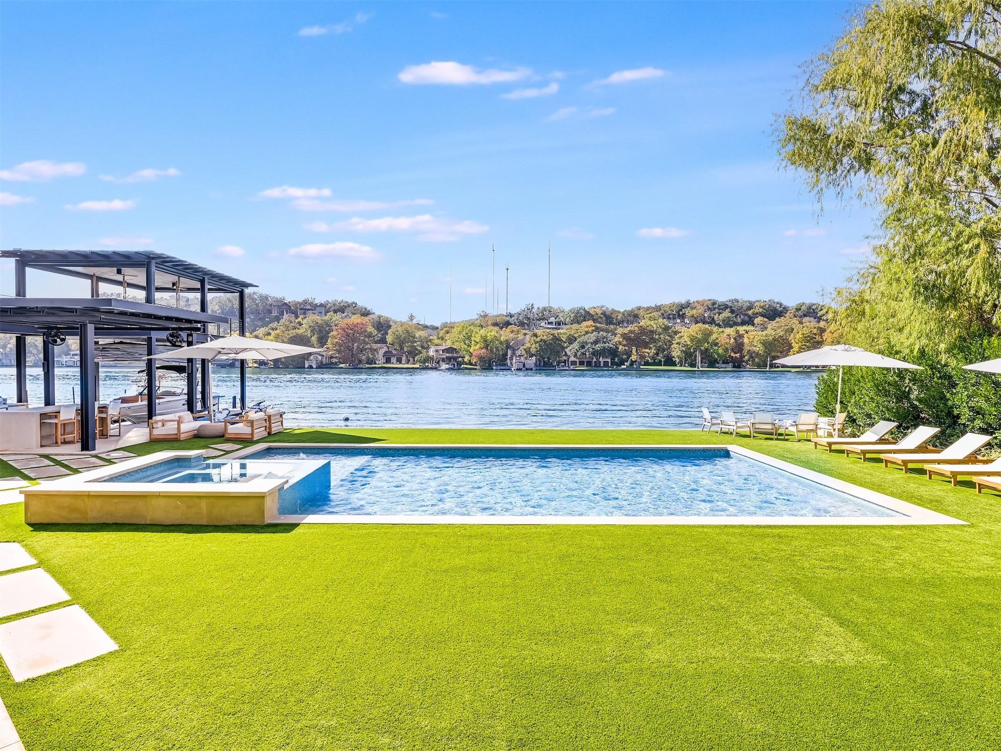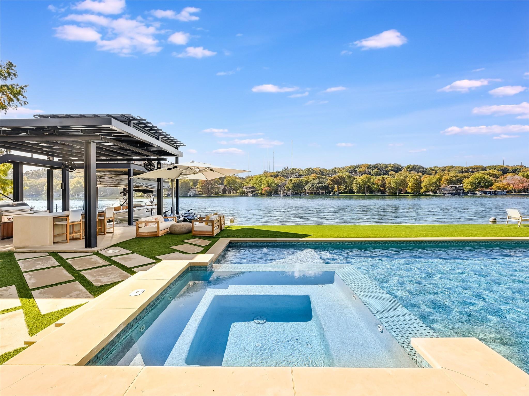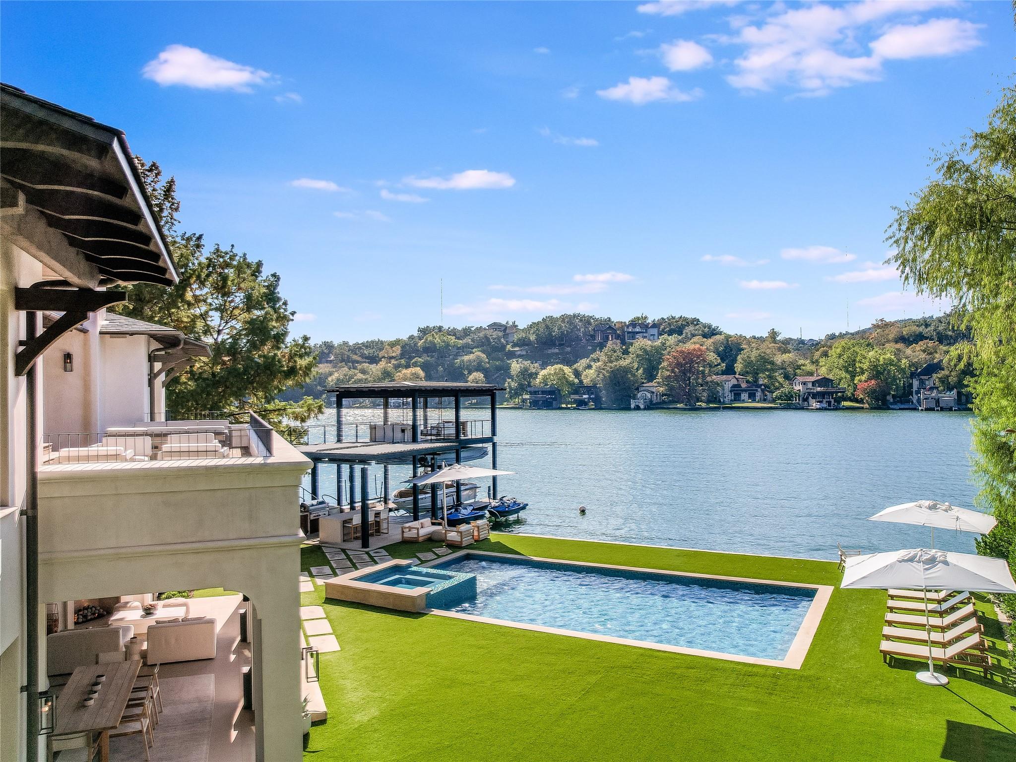 Welcome to 4904 Tortuga Place, a standout example of contemporary living nestled along the peaceful shores of Lake Austin. Crafted by Shiflet Group Architects and alongside the skilled craftsmanship of Risinger Homes, this home sets the bar for modern elegance and lakeside comfort. Imagine waking up to stunning panoramic views of Lake Austin, swimming laps in your lakeside pool or stepping out onto your personal two-story boat dock to relax on the upper lounge deck. Enjoy grilling at the lakeside summer kitchen or lounging poolside while listening to the lapping waves against the 115' of prime shoreline. This is a true Lake Austin retreat at its finest This gated estate includes a guard house to ensure you and your loved ones can enjoy your peace and quiet undisturbed. It’s a home that’s built for having people over or just enjoying your own company, with six bedrooms, over six bathrooms, multiple dining and living areas, and an elevator to easily move between floors. The owner's suite is a retreat within a retreat, offering serene lake views and a spa-like bathroom with a temperature-controlled plunge pool, steam shower, and a luxurious soaking tub, two spacious walk-in closets and more. Outside, the estate doesn’t disappoint. There’s a putting green for golfers, resort style swimming pool and plenty of lounging areas overlooking the lake, and shaded terraces perfect for relaxing or entertaining. All this sits on a generous lot with over 115 feet of waterfront, at the end of a quiet cul-de-sac. Plus, living here means easy access to the water and the city, thanks to its prime location. With modern touches like a whole-house generator and smart home system, this property is ready for someone who appreciates the finer aspects of Austin’s lakeside lifestyle but wants a place that feels more like home. Come see why 4904 Tortuga Place could be your next adventure in living.