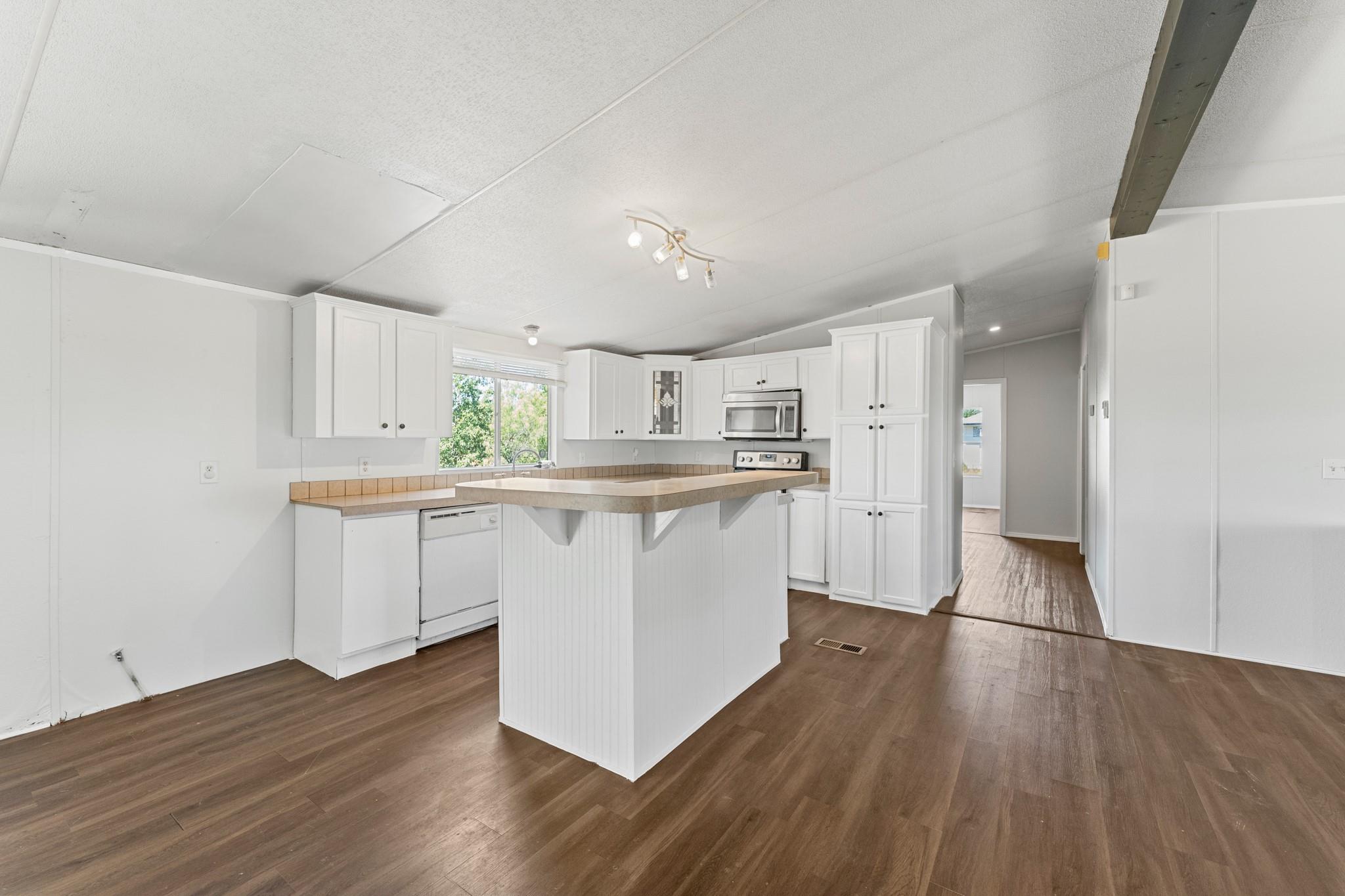 Discover the allure of this 4-bedroom, 3-bathroom, 2,128 sq ft manufactured home in Kyle, TX, set on a spacious 1.2-acre lot. Newly remodeled, the open layout seamlessly connects living, dining, and kitchen areas. The primary suite offers an updated en-suite bathroom. Sold AS IS, this property presents a unique canvas for customization. Enjoy both country tranquility and easy access to the city. Embrace the opportunity to own this charming home in a thriving community.