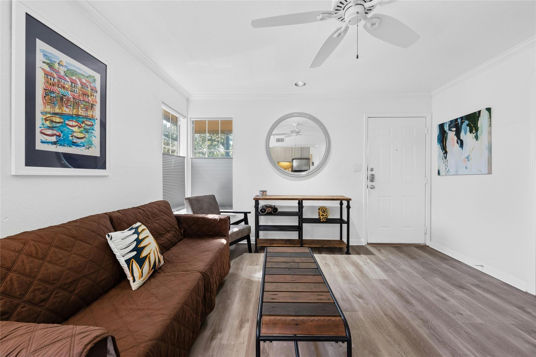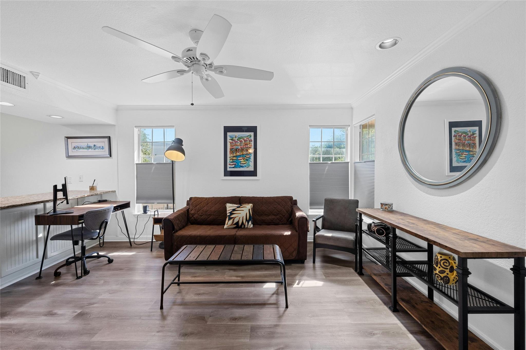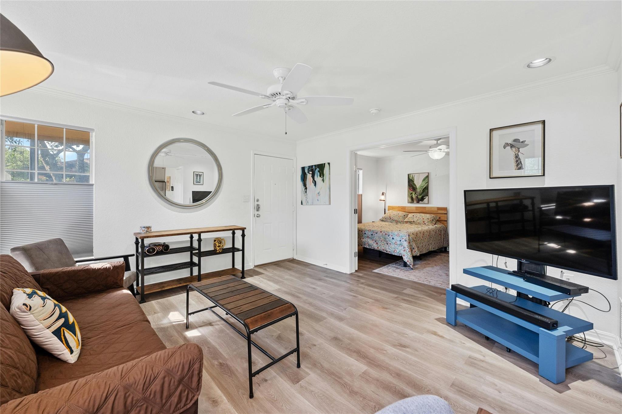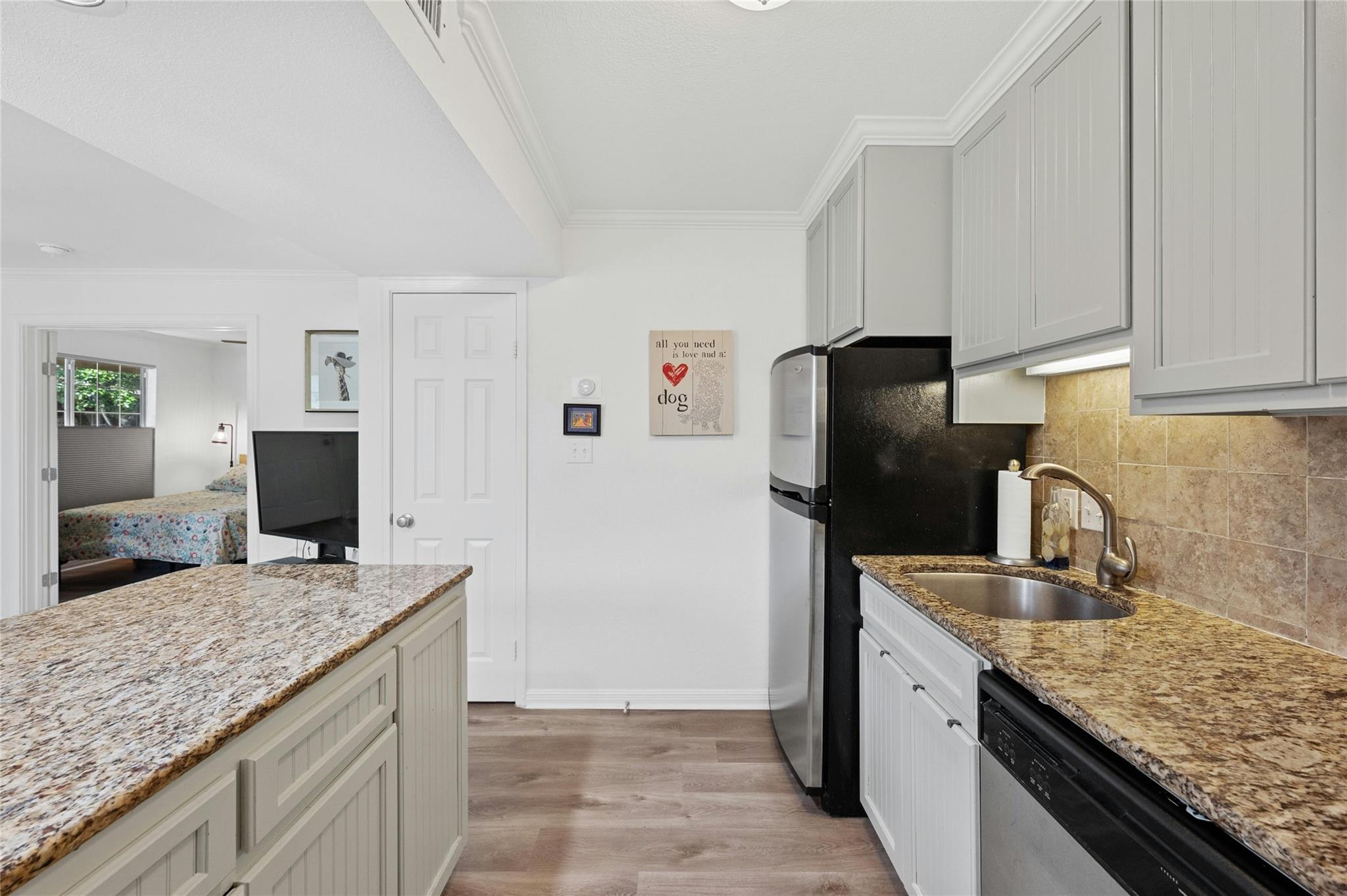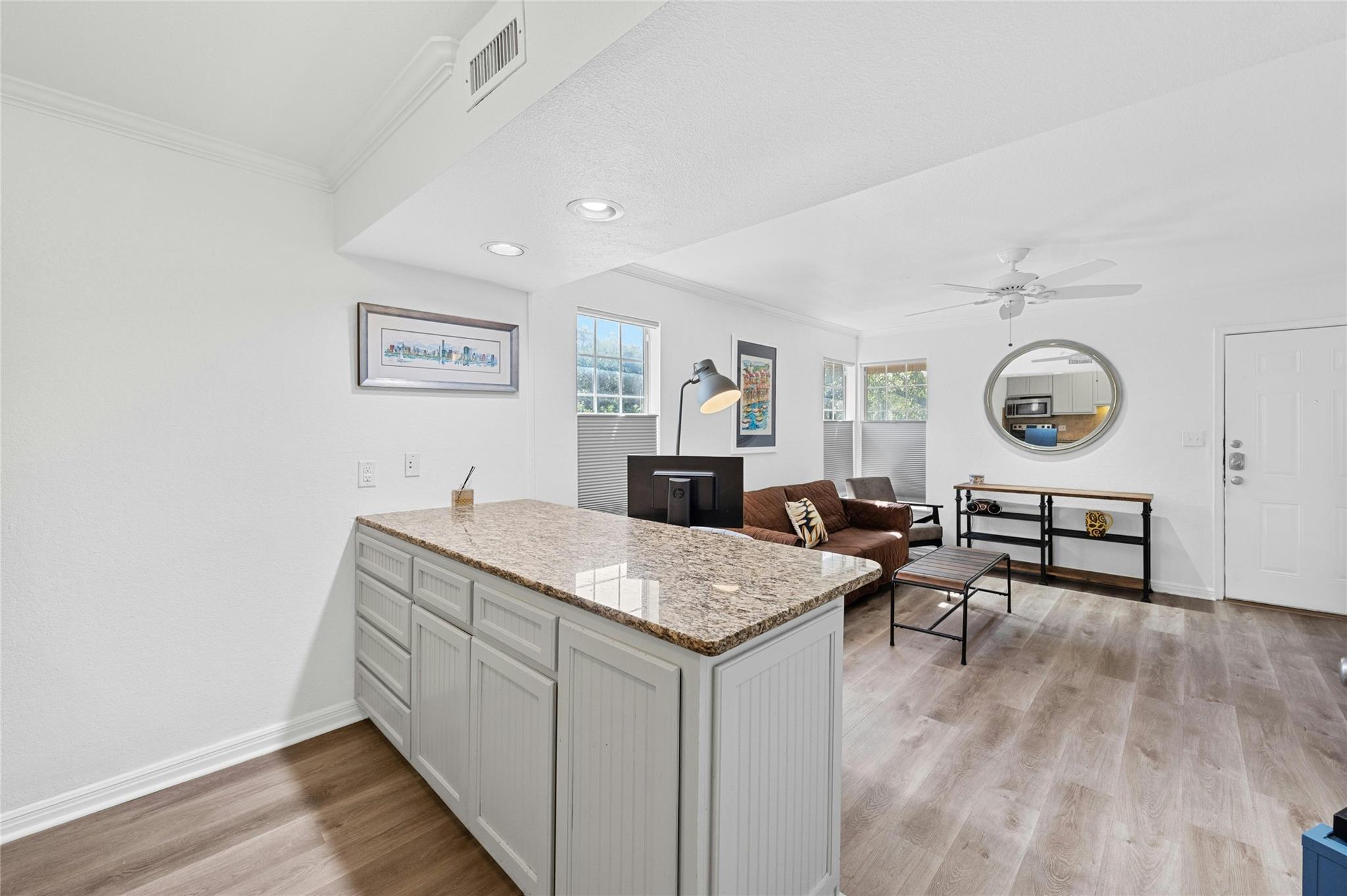 Welcome to your cozy sanctuary nestled in the heart of the city! This charming 1 bedroom, 1 bath condo offers 650 square feet of living space on the serene 2nd story corner unit. As you step inside, prepare to be greeted by an abundance of natural light that illuminates the inviting wood floors throughout the open floorplan. The galley kitchen boasts modern stainless steel appliances, complemented by elegant granite countertops, making it a chef's delight. With exclusive attic storage to 2nd story units, you'll find ample space to stow away belongings, keeping your living areas clutter-free. Step out onto the covered patio, where you can unwind and enjoy the tranquility of the surroundings, enhanced by the shade provided by a graceful tree. This outdoor oasis is perfect for morning coffee or evening relaxation. With its thoughtfully designed layout and attention to detail, this condo offers a perfect blend of comfort and style. Additional benefits include water, internet, and cable included in rent and an amenity center with fitness equipment, meeting space, communal garden and a tropical pool area. Walkable to nearby restaurants, shops, and grocery stores. Don't miss out on the opportunity to make this your new home sweet home!