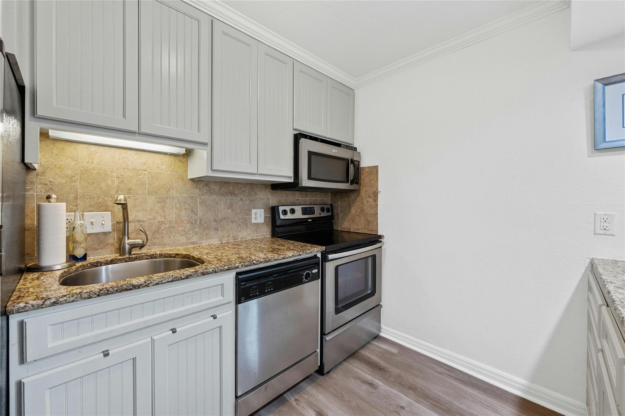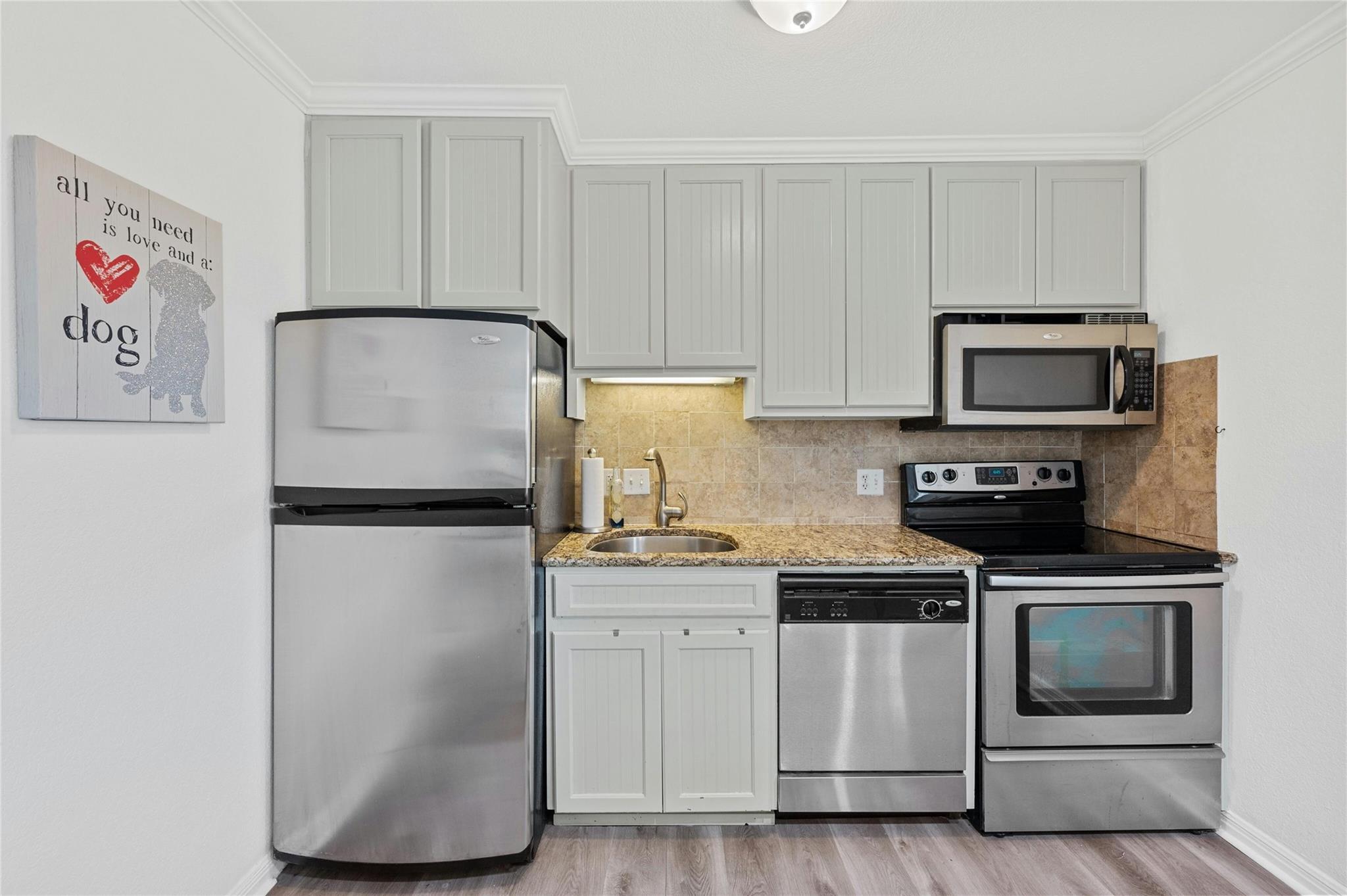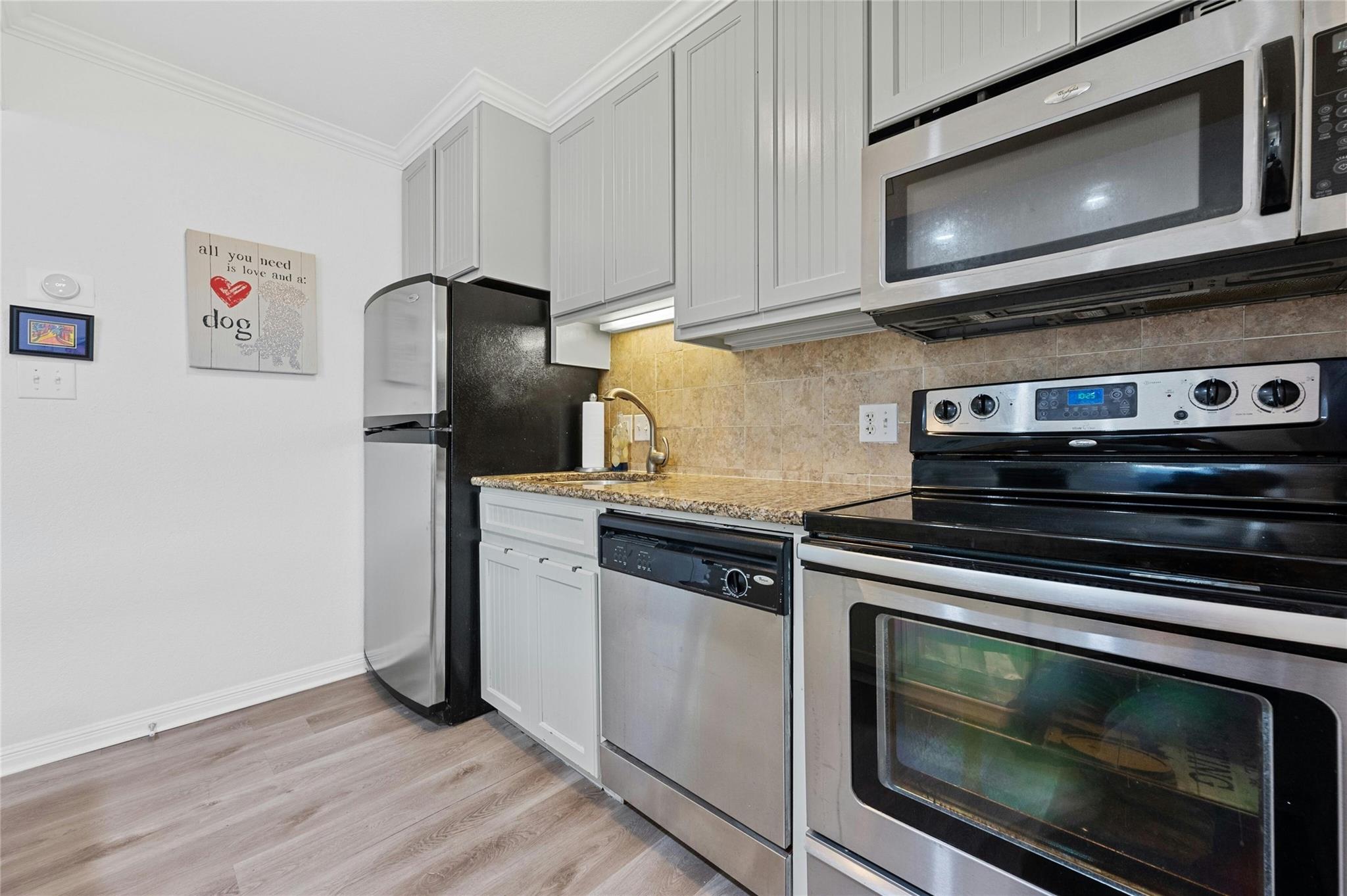 | Appliances | Dishwasher, Disposal, Electric Range, Microwave, Electric Oven, Refrigerator, Stainless Steel Appliance(s), Washer/Dryer Stacked | |