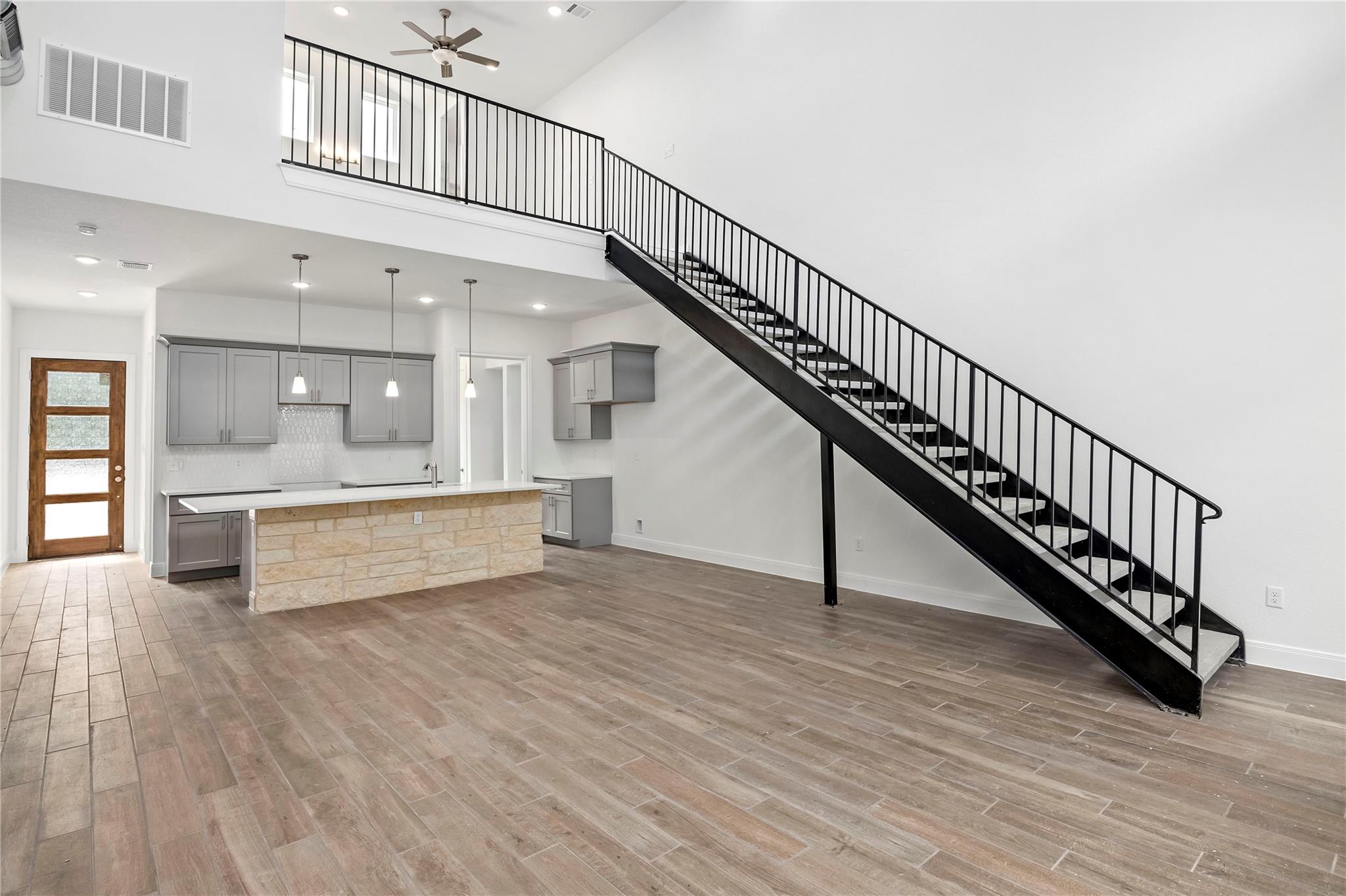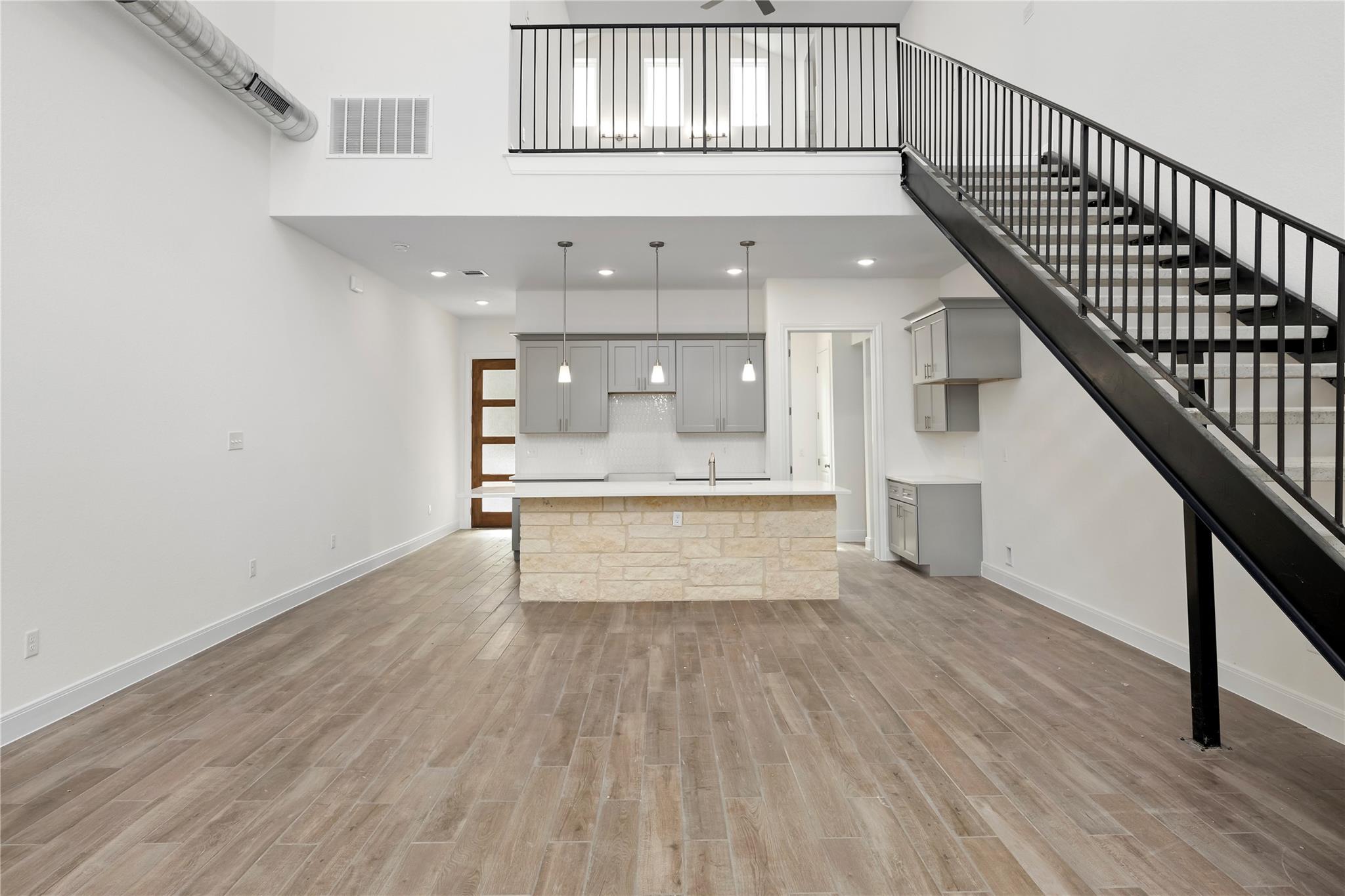 NEW TRIPLEX CONSTRUCTION. FRESHLY PAINTED, NEW CONSTRUCTION. 1BD/1.5 BTH TOWNHOME UNIT. 21 FT HUGE LIVING/ OPEN CEILING. OPEN KITCHEN FLOORPLAN TO LIV COMBO. 8FT KITCHEN ISLAND, SS APPLIANCES, RANGE W/MICRO. POWDER ROOM INCLUDED. MASTER BTH DOUBLE VANITY. HUGE MASTER WALK-IN CLOSET W/SHELVES. WALK-IN SHOWER. METAL INDUSTRIAL STAIRWAY. HUGE 18TH COVERED PATIO.