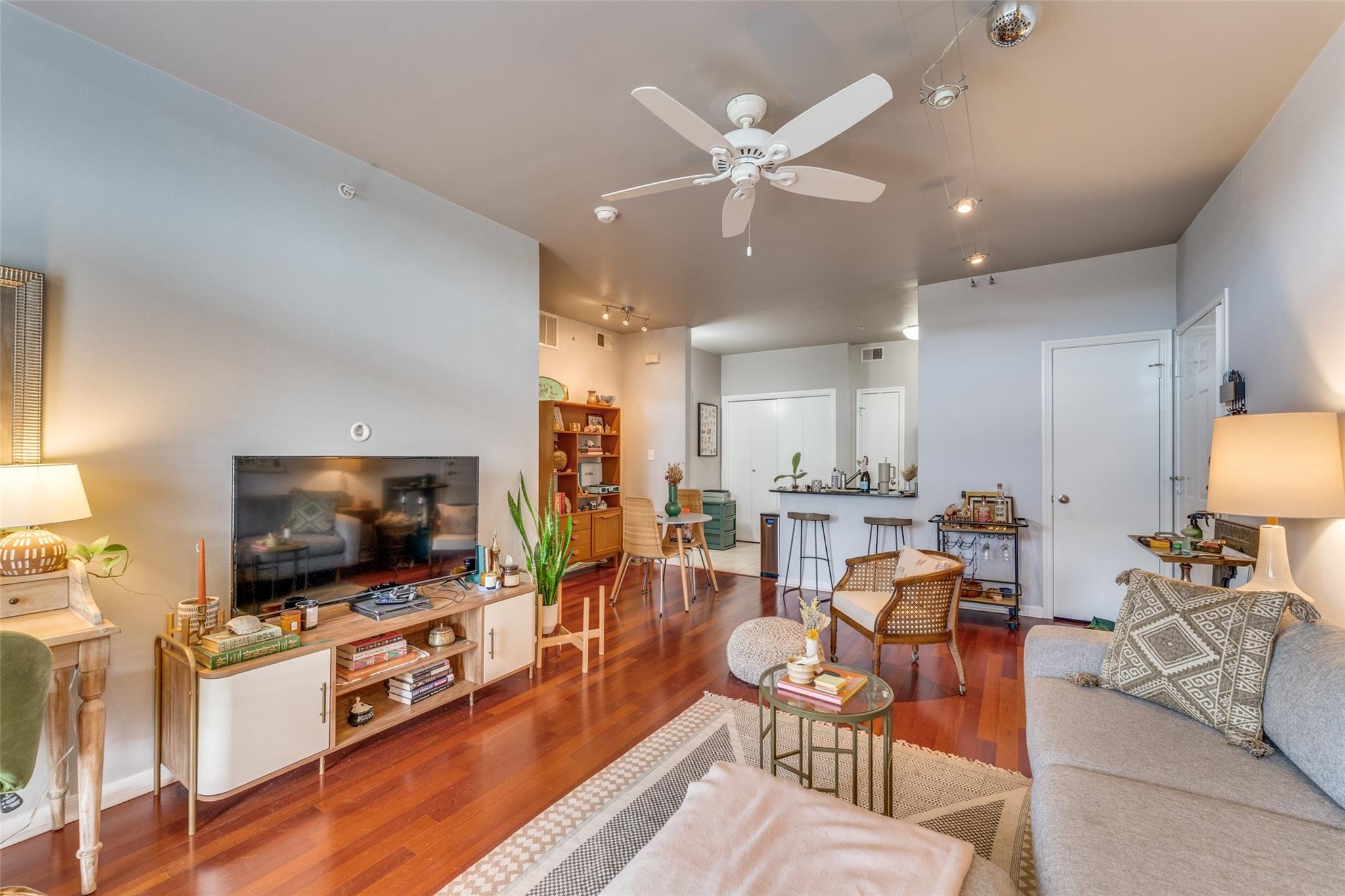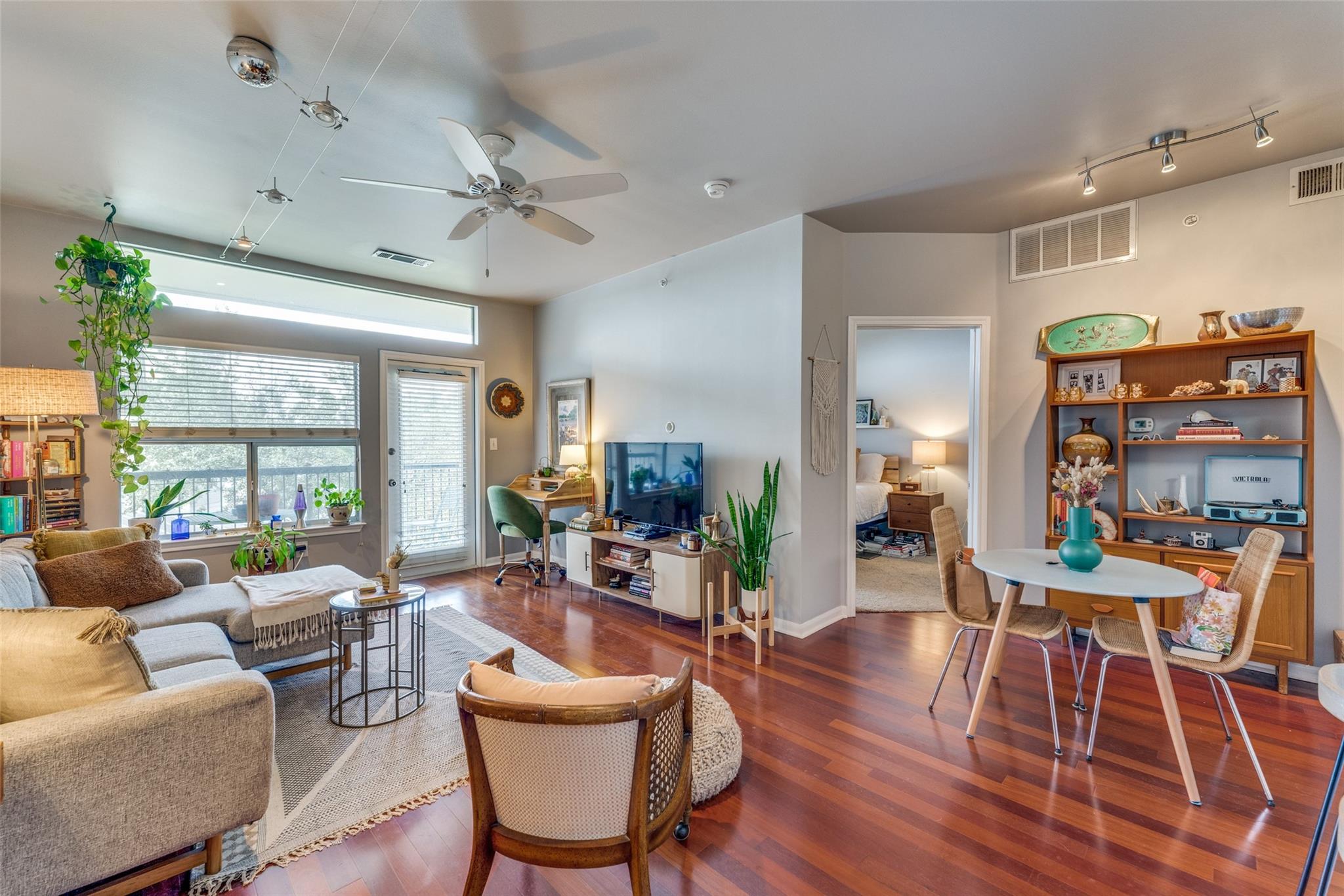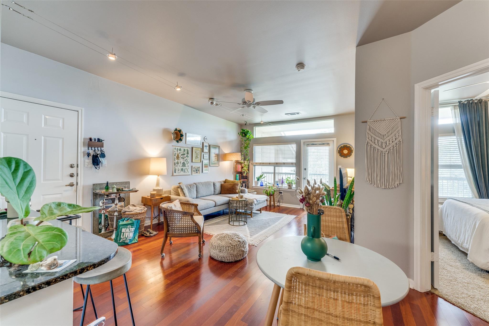 Come check out this treetop gem located within walking distance to all of the restaurants, shops and food trucks Burnet has to offer! The unit comes with a full-sized washer and dryer, spacious living room, dining nook, walk-through closet and an expansive balcony you can enjoy your morning beverage on. Tall ceilings equipped with ceiling fans will help keep your place cool in the Texas heat. This unit has 1 reserved, covered parking spot, and has open parking for your other vehicle. This gated, boutique community is located in the heart of Central Austin, definitely an opportunity you don't want to miss!