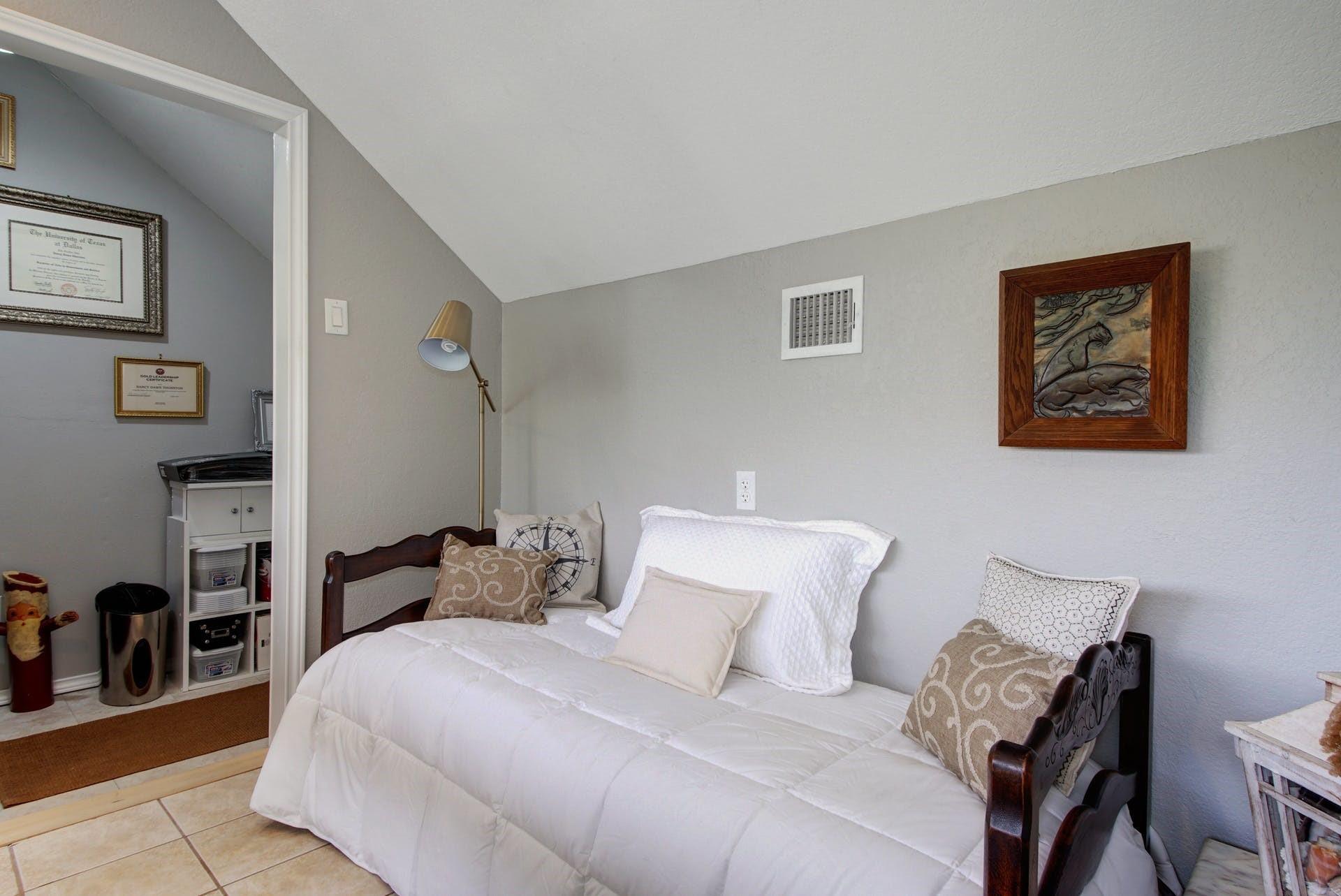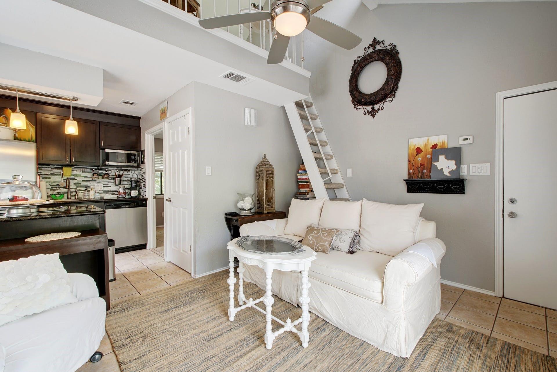 This is a gem! One bedroom/one bath bright, open condo with loft space in a wonderful area close to restaurants, grocery store, and all things Austin. Top floor, corner unit with plenty of windows and natural light. No neighbors on three sides. Loft can be used as an office or guest space and comes with a storage room. Tile floors, granite counter tops and a large 6’ X 9’ patio. Incredible location, close to everything. 10 minutes to UT and Downtown Austin, 15 minutes to the Domain and a short walk to Epoch Coffee. AC and full sized stacked W/D installed around 2 years ago. Tenant pays only electric and internet. Small complex with 18 units. Wonderful landlord. Owner-managed property.