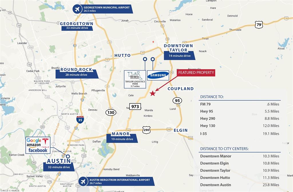 Developer’s Dream in the Path of Growth. This 124± acre tract of land is shovel-ready for development. Take advantage of the high demand and low supply of residential housing in an area that is poised for astronomic growth. The land is cleared, flat, and ready for development. Located between Samsung (Taylor) and Tesla (Hornsby Bend) this property offers the peacefulness of the country, yet is just minutes from Coupland, Hutto, Elgin, Manor, Austin and an Austin International Airport. The land is unrestricted, located in the Pflugerville ETJ, has electric and Manville water available (buyer to verify). Located just off HWY 973. Developers won’t want to miss this opportunity. It’s sure to go quickly.