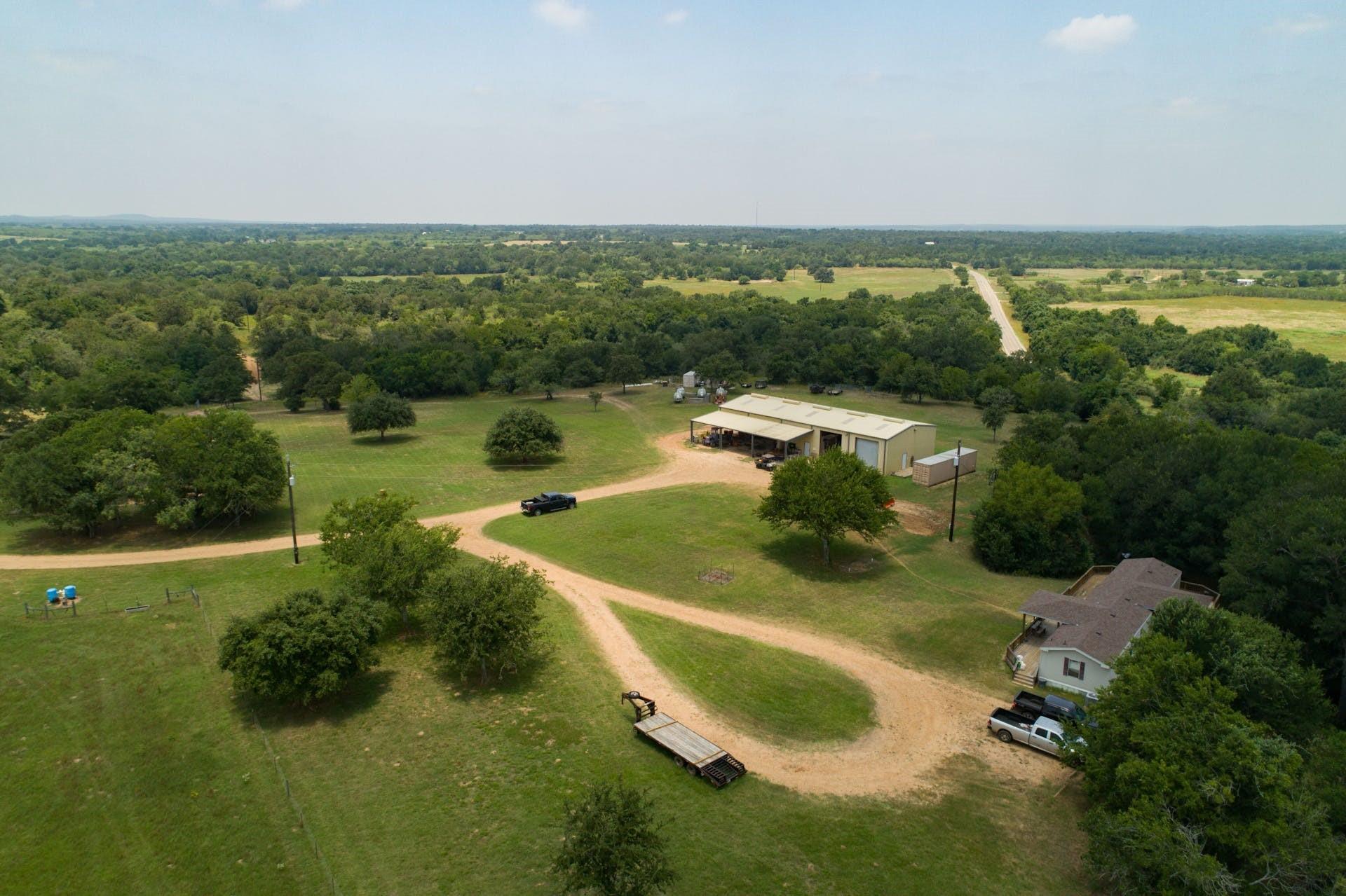 Sunset Hill Ranch! 1091.60 acre Cattle Ranch! This property offers a beautiful cabin, mobile home, apartment in workshop and acres or lush grass! Two sets of working pens. Various barns. 10 Carrizo water wells strategically set throughout the ranch, and 3 Queen City Aquifer water wells. 20+ ponds with 10 of them having piped water lines. There is an abundance of wildlife that consists of Whitetail Deer, Feral Hogs, Turkey, Coyotes, Fox, Dove, Ducks and other South Texas species. Primary grasses are Coastal Bermuda and Tifton 85. 10 pastures for rotation. 2 wet weather creeks. There are miles of road frontage on this ranch which would make this an investors dream! Located just south of IH10, an hour from San Antonio and Austin. 3 hours from Houston and the Coast!