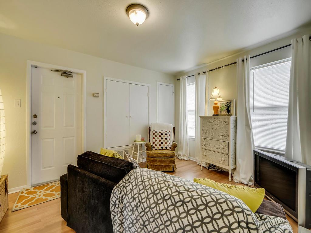 Great two bed/one bath upstairs unit. Oversize windows give the home a light and airy feel. Large bedrooms can accommodate queen size bed. Shared backyard away from street. Home is walking distance to Southwestern University. Enjoy great shopping, food and entertainment on the beautiful and nearby historical Georgetown Square. San Gabriel Park is less than a mile away and Wolf Ranch Shopping Center is right down the road. Minutes away from many dining, shopping and entertainment venues, IH35, Inner Loop and Loop 130. No pets, please. **Resident must choose between two resident benefit packages at time of application.