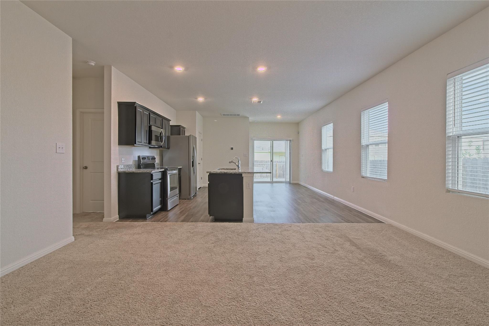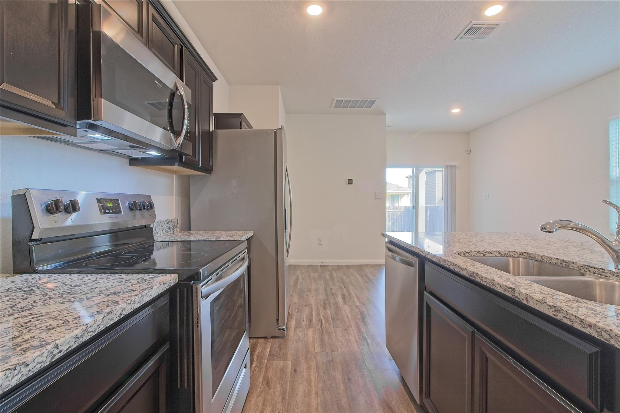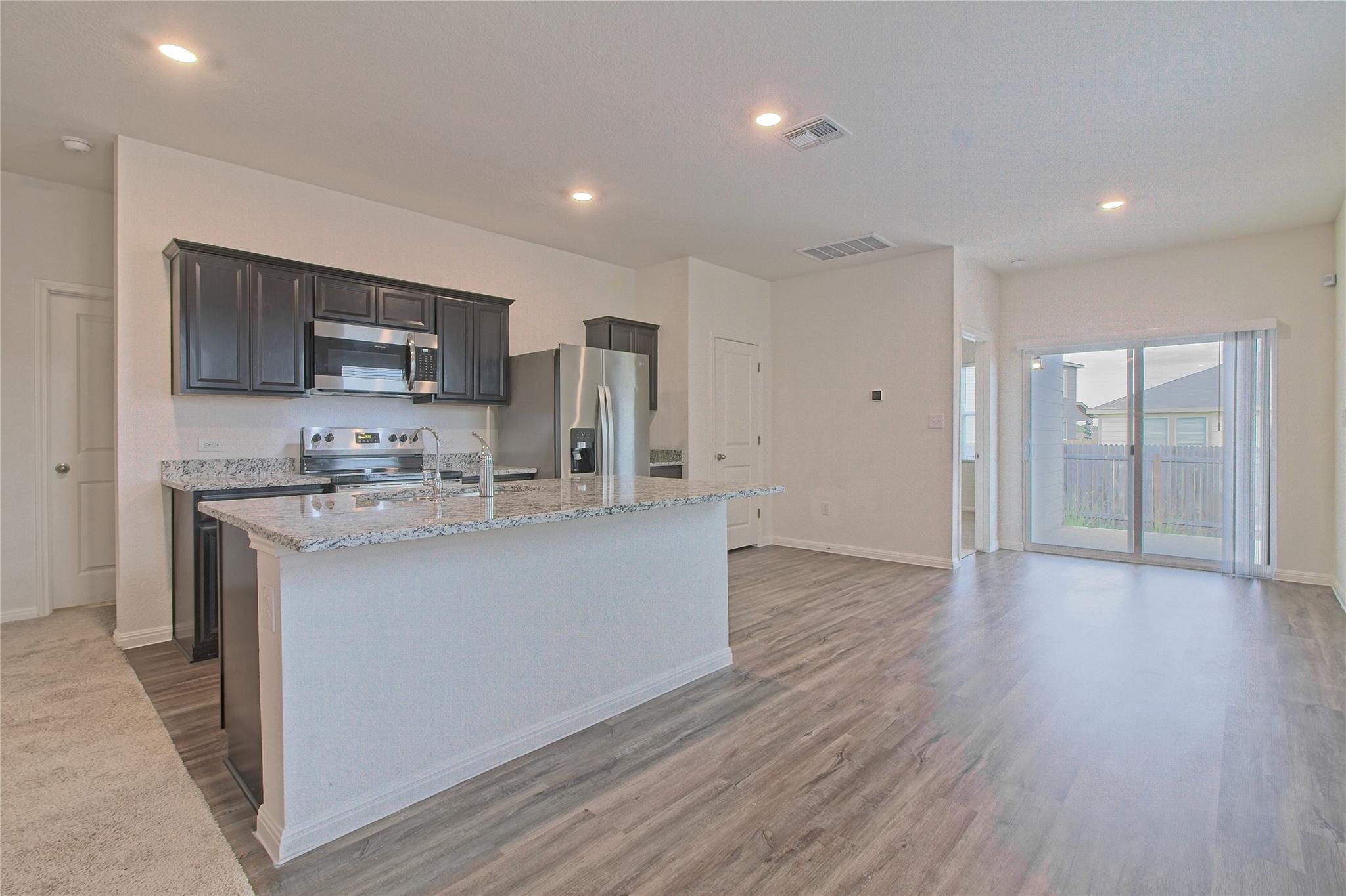 The open floorplan of this home provides an abundance of natural light and a seamless flow. A mix of wood laminate flooring and carpet keep the space warm and comfortable. Kitchen is open to living area allowing the cook to be part of the action. Granite counters, rich wood cabinetry, and galley layout make this kitchen not only a great workspace, but beautiful at the same time. Take it outside onto the covered back patio for a morning coffee or a backyard barbecue. Community amenities include pool, skate park, clubhouse and more. Easy commute into Georgetown, Round Rock or Temple. Pets ok; limit two; 50 lbs or less. **Resident must choose between two resident benefit packages at time of application.