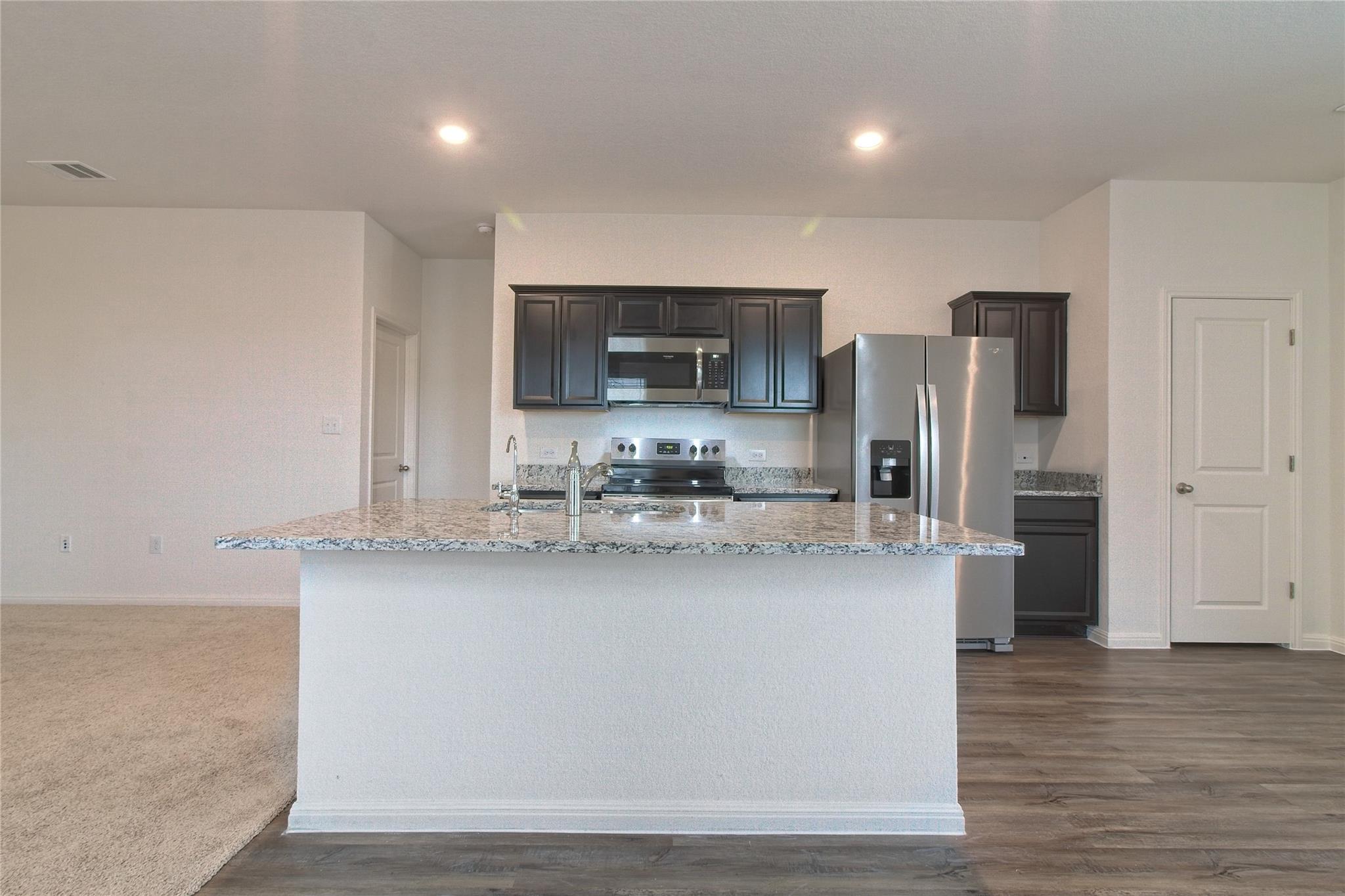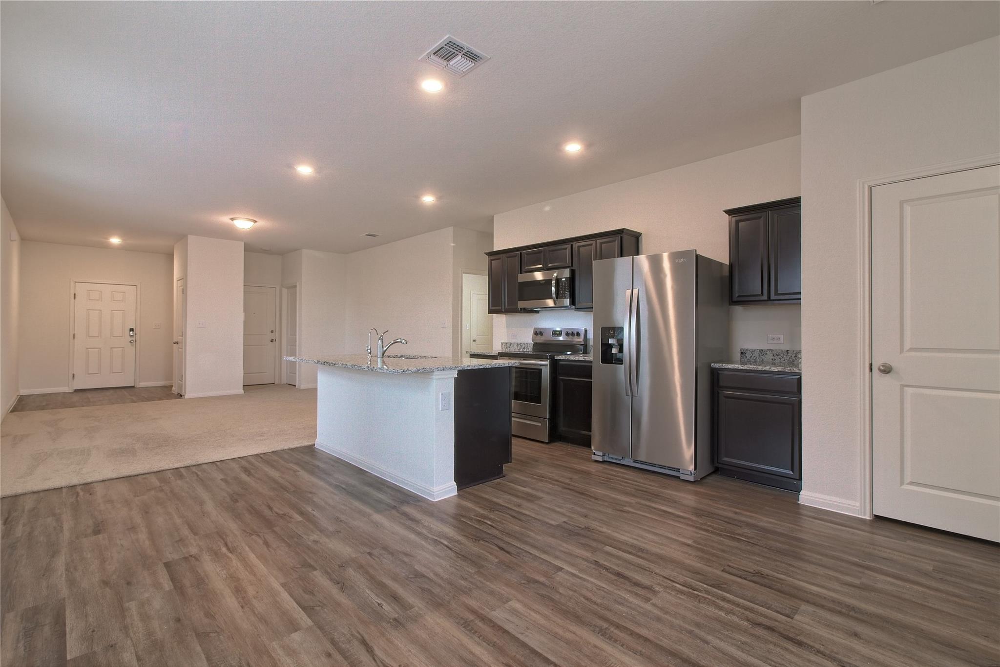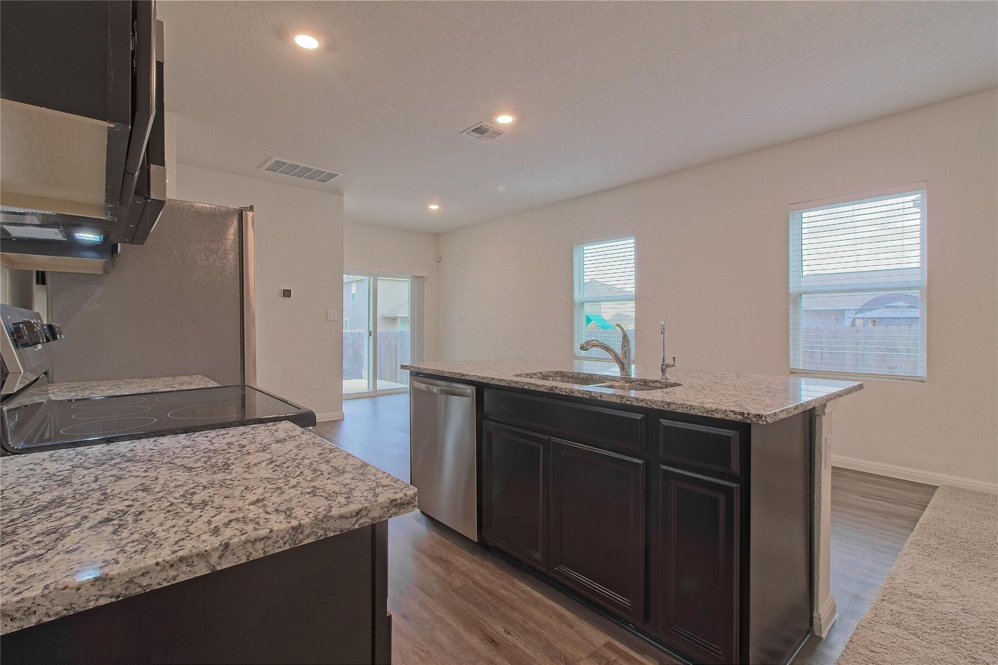 The open floorplan of this home provides an abundance of natural light and a seamless flow. A mix of wood laminate flooring and carpet keep the space warm and comfortable. Kitchen is open to living area allowing the cook to be part of the action. Granite counters, rich wood cabinetry, and galley layout make this kitchen not only a great workspace, but beautiful at the same time. Take it outside onto the covered back patio for a morning coffee or a backyard barbecue. Community amenities include pool, skate park, clubhouse and more. Easy commute into Georgetown, Round Rock or Temple. Pets ok; limit two; 50 lbs or less. **Resident must choose between two resident benefit packages at time of application.